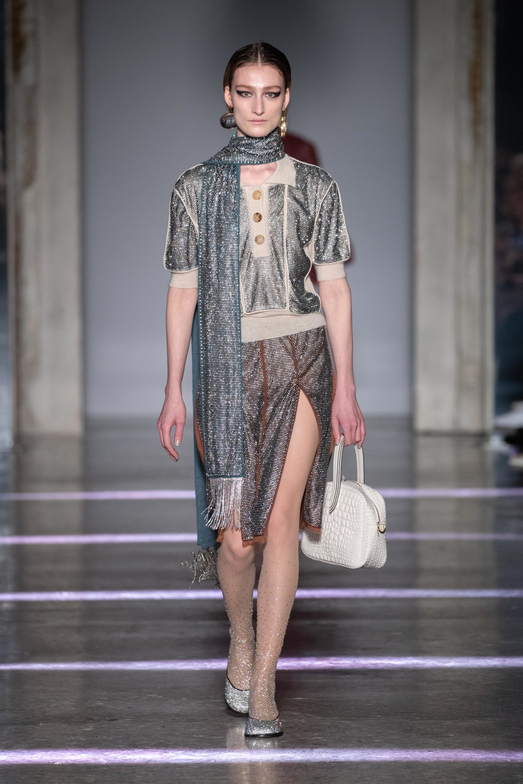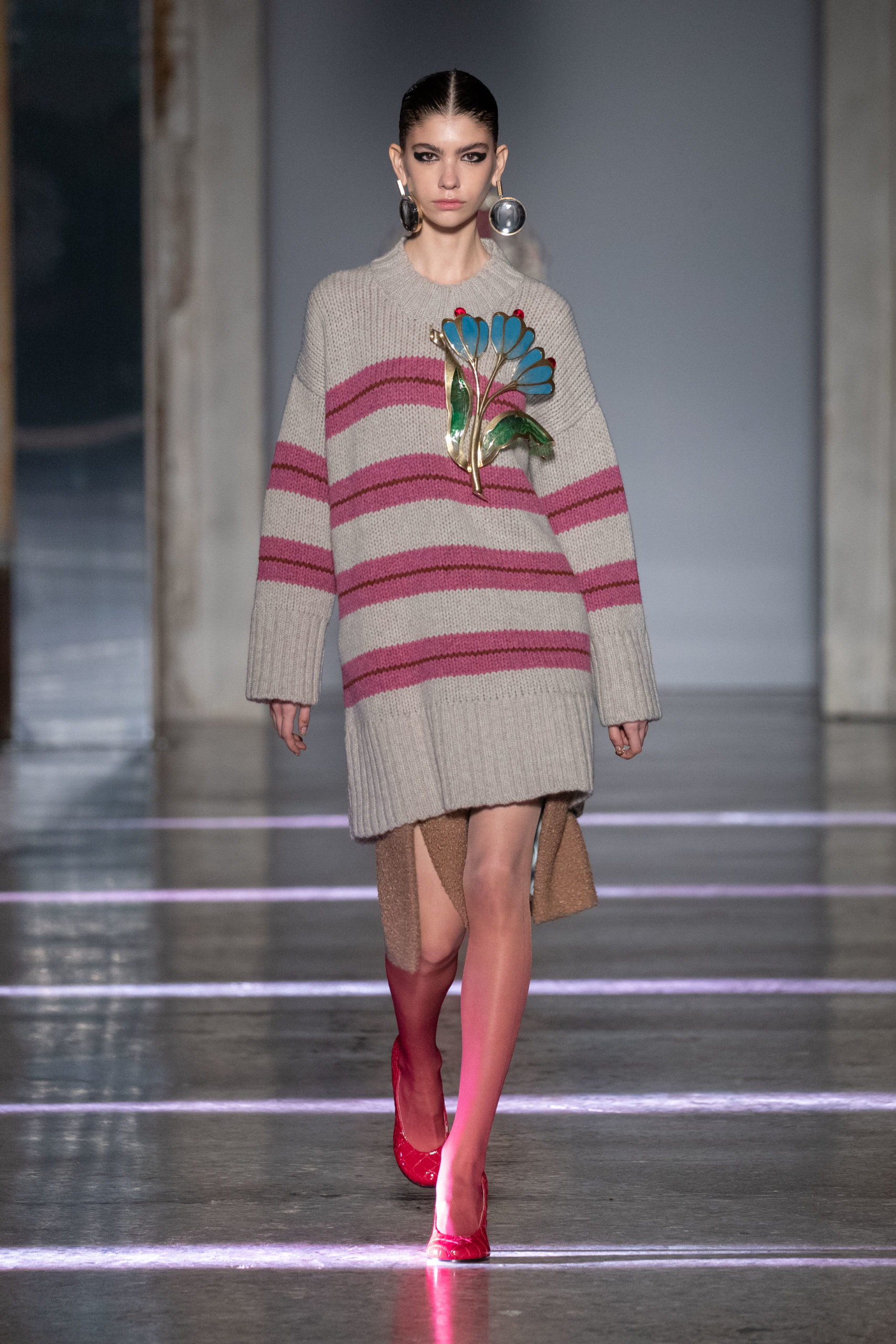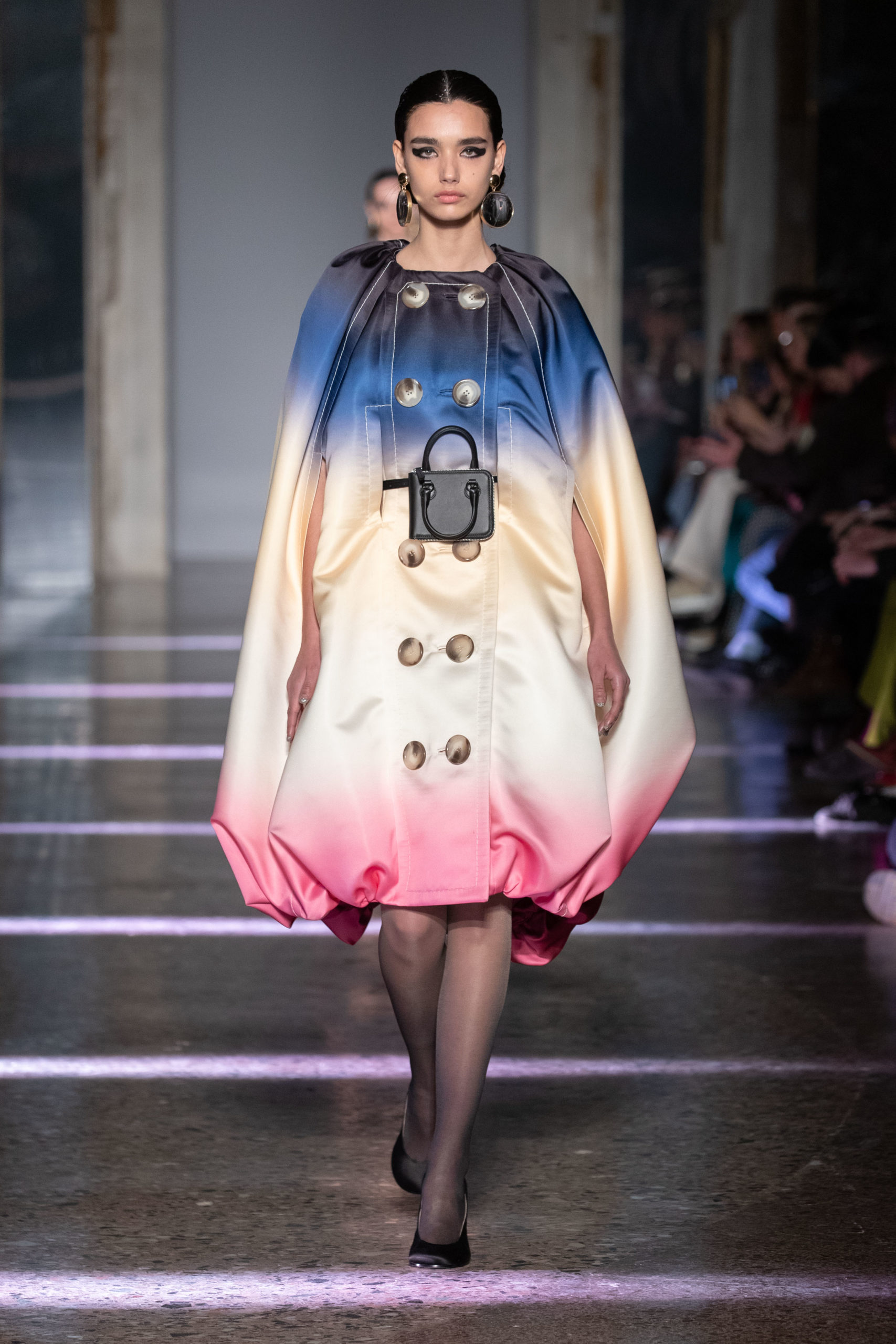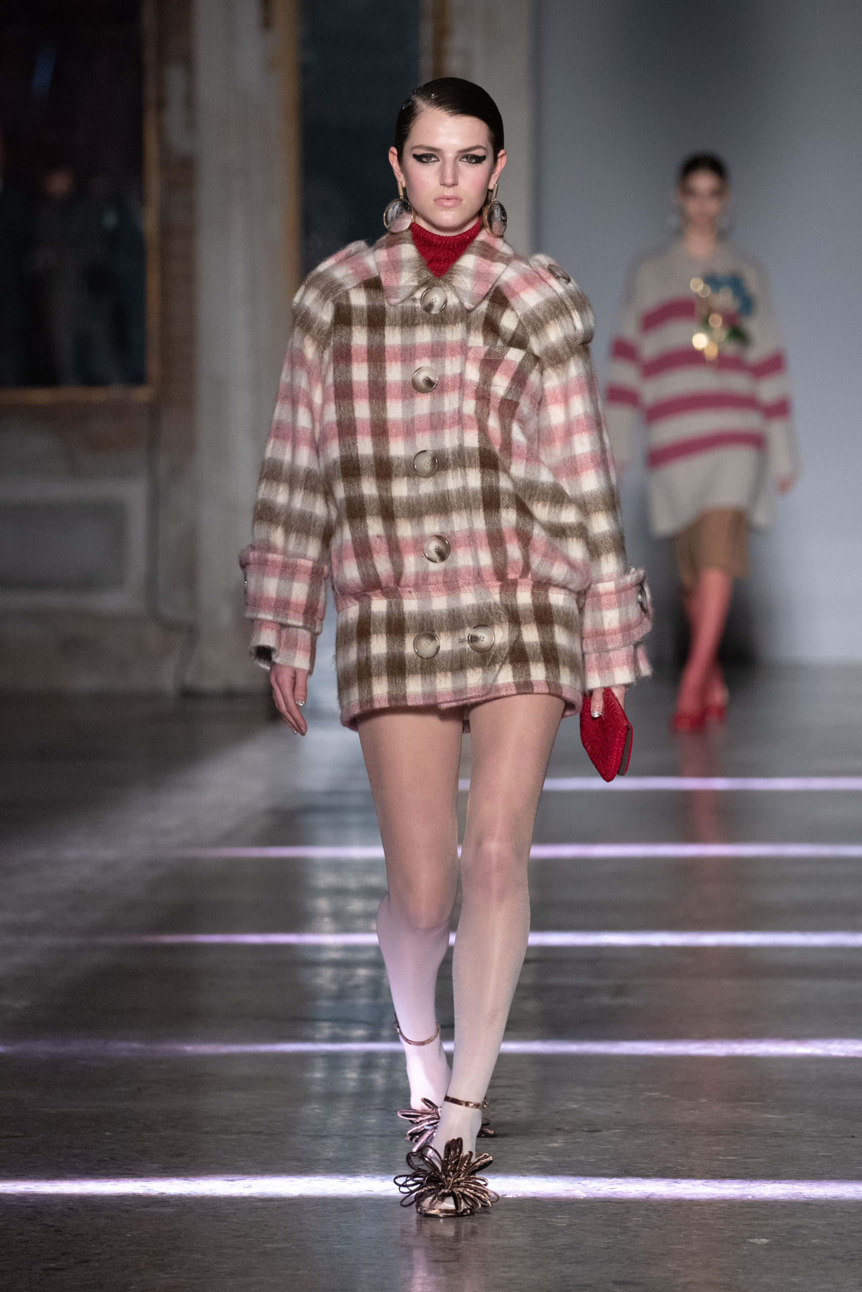 MACRO micro Like children’s drawings, the proportions are subjective. Objects or people are portrayed without thinking how they really are. The proportions of things are radically altered. They are enlarged and reduced as desired. An explosion of shapes dictates new rules. The brooch on sweaters is so oversized that it is no longer a detail, but the protagonist. Garments and accessories look as if they were enlarged by a photocopier. Shoes have stiletto heels that are 200 percent larger, and the result is a play of almost cartoon-like curved and ample lines. The stitches of knits are huge, almost exploded. So is the stitching on jackets and skirts. Baby-doll micro-coats and oversized sweaters: everything is out of proportion. The typical men’s zipper wallet is no longer a pocket accessory, but a mini-bag with handles and shoulder strap. It is the magic of a girl who no longer plays with her mother’s wardrobe, but creates a new one for herself. The lady-like look becomes a fun personal game that blends micro and macro elements.