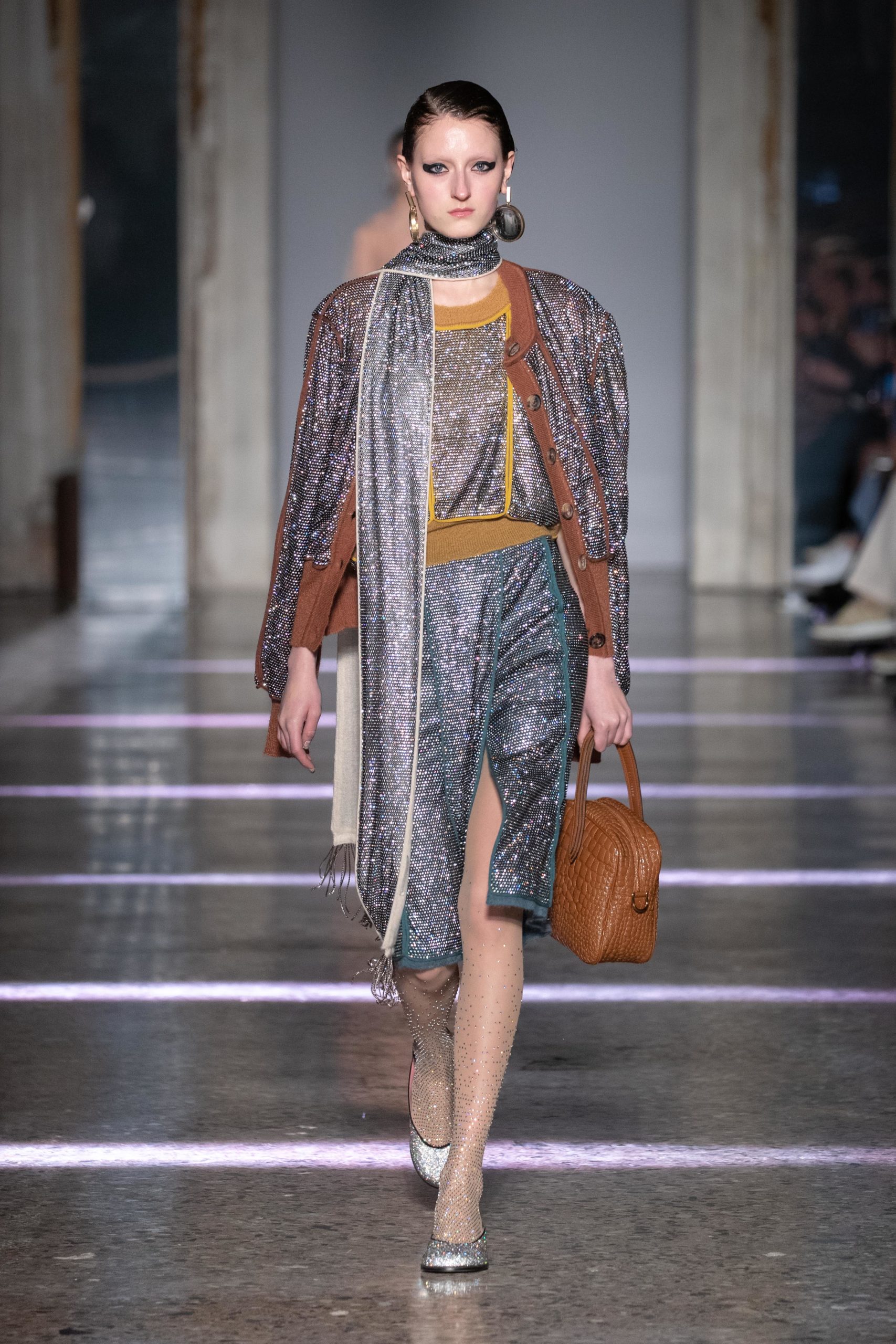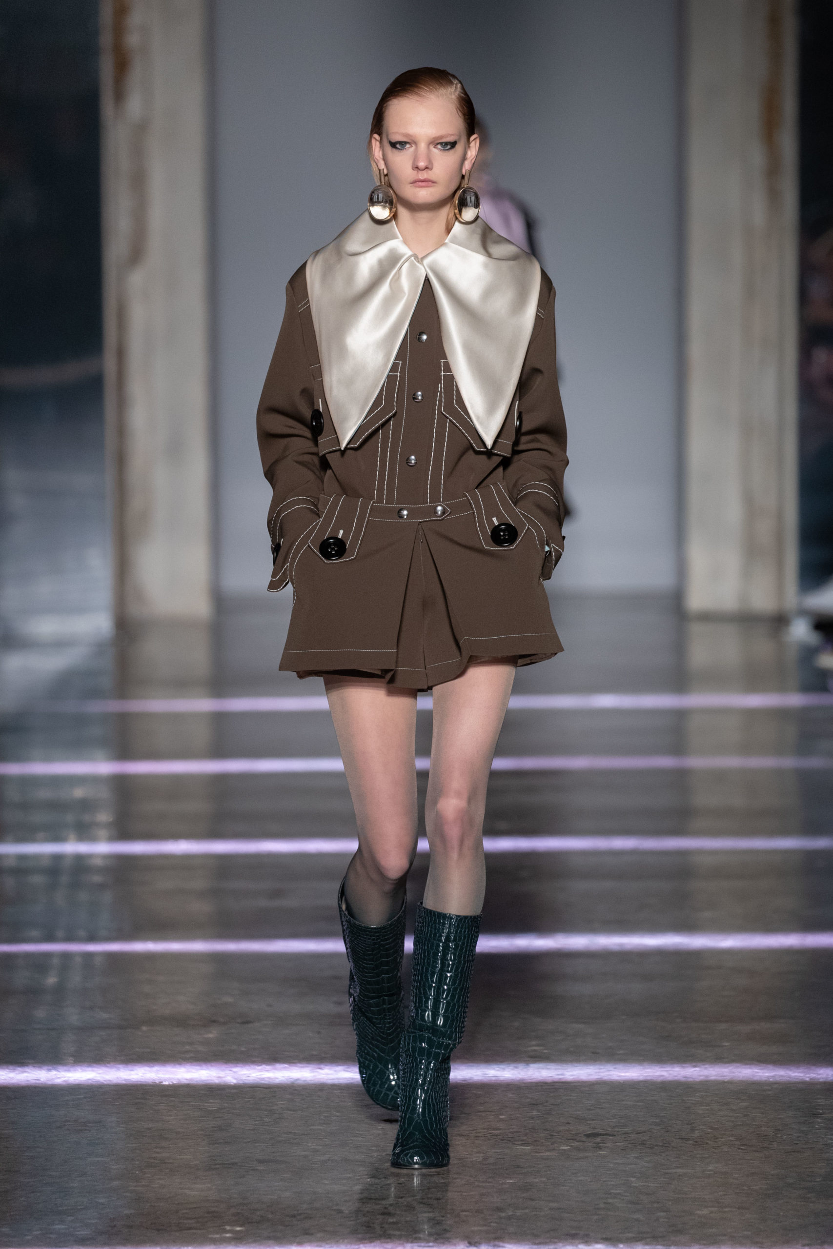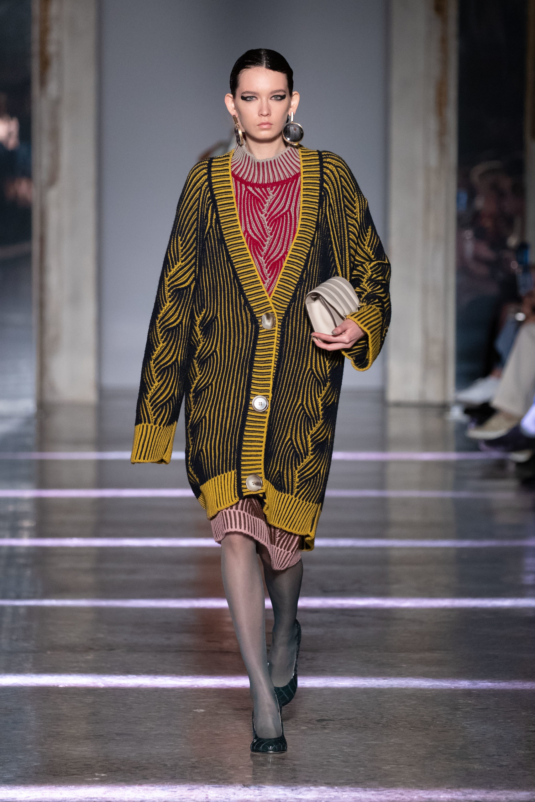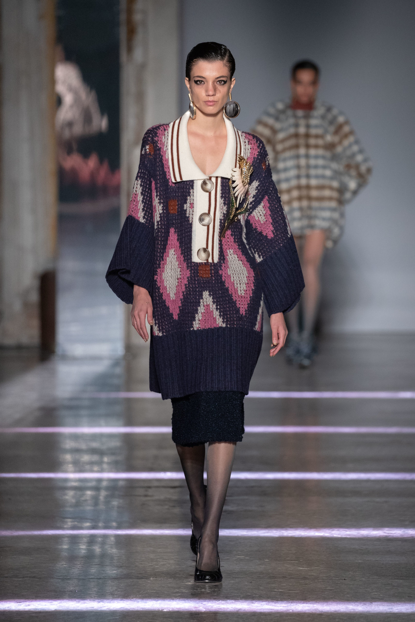 MACRO micro Like children’s drawings, the proportions are subjective. Objects or people are portrayed without thinking how they really are. The proportions of things are radically altered. They are enlarged and reduced as desired. An explosion of shapes dictates new rules. The brooch on sweaters is so oversized that it is no longer a detail, but the protagonist. Garments and accessories look as if they were enlarged by a photocopier. Shoes have stiletto heels that are 200 percent larger, and the result is a play of almost cartoon-like curved and ample lines. The stitches of knits are huge, almost exploded. So is the stitching on jackets and skirts. Baby-doll micro-coats and oversized sweaters: everything is out of proportion. The typical men’s zipper wallet is no longer a pocket accessory, but a mini-bag with handles and shoulder strap. It is the magic of a girl who no longer plays with her mother’s wardrobe, but creates a new one for herself. The lady-like look becomes a fun personal game that blends micro and macro elements.