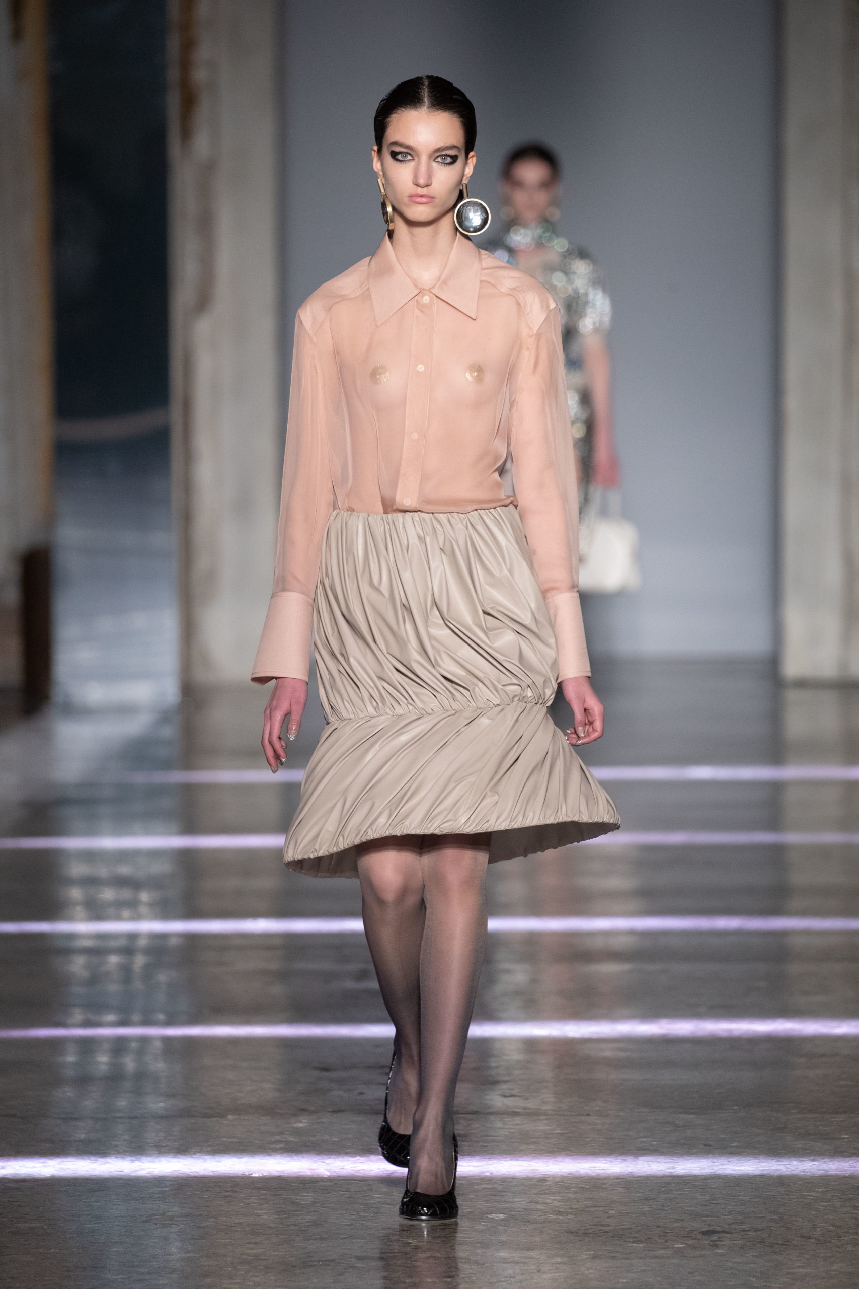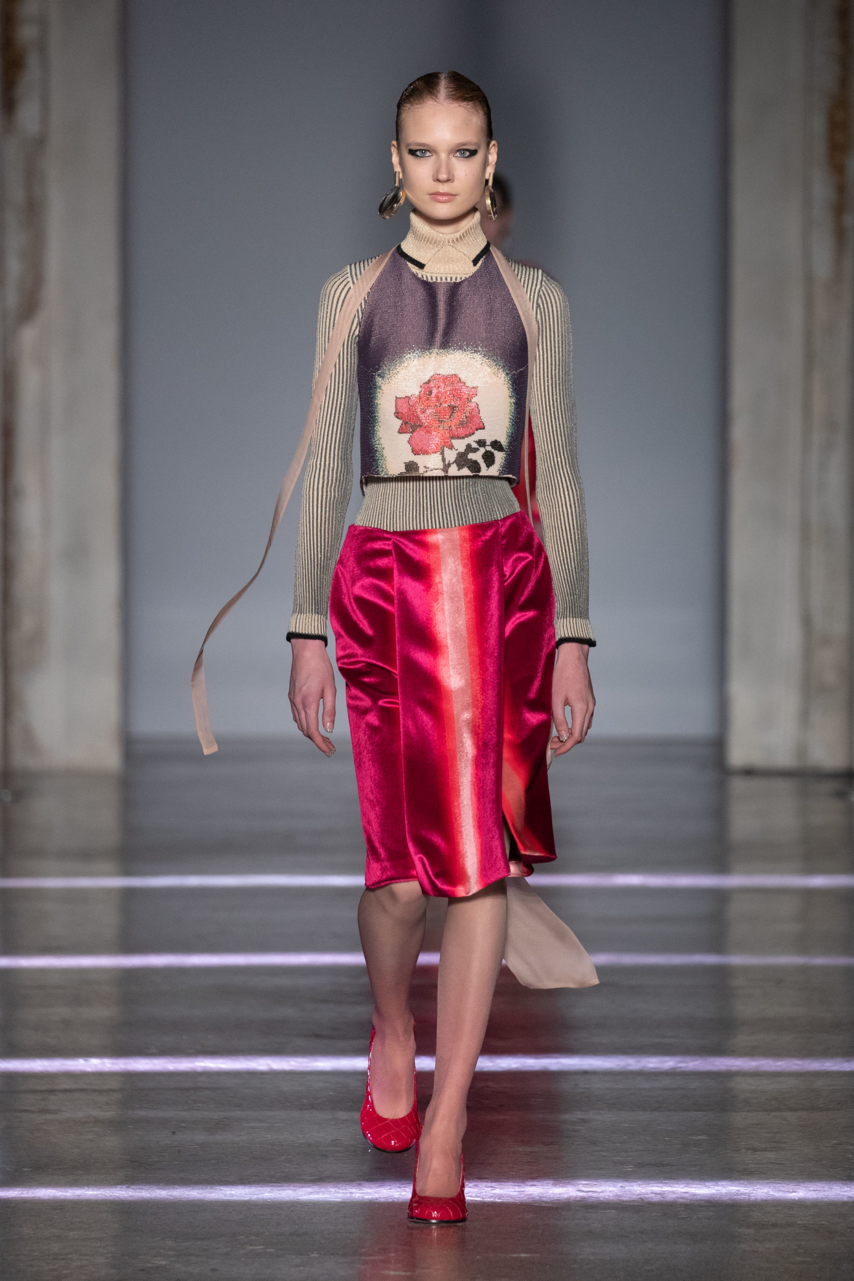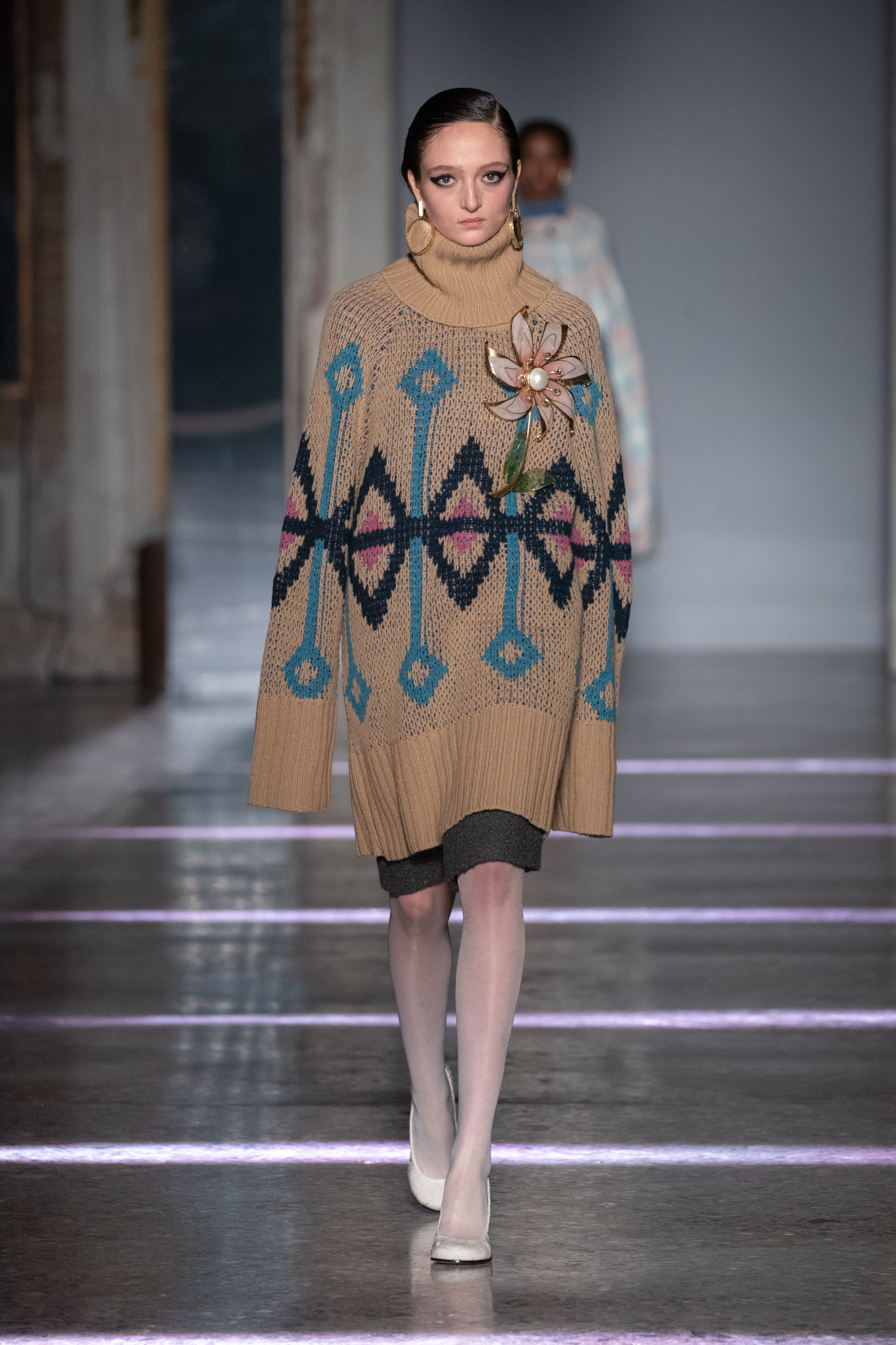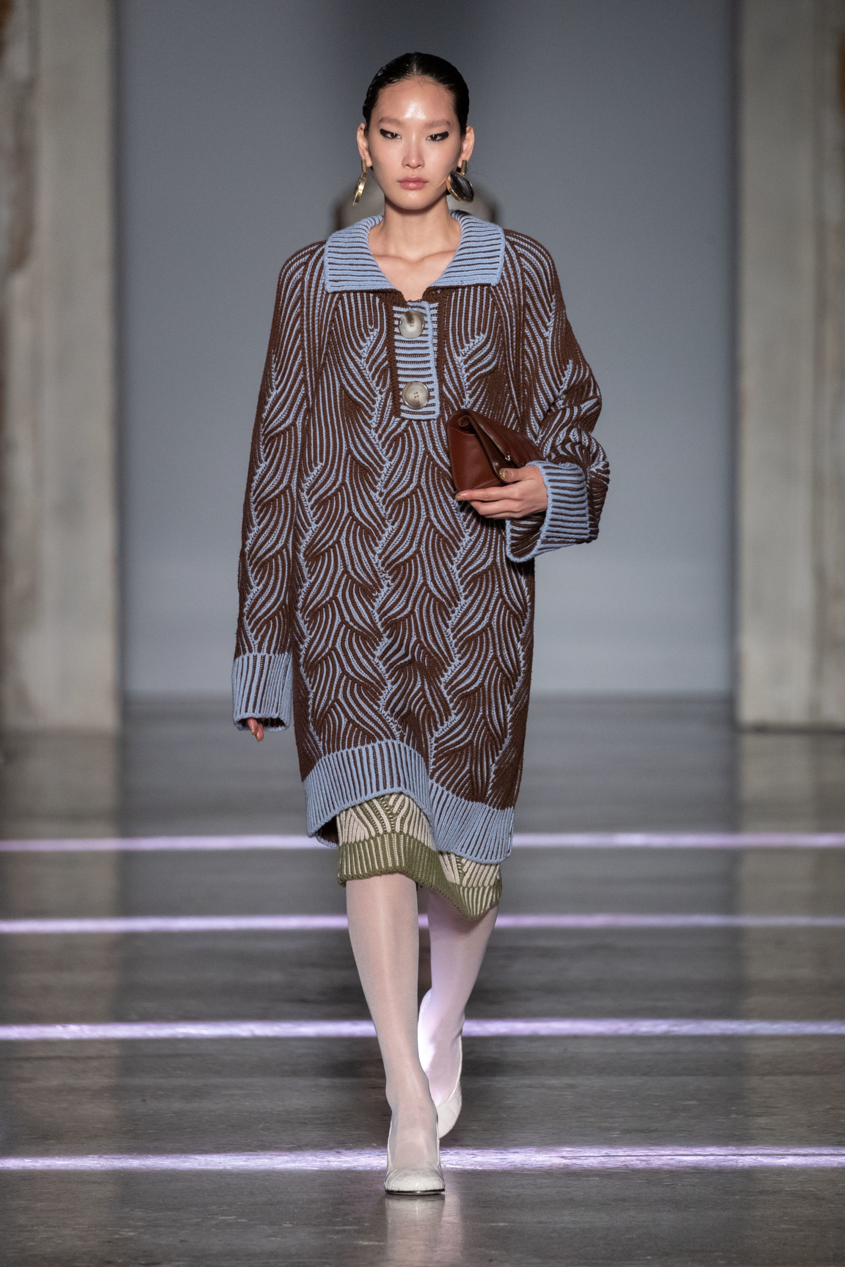 MACRO micro Like children’s drawings, the proportions are subjective. Objects or people are portrayed without thinking how they really are. The proportions of things are radically altered. They are enlarged and reduced as desired. An explosion of shapes dictates new rules. The brooch on sweaters is so oversized that it is no longer a detail, but the protagonist. Garments and accessories look as if they were enlarged by a photocopier. Shoes have stiletto heels that are 200 percent larger, and the result is a play of almost cartoon-like curved and ample lines. The stitches of knits are huge, almost exploded. So is the stitching on jackets and skirts. Baby-doll micro-coats and oversized sweaters: everything is out of proportion. The typical men’s zipper wallet is no longer a pocket accessory, but a mini-bag with handles and shoulder strap. It is the magic of a girl who no longer plays with her mother’s wardrobe, but creates a new one for herself. The lady-like look becomes a fun personal game that blends micro and macro elements.