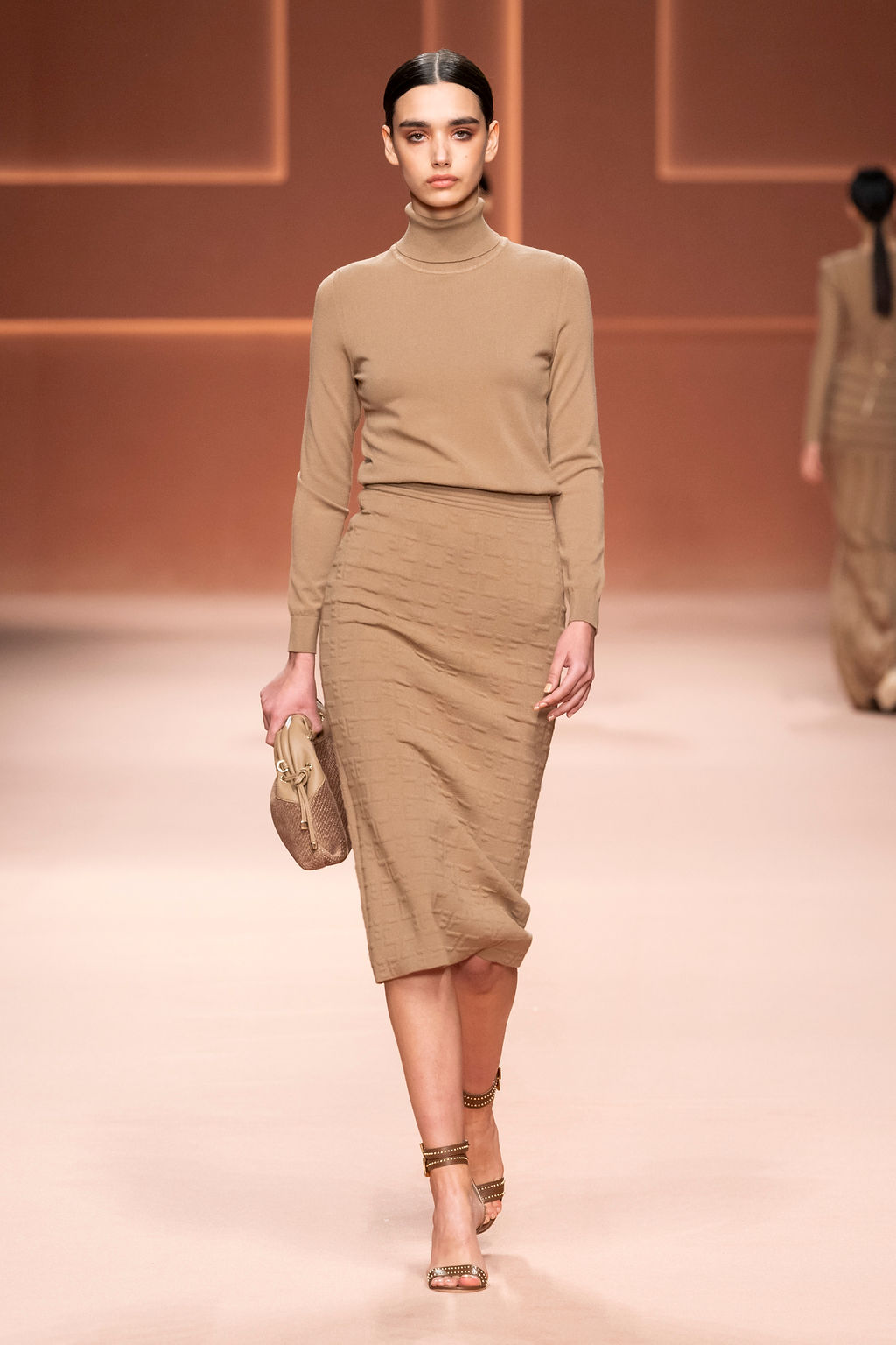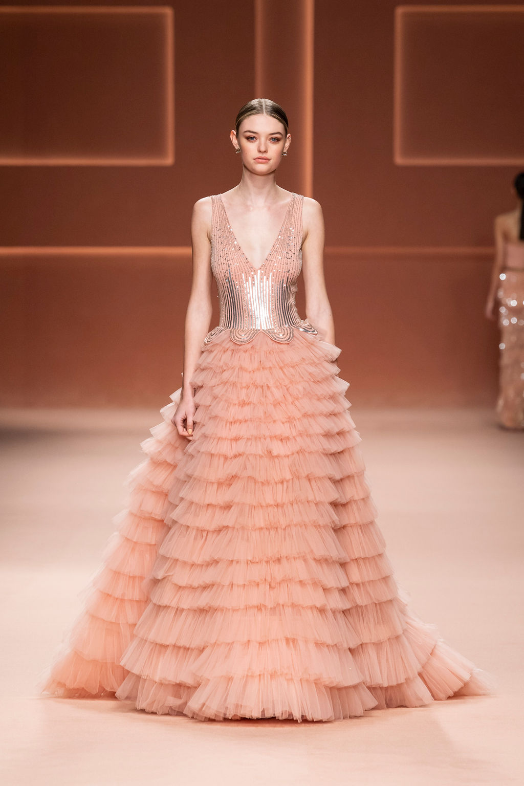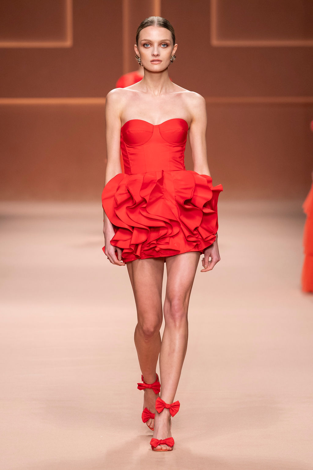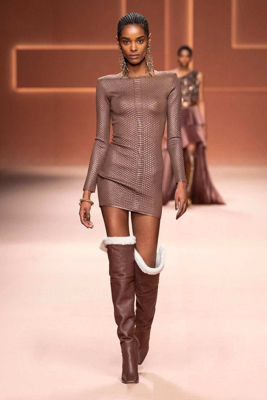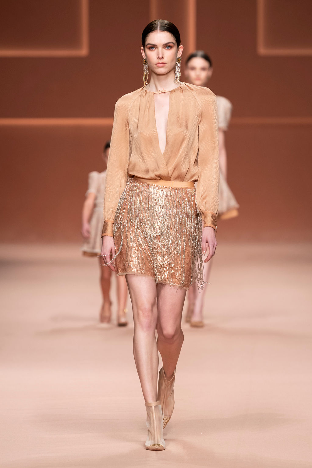 Rempli de forces inspirantes, le défilé célèbre une femme qui peut tout faire, libre d’être ce qu’elle veut, ressent et désire. Cette saison, Elisabetta Franchi communique l’unicité et la force de l’univers féminin à travers la couleur, en utilisant une palette faite de nuances douces sur une trajectoire de femmes différentes mais reconnaissables, dévoilant leur nature authentique.