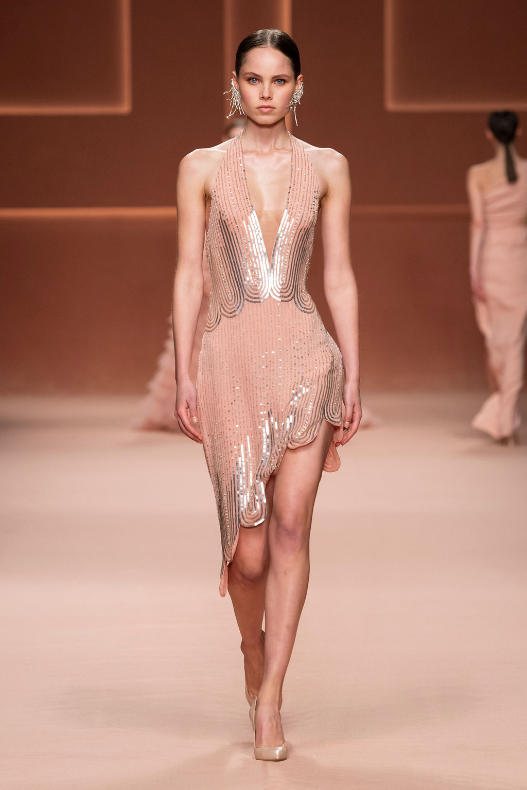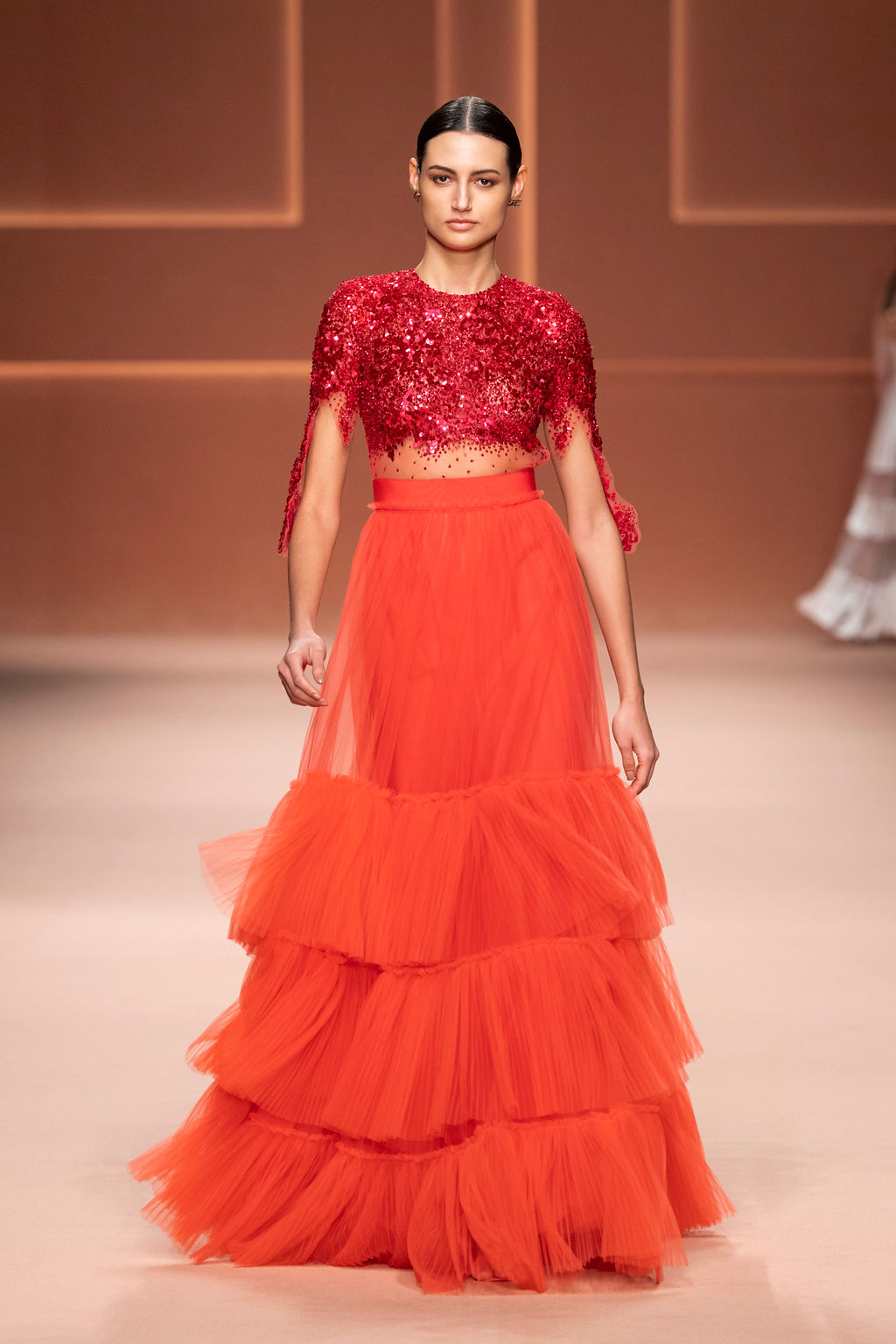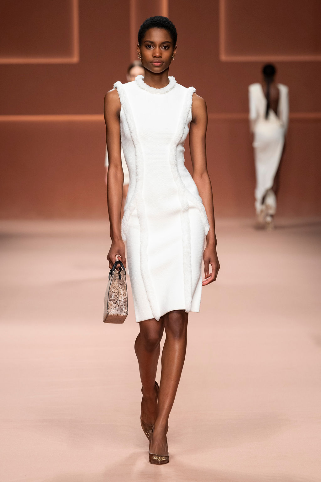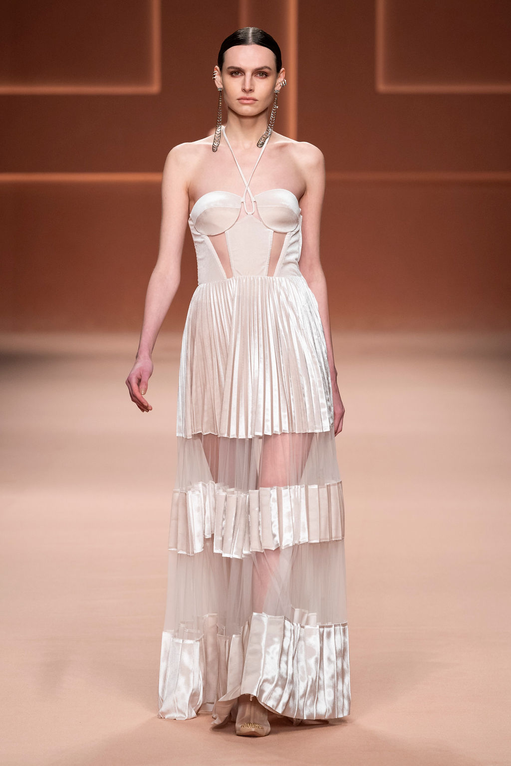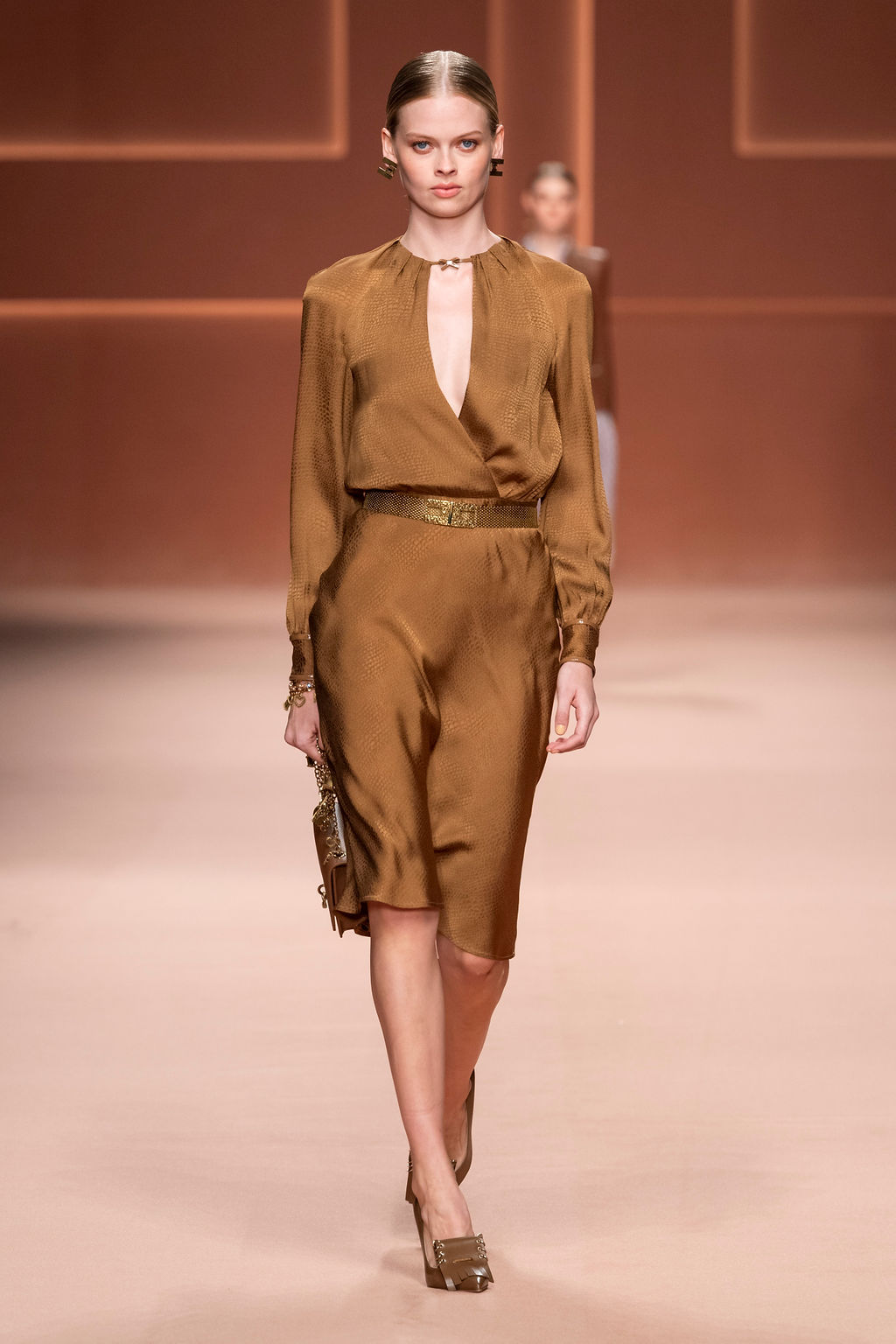 Rempli de forces inspirantes, le défilé célèbre une femme qui peut tout faire, libre d’être ce qu’elle veut, ressent et désire. Cette saison, Elisabetta Franchi communique l’unicité et la force de l’univers féminin à travers la couleur, en utilisant une palette faite de nuances douces sur une trajectoire de femmes différentes mais reconnaissables, dévoilant leur nature authentique.