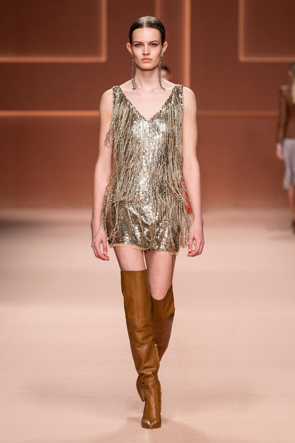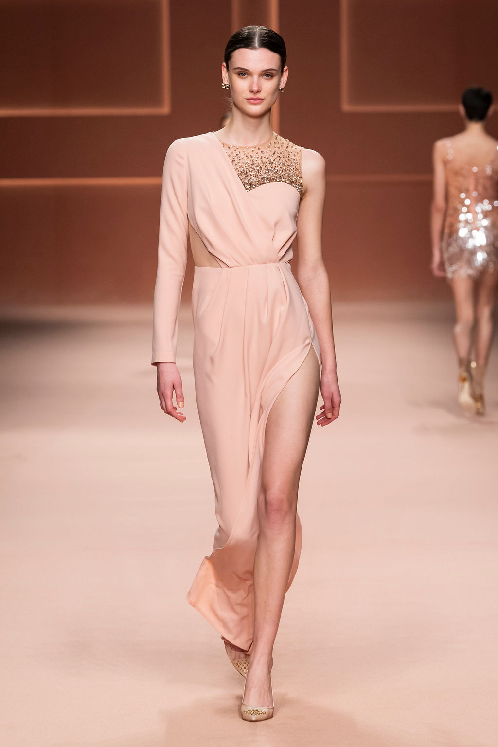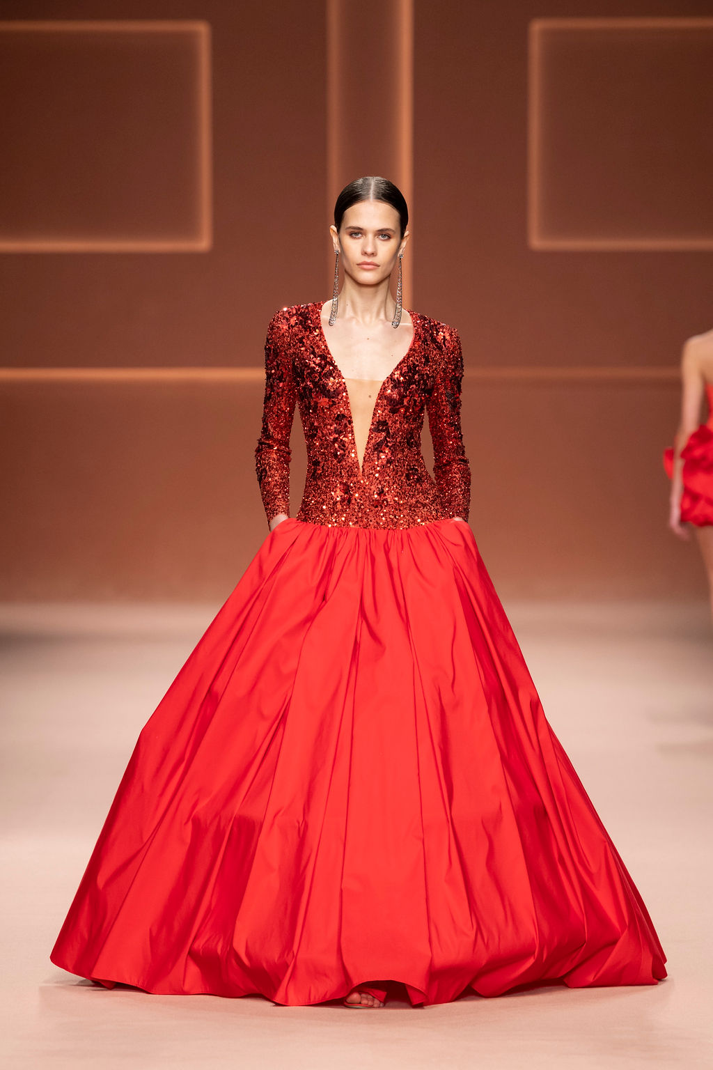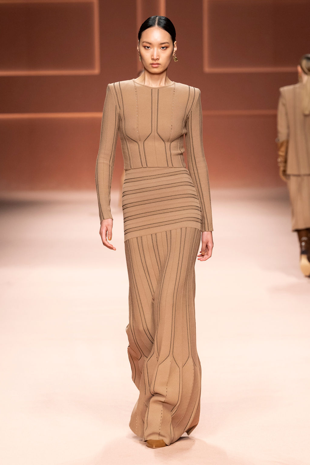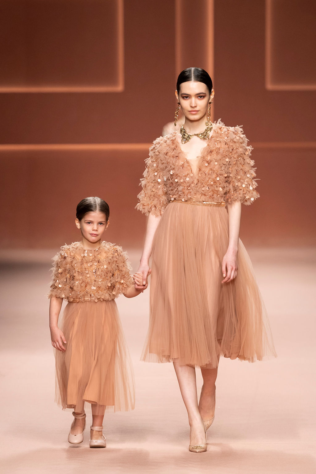 Rempli de forces inspirantes, le défilé célèbre une femme qui peut tout faire, libre d’être ce qu’elle veut, ressent et désire. Cette saison, Elisabetta Franchi communique l’unicité et la force de l’univers féminin à travers la couleur, en utilisant une palette faite de nuances douces sur une trajectoire de femmes différentes mais reconnaissables, dévoilant leur nature authentique.