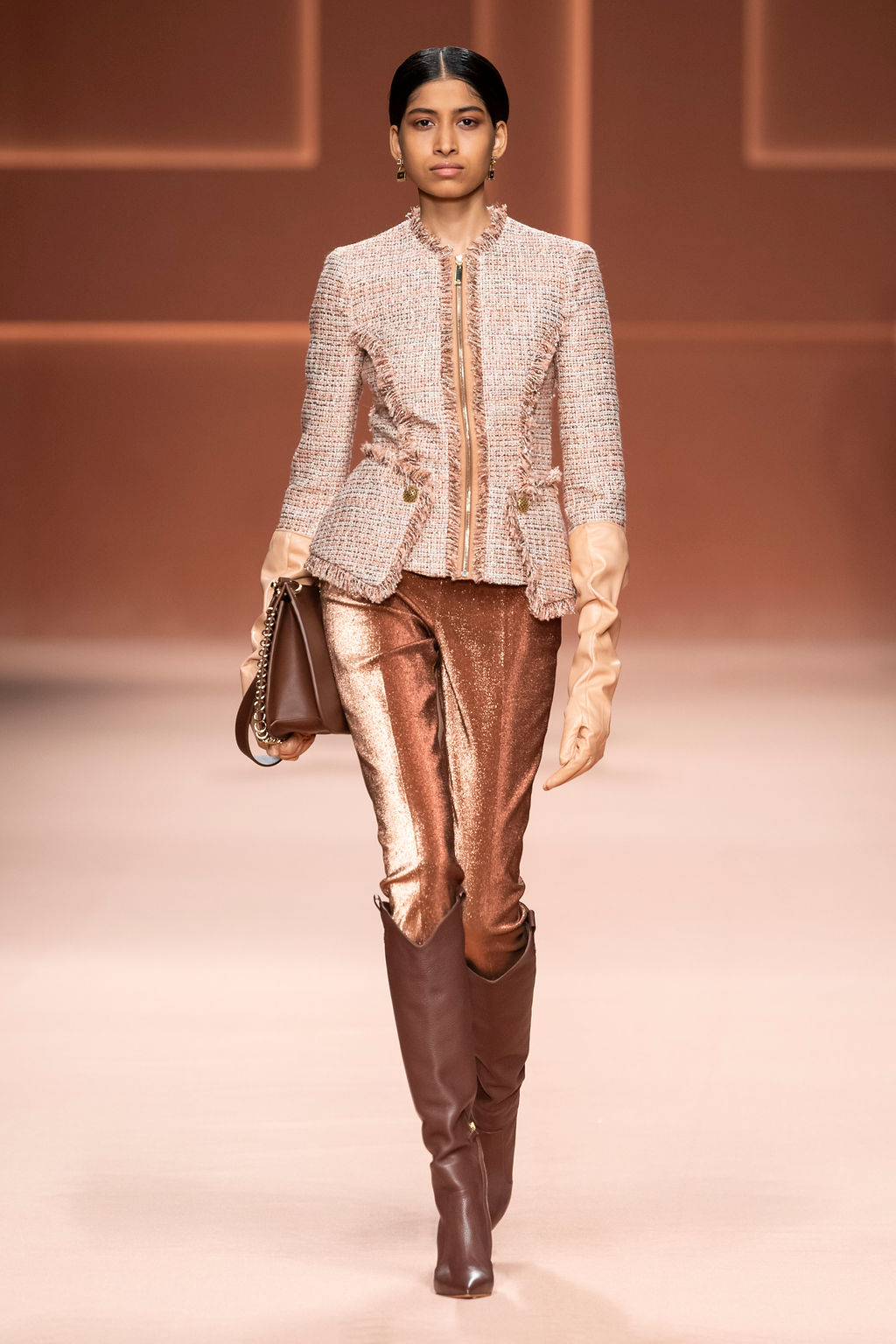 Dans un monde composé de gens avec des milliers de nuances, la collection automne/hiver 2020-21 Elisabetta Franchi est une histoire dans laquelle les femmes sont des protagonistes ; des créatures qui, avec leurs pensées et leurs actions, nous conduisent à préférer un monde imaginaire de personnalités individuelles dans des nuances de rose.