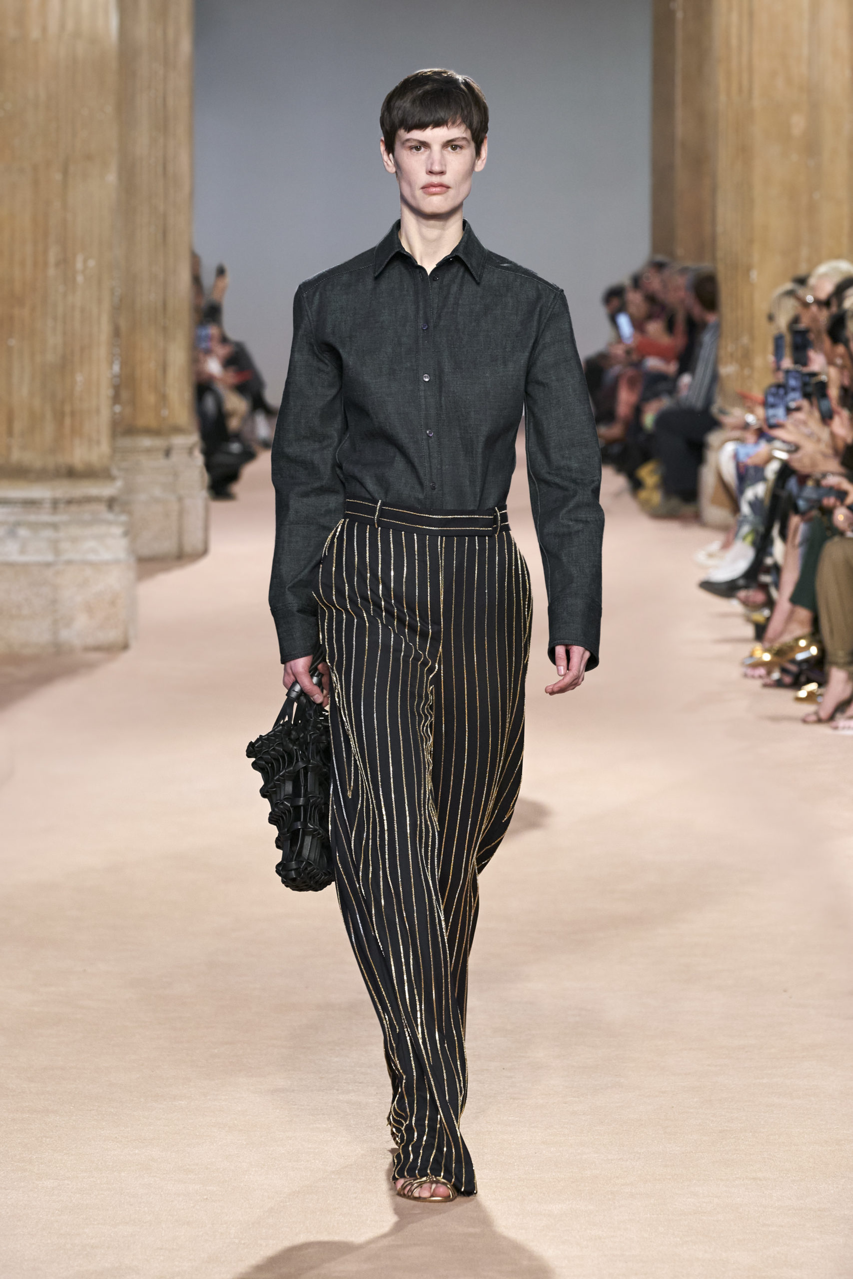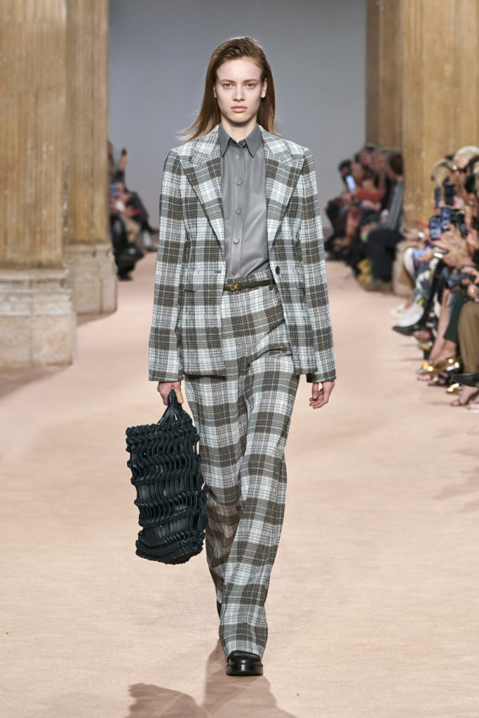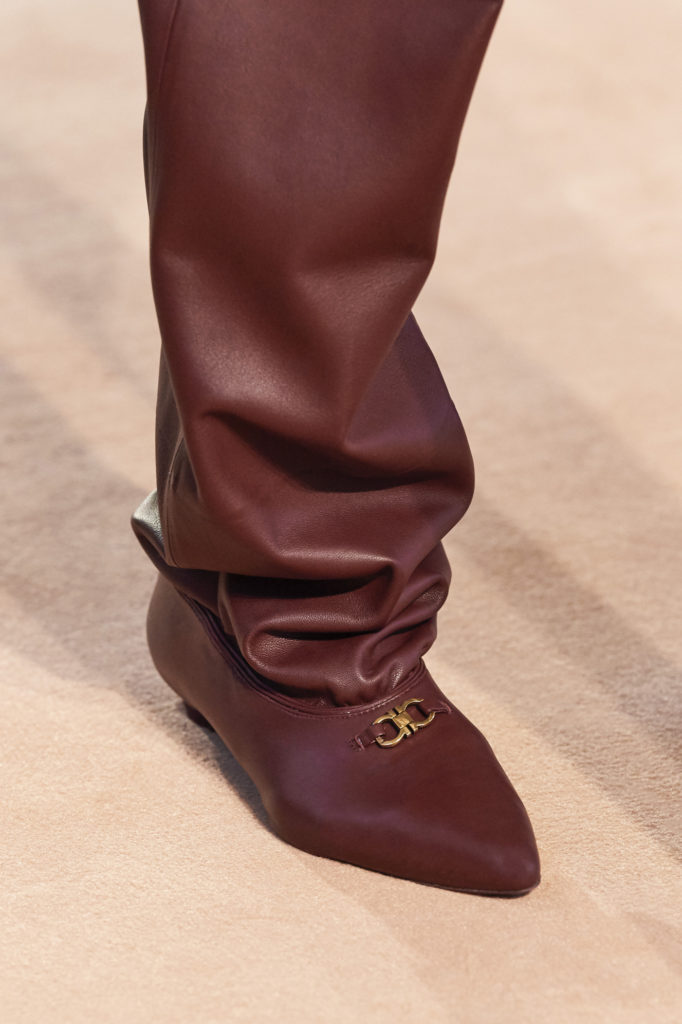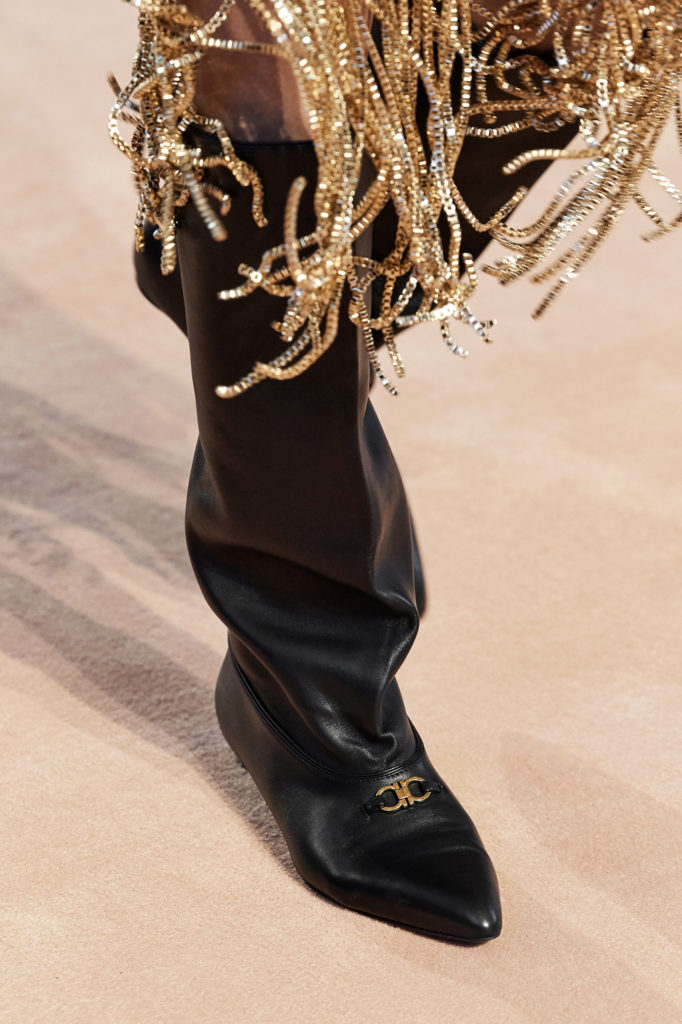 For Autumn Winter 2020 Salvatore Ferragamo explores the increasingly diverse and flexible nature of contemporary female identity. During the early 20th century, Carl Jung proposed that society’s collective unconscious recognised seven archetypes of women. In the early 21st century a woman is no longer defined by such categories – she is self-defining. Feminine identify is a fluid, self-authored free space that’s ripe for nonconformist experiment and play. Creative Director Paul Andrew says: “The notion of fitting into a set “type” feels increasingly obsolete today, both for women and men. I think the identities we choose to wear today are not fixed through a single filter – they are a shifting kaleidoscope, a collage of characteristics and qualities. “Key to this collection was considering some of the many women we idolise. We found a book by Fulvia Ferragamo in which she collected botanical images for inspiration: we used this across the collection in print, knitwear and also embroidered onto shirting. We also considered a multifaceted range of female heroes from Virginia Woolf to Nancy Pelosi via Michelle Obama and Nina Simone, and worked to reflect their intelligence, bravery and beauty in the collection.” Ferragamo’s foundation is footwear: this collection is an exercise in toe-to-head dressing. The shoes range from a reworked archival heeled sandal (made with off-cuts of Ferragamo nappa), multiple versions of the new Viva shoe (flat slingbacks to powerful block heel thigh-highs), and a tough, articulated sole workboot. Crocodile boots are made of upcycled skins. Bags included an expanded expression of our versatile Trifolio and Studio models plus a cleanly minimal day bag in vegetable tanned nappa. Hand-woven leather strapping decorates bags, shoes and coats to signal both the craft of the Ferragamo artisan, and the intertwined multiplicity of female identity and the genres of womenswear through which they are expressed. Moods include Powerful: chain fringed skirt and dress, floor-length cloaks, bold shearling, an inbuilt scarf/throw detail that runs across suiting and a floral trench, strikingly-silhouetted sculptural pockets. Soft: cashmere topcoats, gauzy botanical printed skirts and shirts, slit hem cashmere skirts, cashmere tights. Structured: seersucker tailoring, pinstriped suit and bustier skirt, formal shirting with embroideries, black evening suit with inbuilt scarf/throw, boot to bustier looks in oxblood leather and black shantung. Romantic: a dress garlanded with signature Vara grosgrain, ribbed chenille dresses, sky blue silk dress with wrapped ankle hem, sheer knit teal dress. Pragmatic: culottes, knits, and shirting looks, leather work pants, liner jacket coat in elevated chevron quilting. Paul Andrew said: “Clothes can sometimes define you. Worn with freedom they can also redefine you as tools for evolution, self-expression and transformation.”