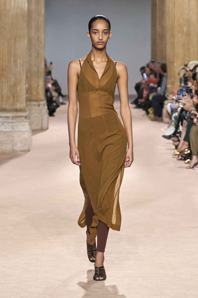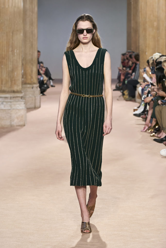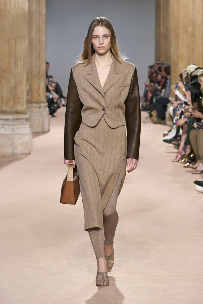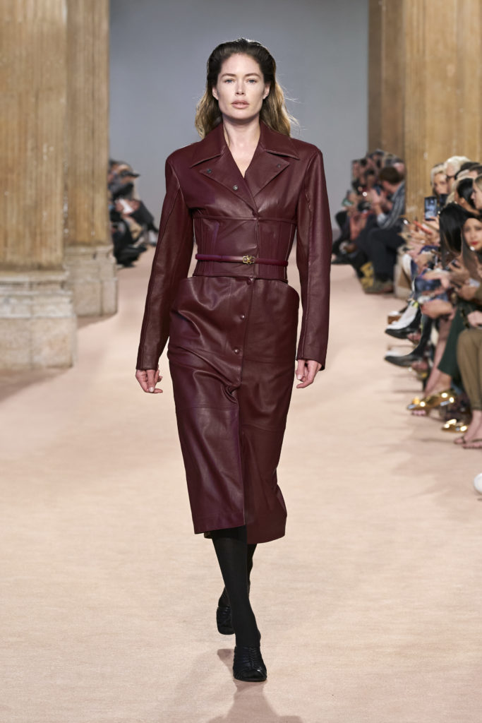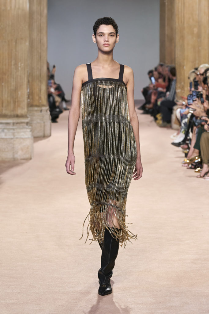 For Autumn Winter 2020 Salvatore Ferragamo explores the increasingly diverse and flexible nature of contemporary female identity. During the early 20th century, Carl Jung proposed that society’s collective unconscious recognised seven archetypes of women. In the early 21st century a woman is no longer defined by such categories – she is self-defining. Feminine identify is a fluid, self-authored free space that’s ripe for nonconformist experiment and play. Creative Director Paul Andrew says: “The notion of fitting into a set “type” feels increasingly obsolete today, both for women and men. I think the identities we choose to wear today are not fixed through a single filter – they are a shifting kaleidoscope, a collage of characteristics and qualities. “Key to this collection was considering some of the many women we idolise. We found a book by Fulvia Ferragamo in which she collected botanical images for inspiration: we used this across the collection in print, knitwear and also embroidered onto shirting. We also considered a multifaceted range of female heroes from Virginia Woolf to Nancy Pelosi via Michelle Obama and Nina Simone, and worked to reflect their intelligence, bravery and beauty in the collection.” Ferragamo’s foundation is footwear: this collection is an exercise in toe-to-head dressing. The shoes range from a reworked archival heeled sandal (made with off-cuts of Ferragamo nappa), multiple versions of the new Viva shoe (flat slingbacks to powerful block heel thigh-highs), and a tough, articulated sole workboot. Crocodile boots are made of upcycled skins. Bags included an expanded expression of our versatile Trifolio and Studio models plus a cleanly minimal day bag in vegetable tanned nappa. Hand-woven leather strapping decorates bags, shoes and coats to signal both the craft of the Ferragamo artisan, and the intertwined multiplicity of female identity and the genres of womenswear through which they are expressed. Moods include Powerful: chain fringed skirt and dress, floor-length cloaks, bold shearling, an inbuilt scarf/throw detail that runs across suiting and a floral trench, strikingly-silhouetted sculptural pockets. Soft: cashmere topcoats, gauzy botanical printed skirts and shirts, slit hem cashmere skirts, cashmere tights. Structured: seersucker tailoring, pinstriped suit and bustier skirt, formal shirting with embroideries, black evening suit with inbuilt scarf/throw, boot to bustier looks in oxblood leather and black shantung. Romantic: a dress garlanded with signature Vara grosgrain, ribbed chenille dresses, sky blue silk dress with wrapped ankle hem, sheer knit teal dress. Pragmatic: culottes, knits, and shirting looks, leather work pants, liner jacket coat in elevated chevron quilting. Paul Andrew said: “Clothes can sometimes define you. Worn with freedom they can also redefine you as tools for evolution, self-expression and transformation.”