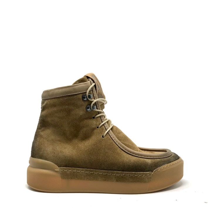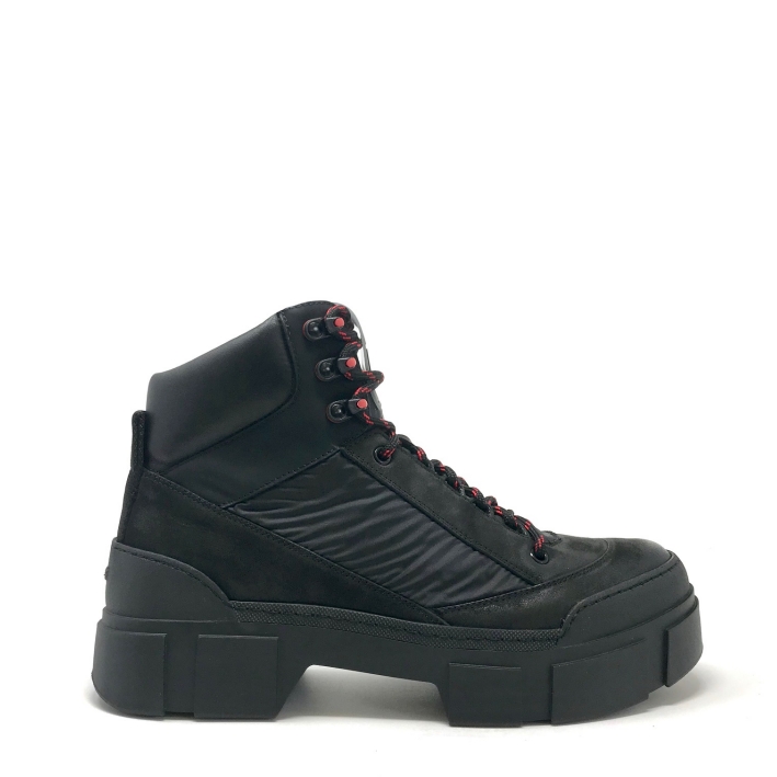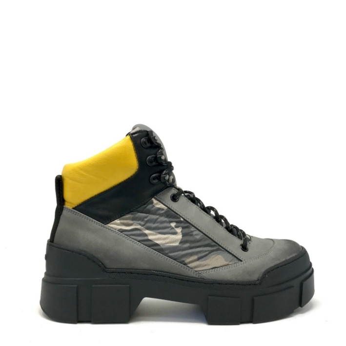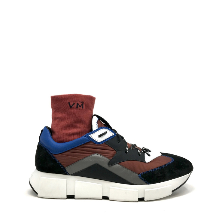 « Reflecting on the end of the first twenty years of the 2000s I felt the need to look back on the history of the brand and to reassert its DNA.I thought that in order to create new icons it would be necessary to revisit the past and tradition through the innovation of new technologies and to address the issue of environmental responsibility and product ethics », explains creative director Silvia Curzi. « The first step is to create high-quality products that respect the brand’s heritage and that will endure over time. That’s why the new FW 2020_21 women’s and men’s collections have re-edited the structures and models responsible for Vic Matiē’s recognisability from 1987 to the present day. The selection of leathers and treatments,” continues Curzi, “has also been made with a nod to the history of the brand, so we find full-bodied and polished leathers alongside worn and faded effects ». The collection Running shoes, sneakers and basketball shoes represent the unisex part of the collection. Running shoes are in leather, suede and nylon in contrasting colours. Sneakers and basketball shoes with macro logo prints and all-over stripes, last season’s best seller, are offered again in dark and natural shades of leather and suede. New running shoes and sneakers are in leather and padded and quilted nylon. Neoprene and socks in stretch knit for the high version of the women’s running shoe, in leather combined with nylon and straps for the men’s. Women: The sports and urban area of the collection is dominated by the maxi lug sole: military-inspired for the biker boot, the box sole with padding and zip, the desert boot, the Beatle boot and calf-length boot with heel; rock-climbing style for hiking and snow boots in sheepskin. The urban versions of the Beatle boot, moccasin and men’s lace-up also feature the maxi lug sole. The paraboot model is new for the season, with low and ankle versions with maxi sole and an ankle boot version with a para rubber heel. Also new is the mid-calf boot with maxi wedge and contrasting tread, a reinterpretation of an early 2000s model. The leather area is mainly developed on the reinterpretation of structures from the late 1990s and the brand’s archive. Ankle boots and moccasins with large heels, slightly flared and squared-shaped, highlighted by Adler stitching, pumps, ankle boots, western boots and bikers with narrow toes and half-cone heels.