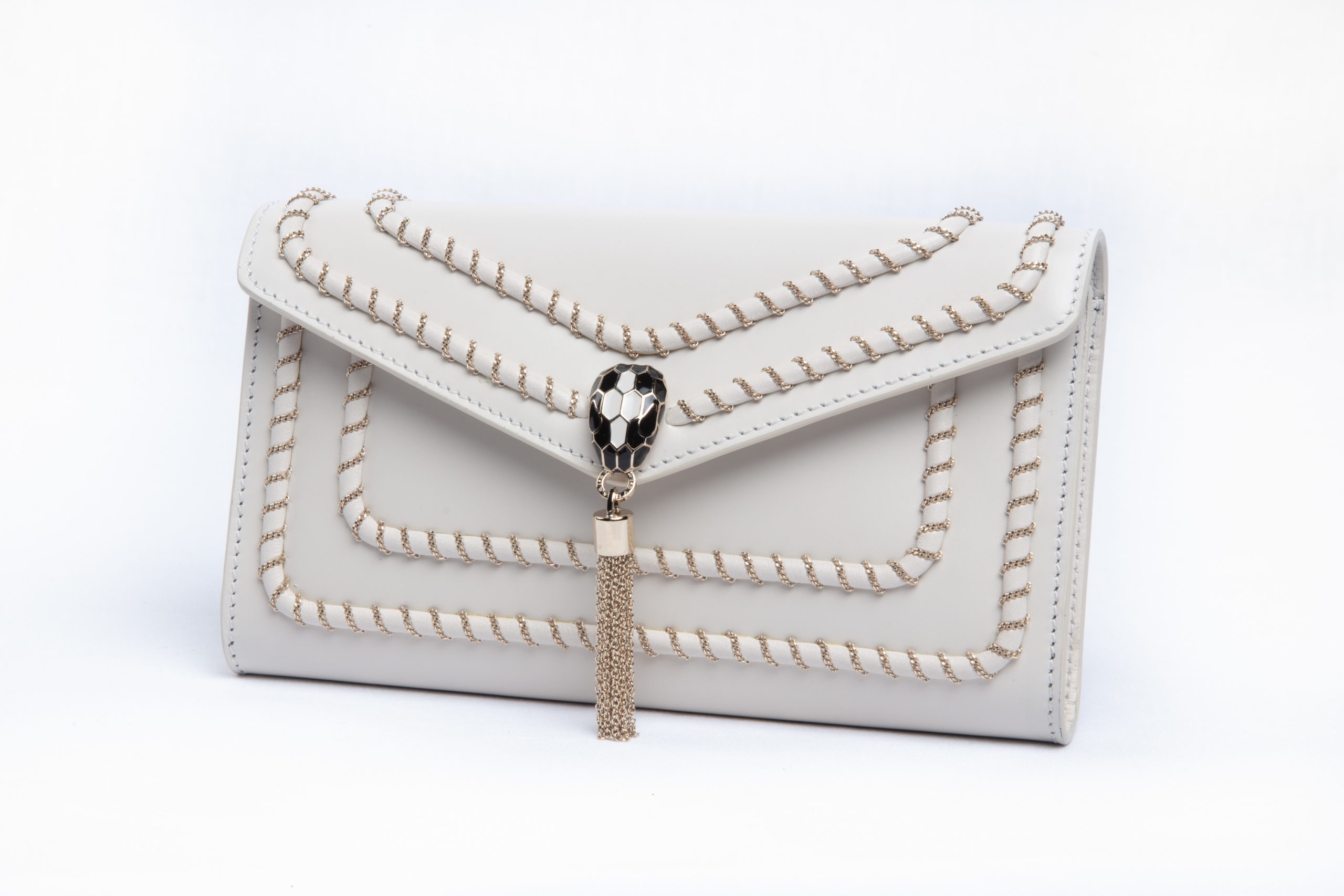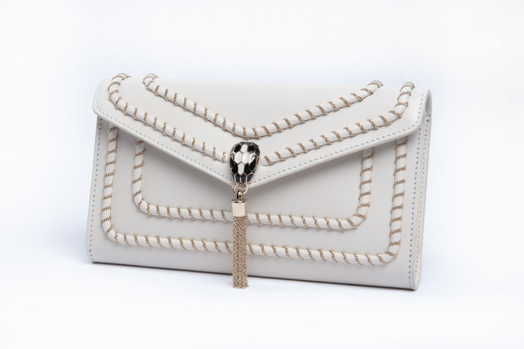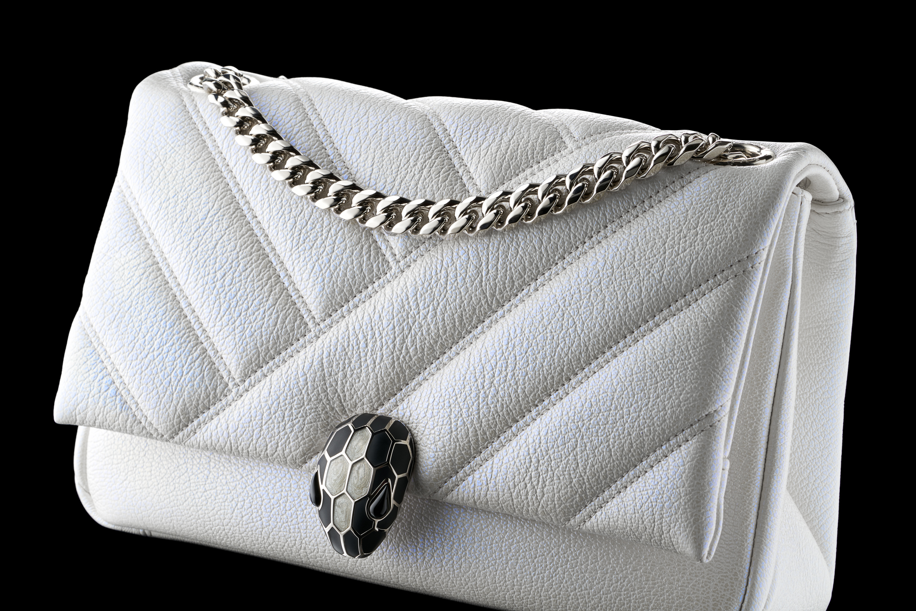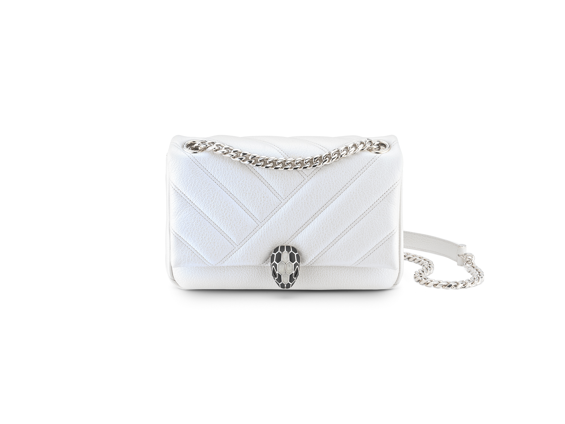Dans l’histoire racontée par les thèmes de cette nouvelle collection, le premier chapitre est celui de White Flow. Tel un peintre devant une toile pure et immaculée, la créativité et l’imagination de Bvlgari donnent libre cours à l’expérimentation du thème de la « non-couleur ». L’exploration des différents traitements de la matière, du cuir de veau vernis au cuir de veau coquillage perlé, en passant par le galuchat perlé, permet au blanc de dévoiler sa palette infinie de nuances inattendues tandis que le cuir de veau reçoit la même attention que les peaux exotiques.