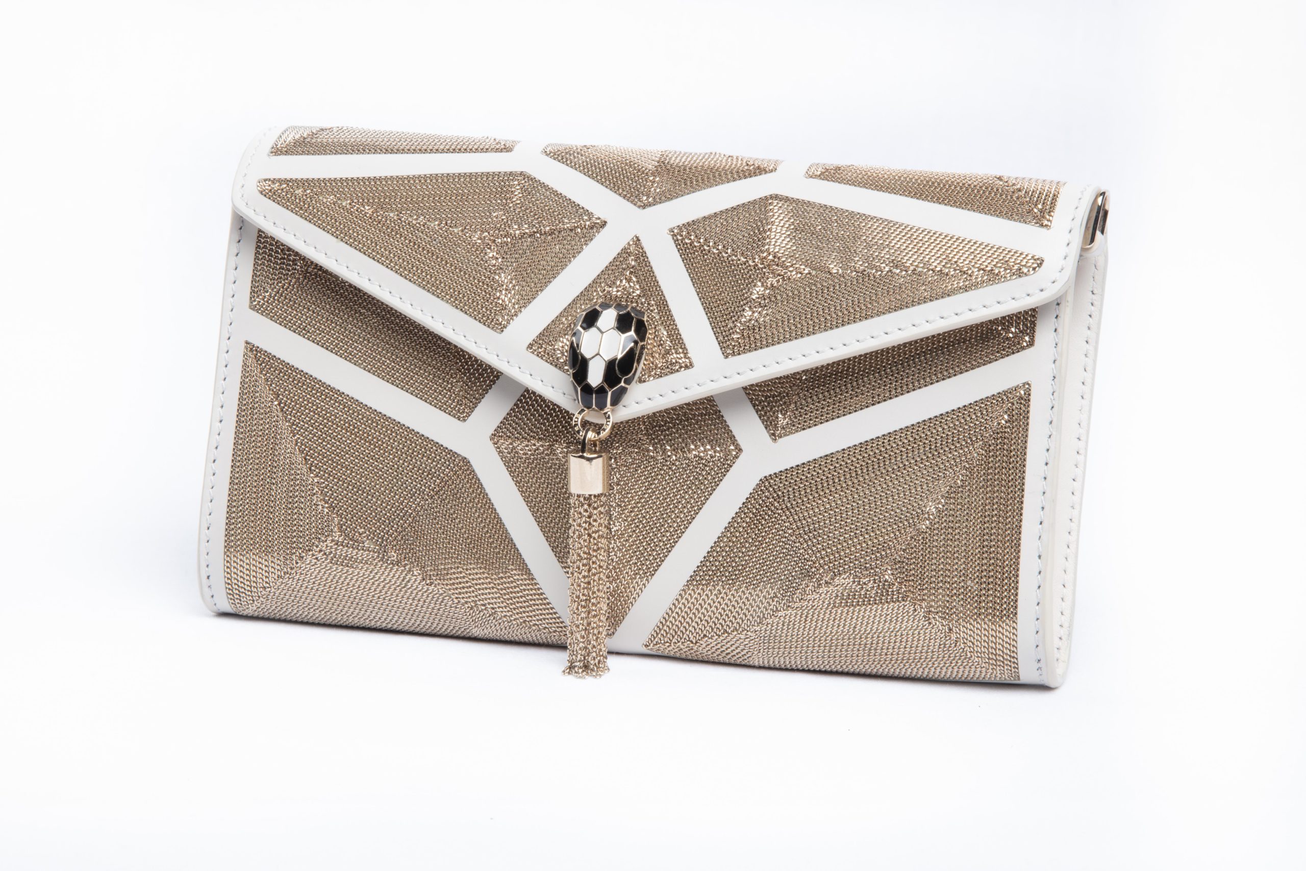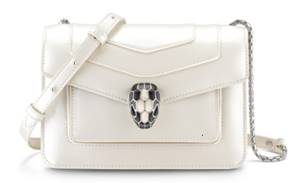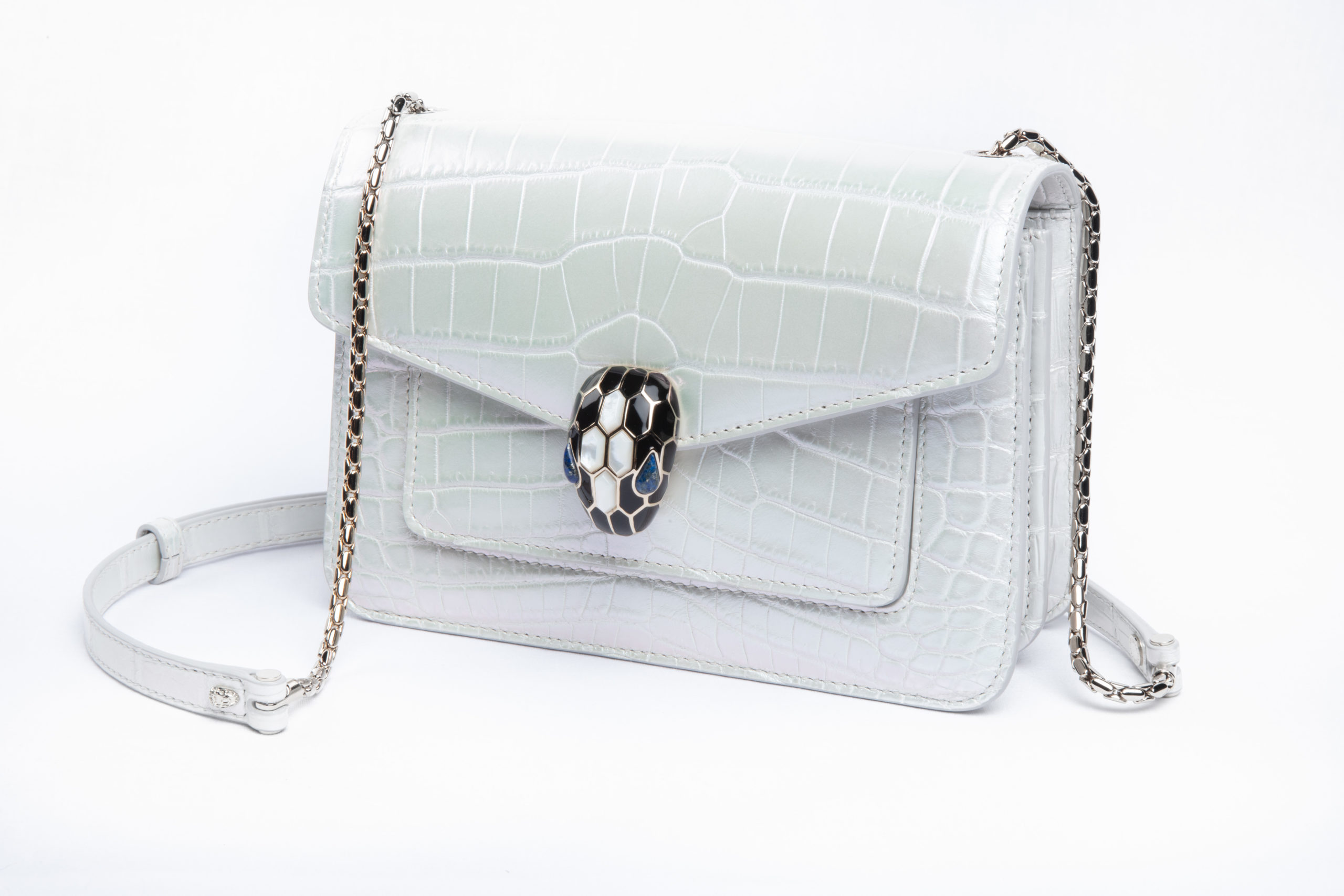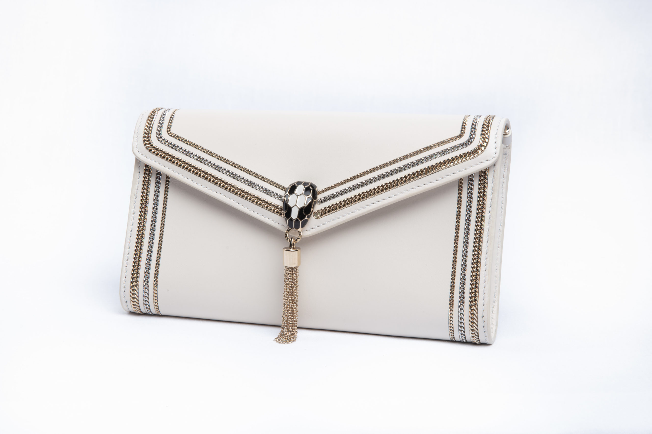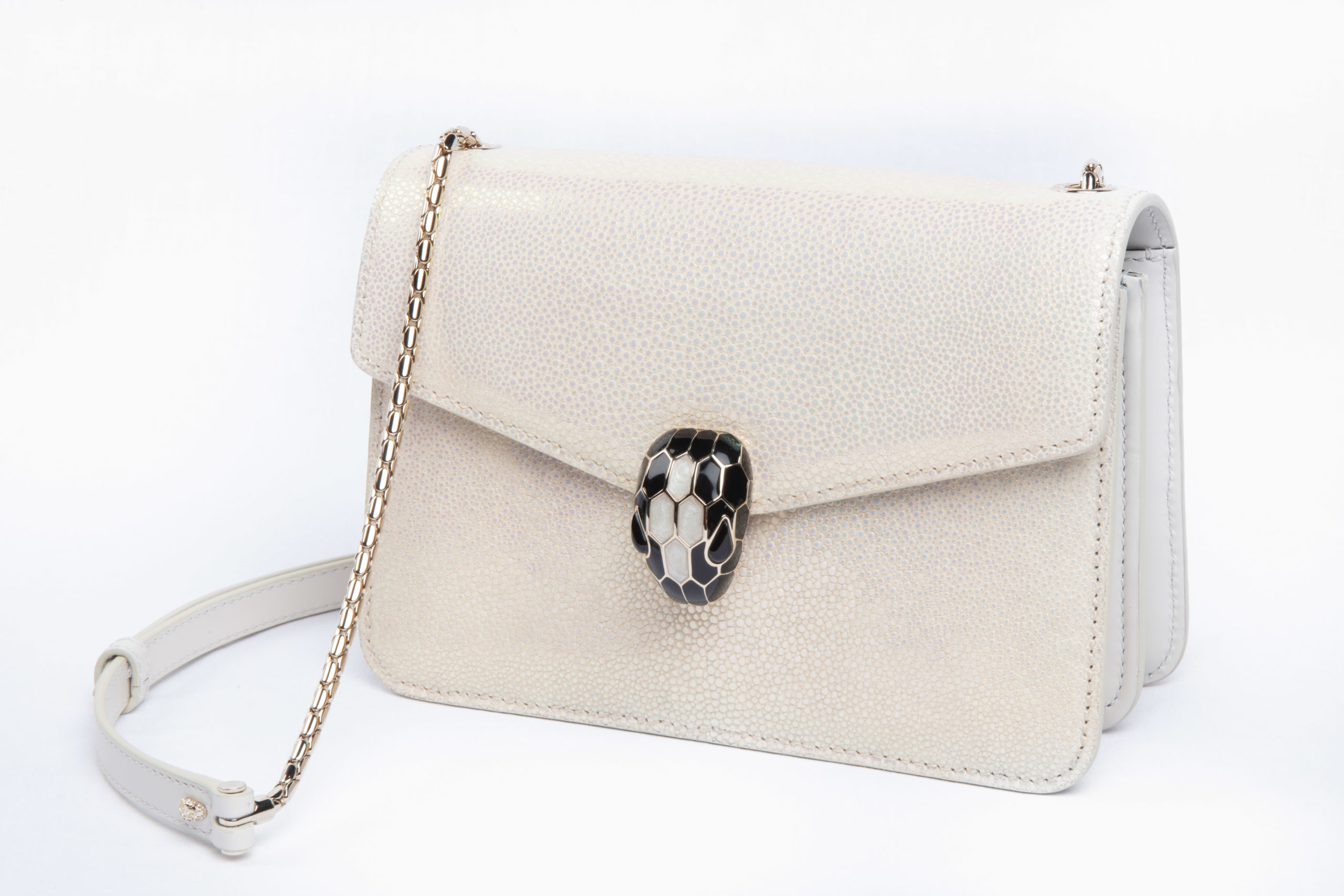Dans l’histoire racontée par les thèmes de cette nouvelle collection, le premier chapitre est celui de White Flow. Tel un peintre devant une toile pure et immaculée, la créativité et l’imagination de Bvlgari donnent libre cours à l’expérimentation du thème de la « non-couleur ». L’exploration des différents traitements de la matière, du cuir de veau vernis au cuir de veau coquillage perlé, en passant par le galuchat perlé, permet au blanc de dévoiler sa palette infinie de nuances inattendues tandis que le cuir de veau reçoit la même attention que les peaux exotiques.