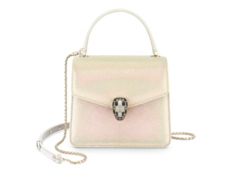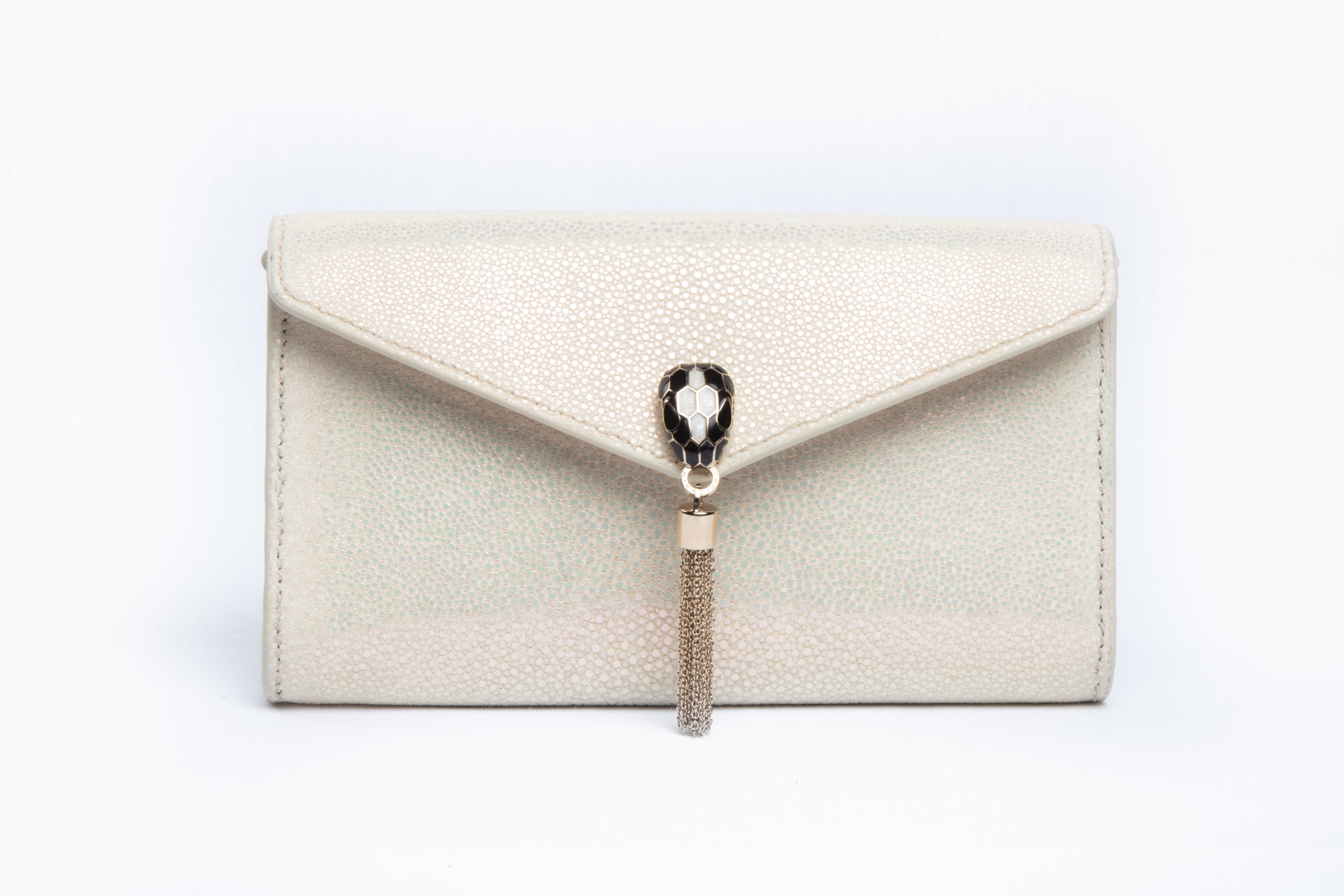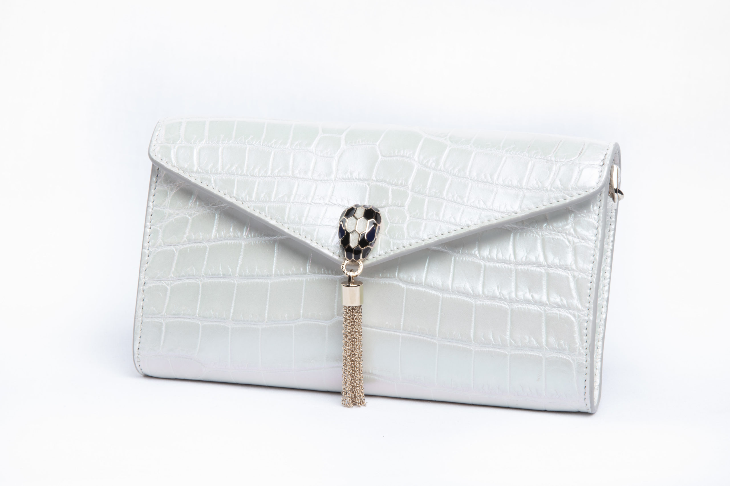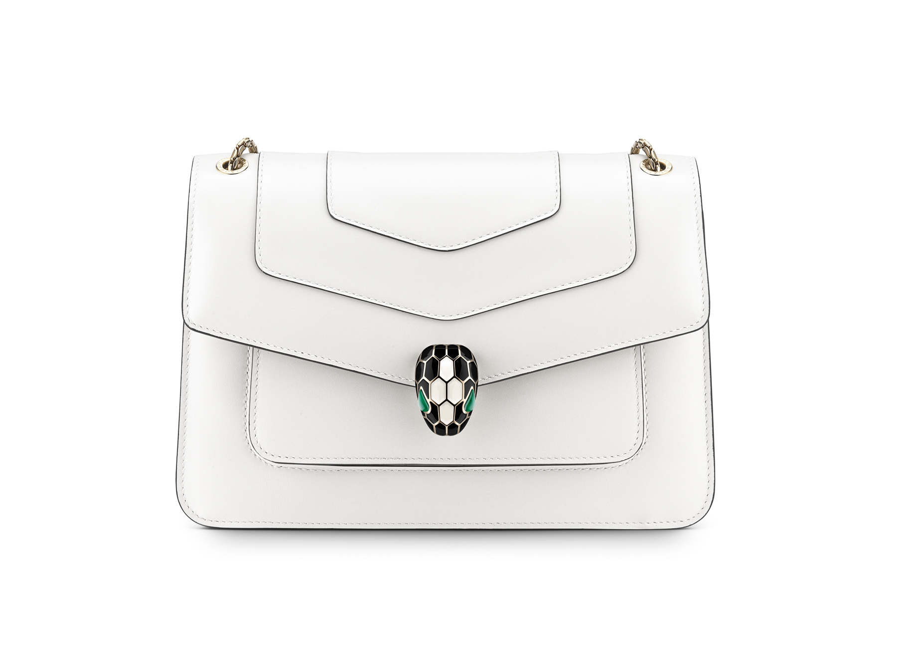 Dans l’histoire racontée par les thèmes de cette nouvelle collection, le premier chapitre est celui de White Flow. Tel un peintre devant une toile pure et immaculée, la créativité et l’imagination de Bvlgari donnent libre cours à l’expérimentation du thème de la « non-couleur ». L’exploration des différents traitements de la matière, du cuir de veau vernis au cuir de veau coquillage perlé, en passant par le galuchat perlé, permet au blanc de dévoiler sa palette infinie de nuances inattendues tandis que le cuir de veau reçoit la même attention que les peaux exotiques.