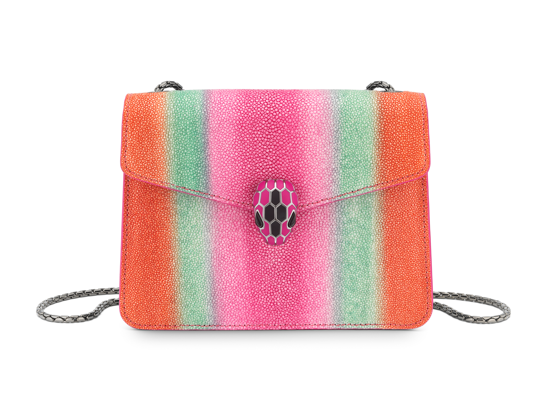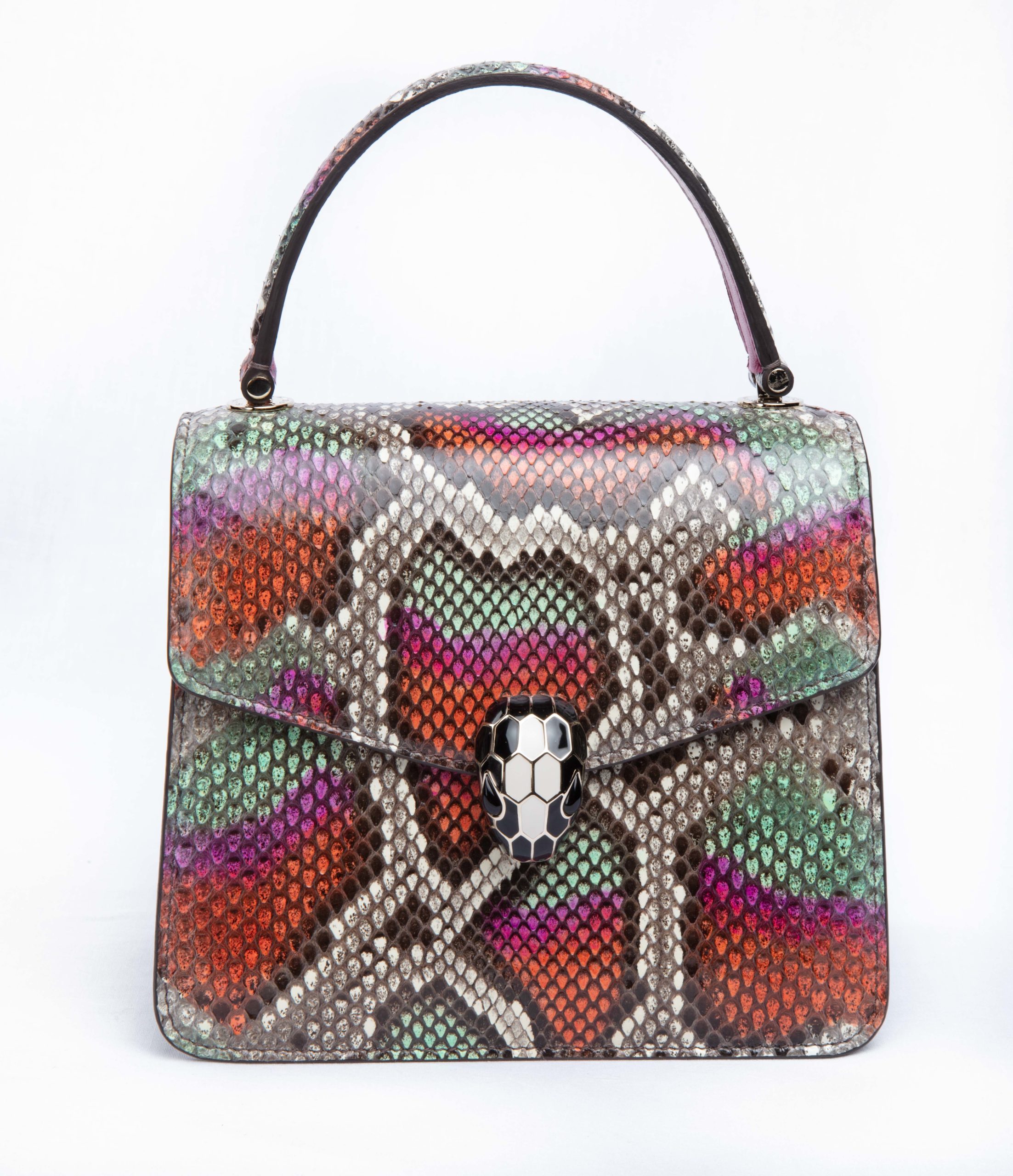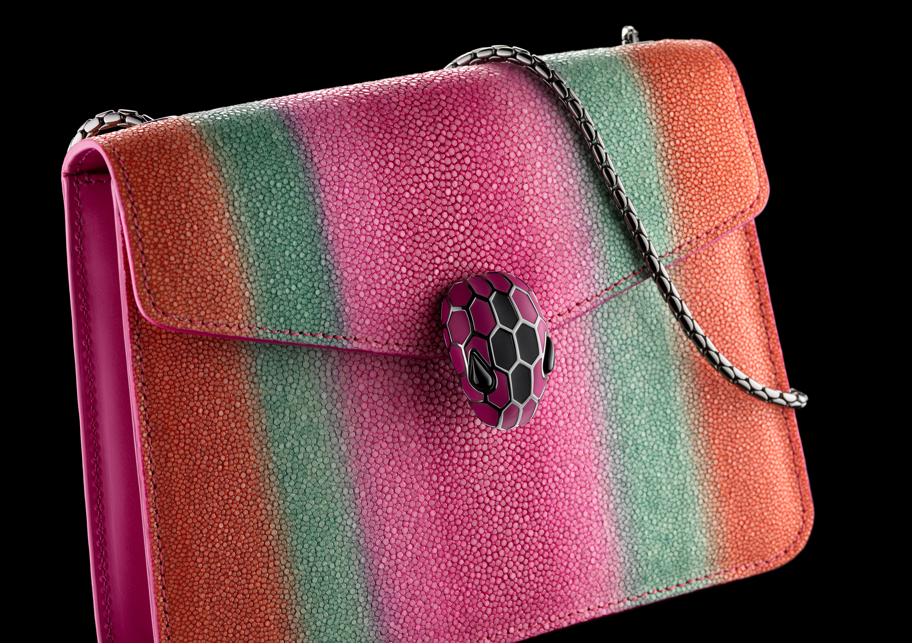 Incarnation de l’esprit joaillier et du savoir-faire maroquinier, créée sur-mesure pour la vie d’aujourd’hui, la nouvelle collection projette Serpenti dans un univers Maxi Glam de sophistication espiègle et de style avant-gardiste. Au fil de la saison, les peaux et cuirs les plus précieux se métamorphosent et se parent d’effets irisés inédits pour exprimer le pouvoir de transformation de l’âme Serpenti.