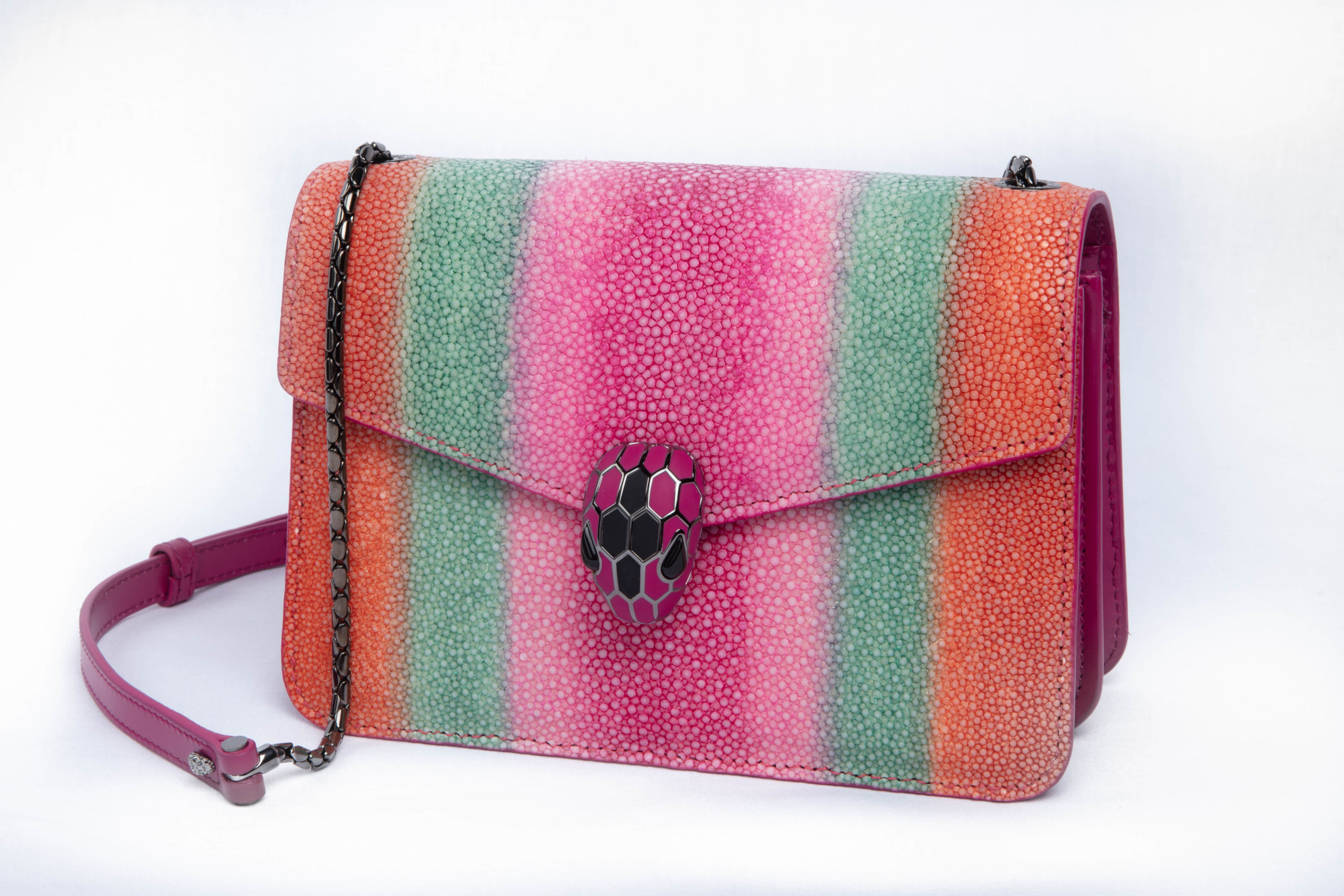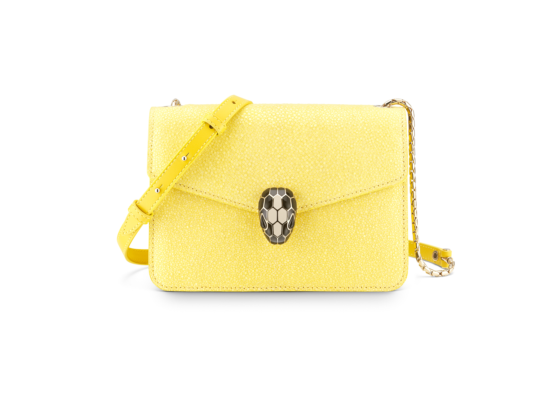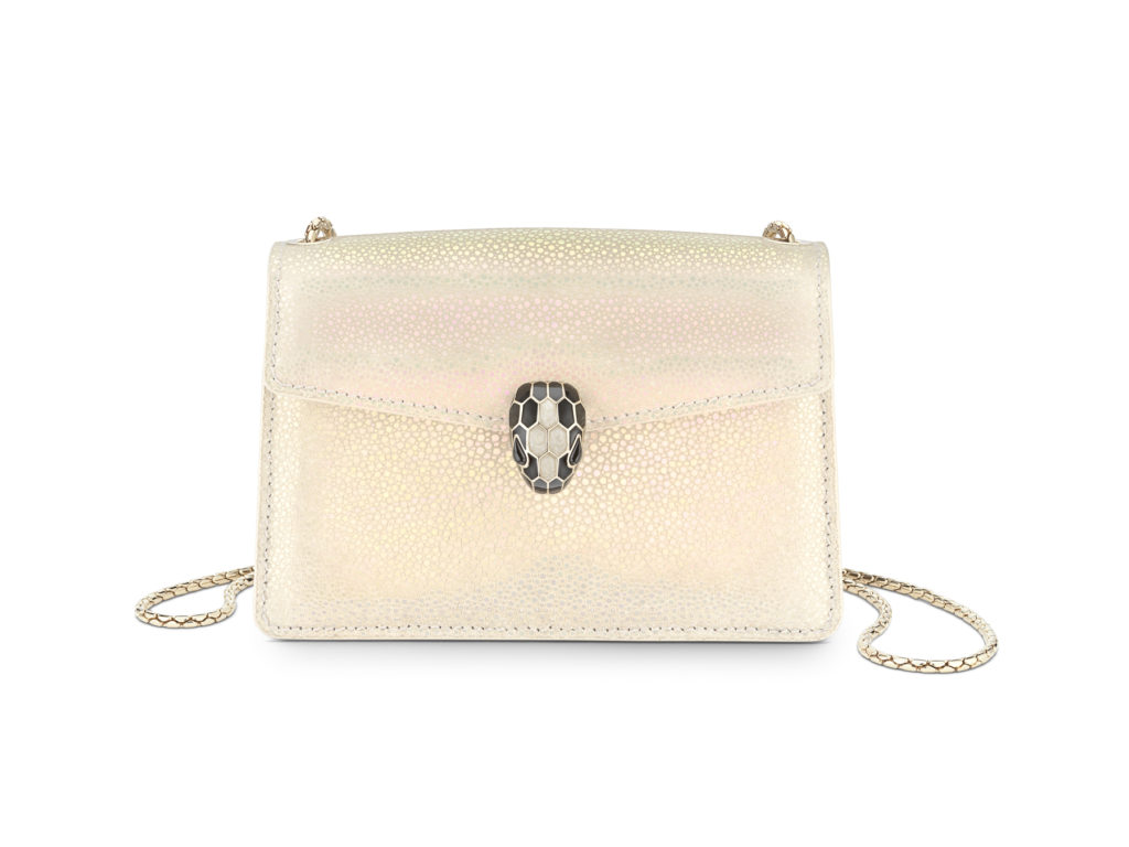 Incarnation de l’esprit joaillier et du savoir-faire maroquinier, créée sur-mesure pour la vie d’aujourd’hui, la nouvelle collection projette Serpenti dans un univers Maxi Glam de sophistication espiègle et de style avant-gardiste. Au fil de la saison, les peaux et cuirs les plus précieux se métamorphosent et se parent d’effets irisés inédits pour exprimer le pouvoir de transformation de l’âme Serpenti.