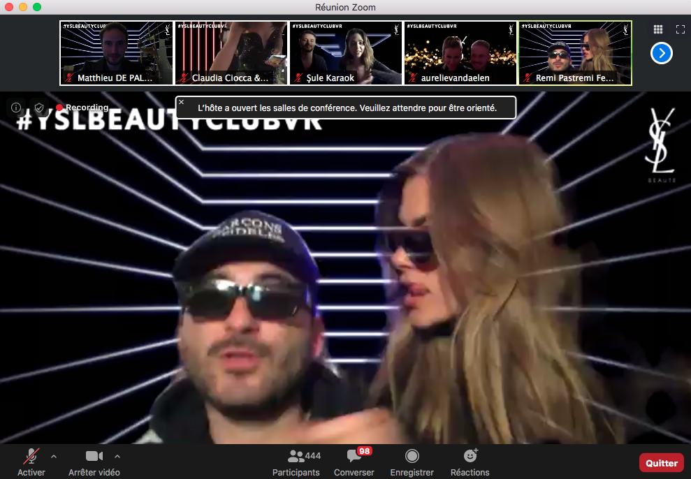 WHAT : On Friday May 15th 2020, YSL Beauté presented for the first time the YSL Beauty Club – Virtual Room on Zoom. A worlwide event, where 1000 guests were able to dance until late on the music of DJ Louise Chen (@chchchen) and enjoyed a virtual dance performance by Brandon Miel Masele (@malboneige).
