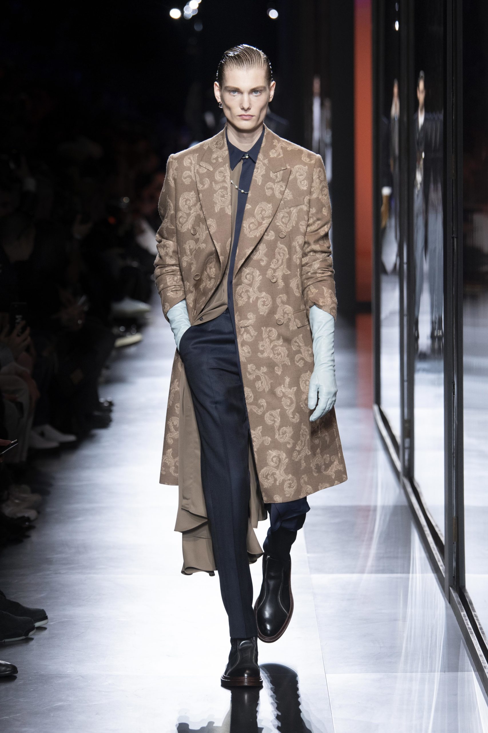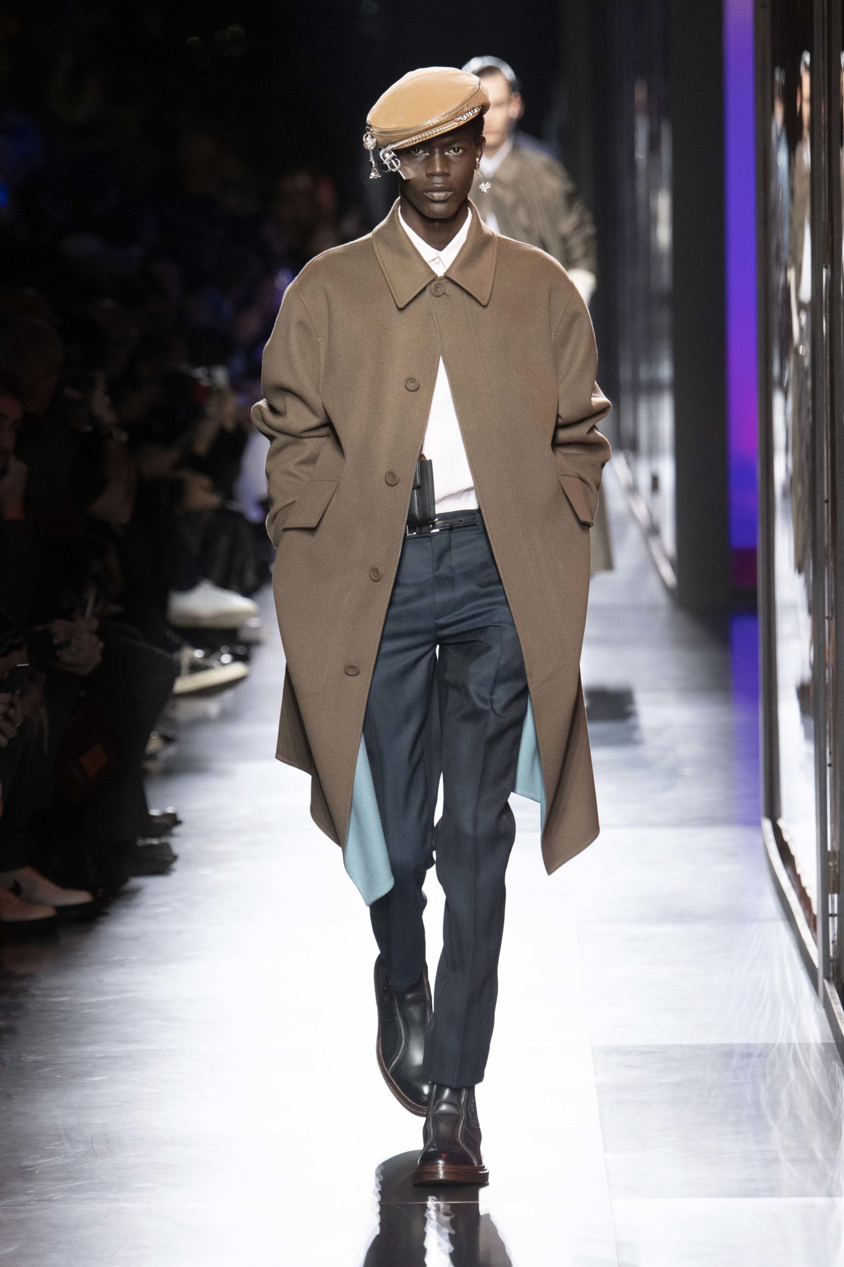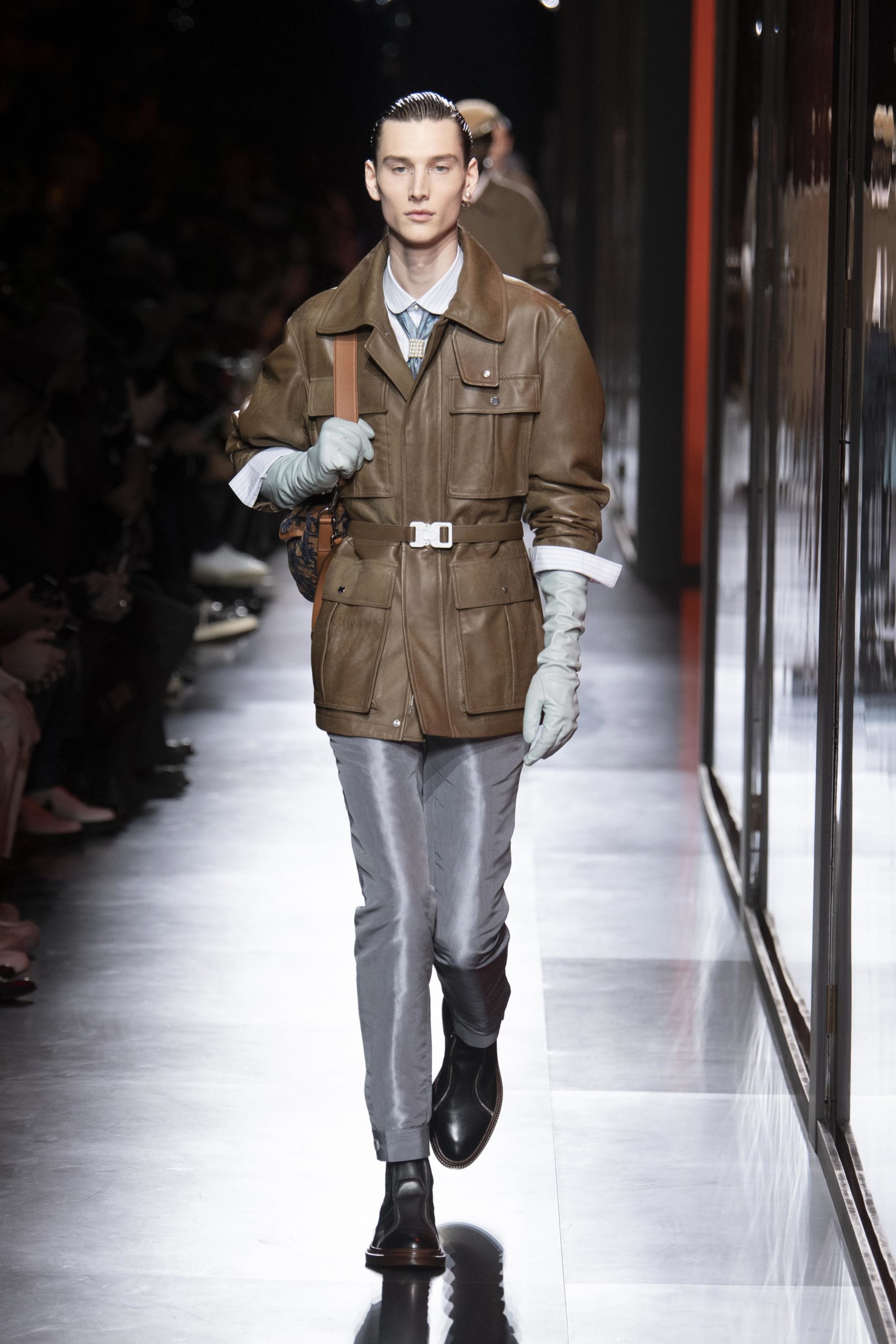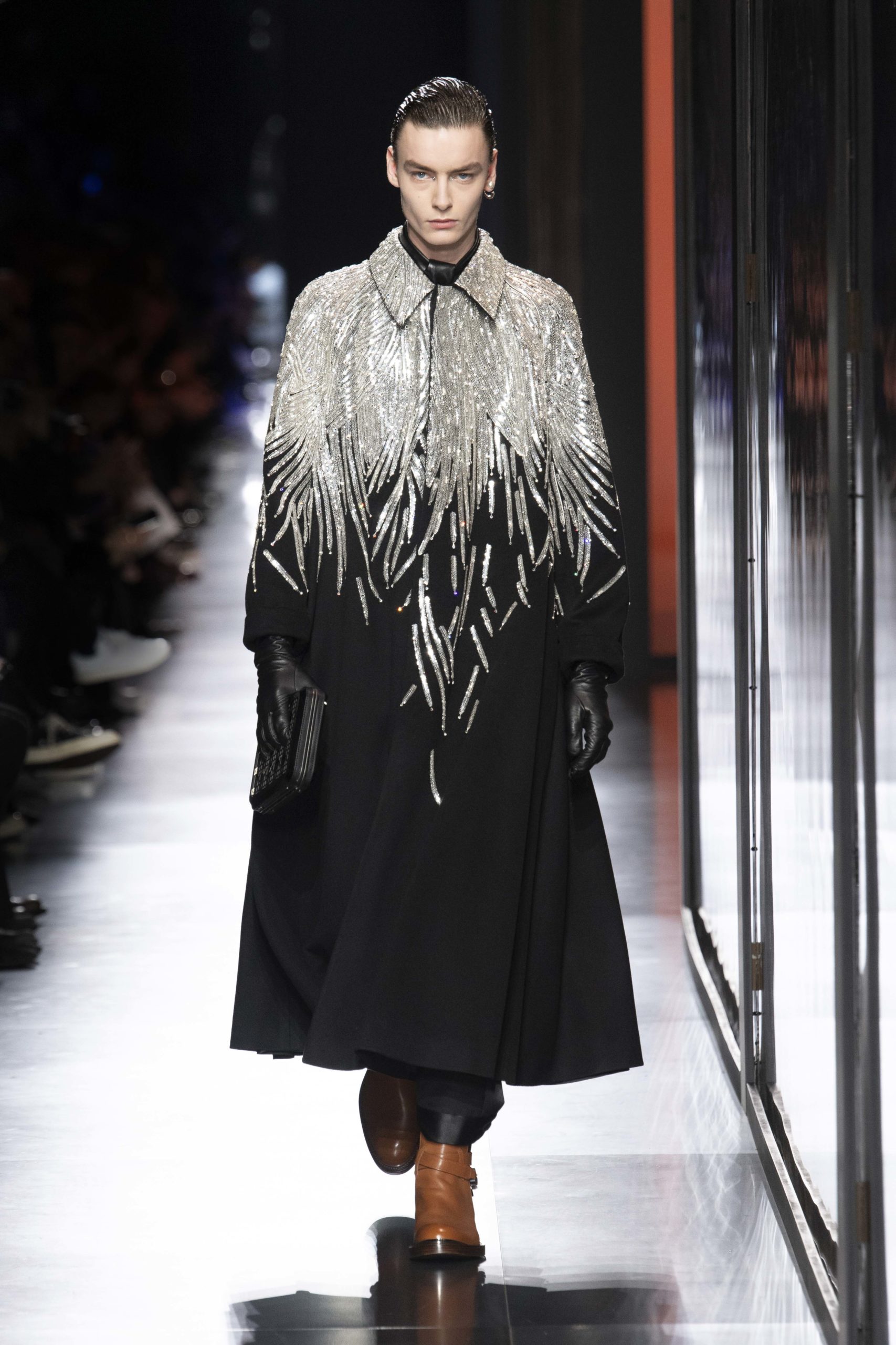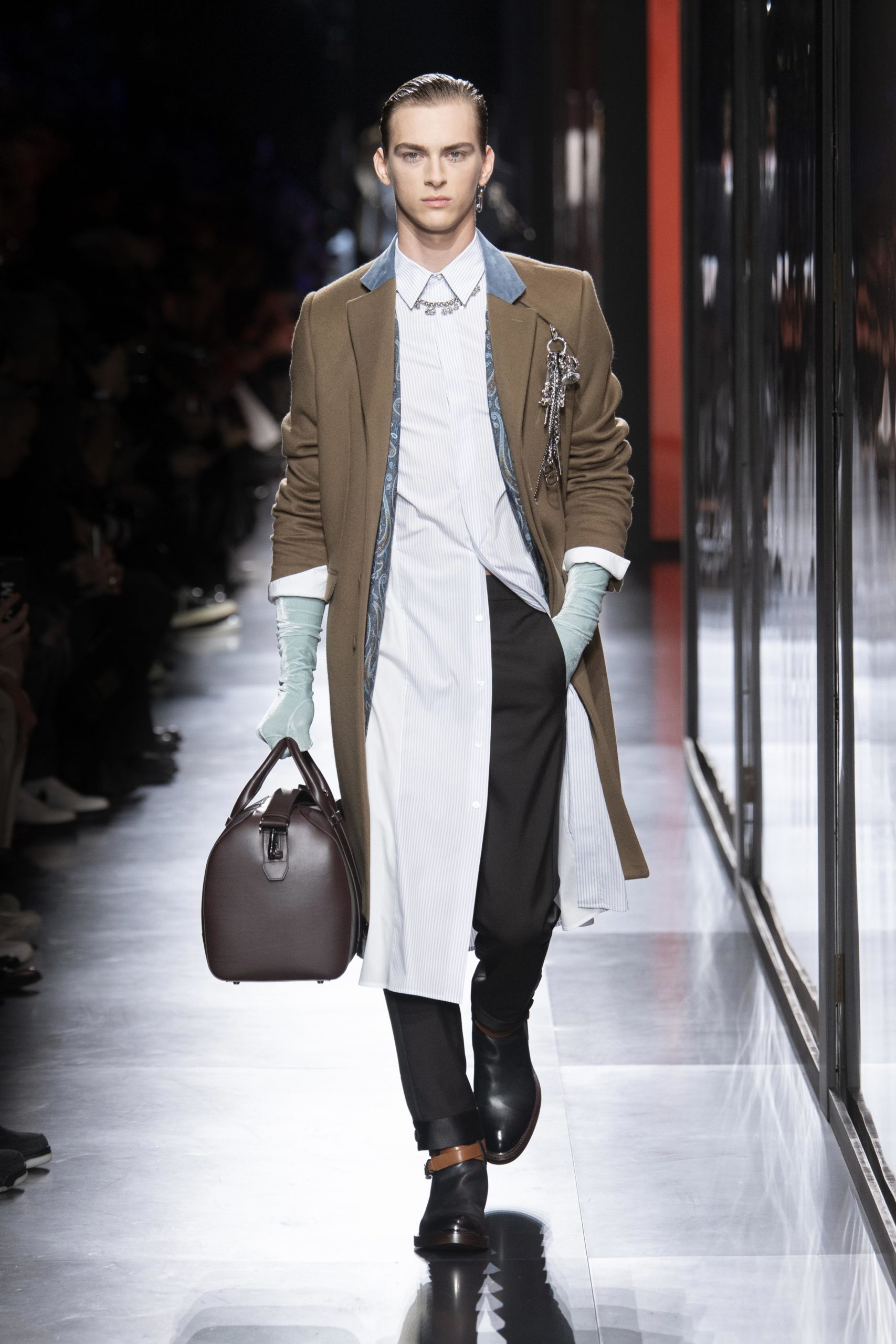 - Model wears an outfit , as part of the men s wear fall winter 2020 2021, men fashion week, Paris, France, from the house of Dior