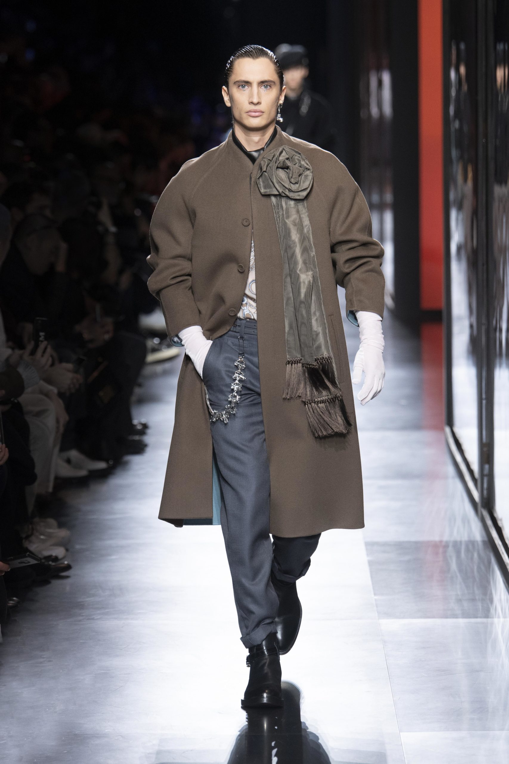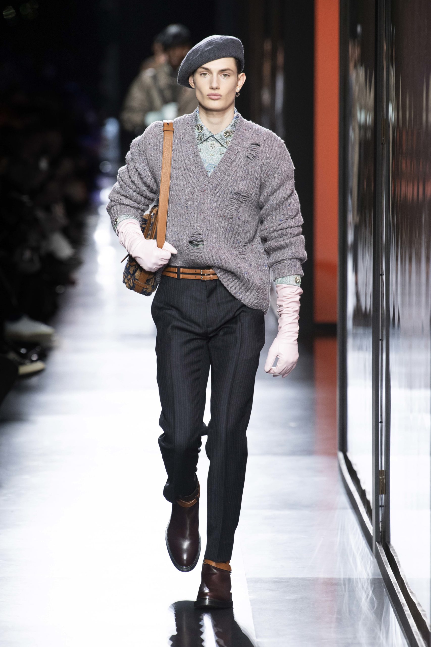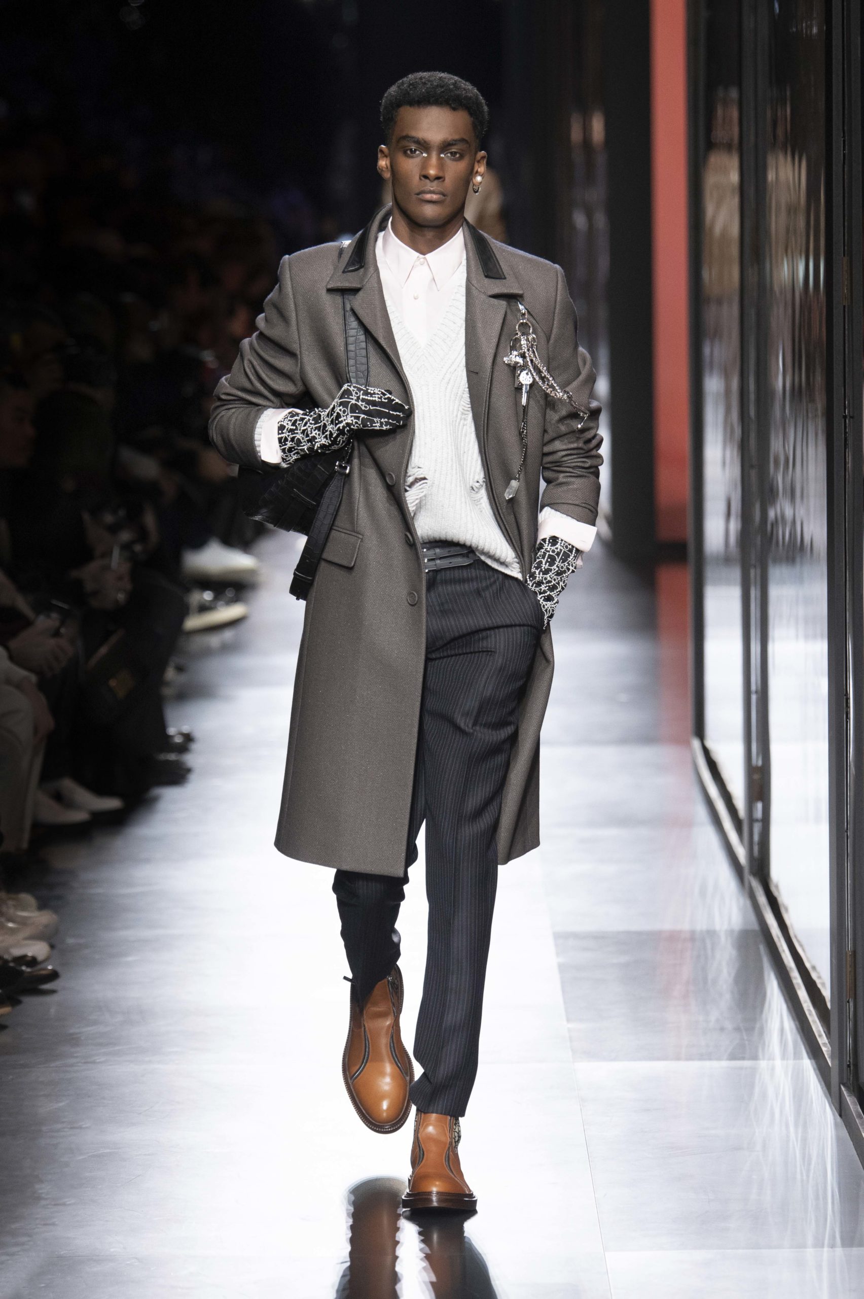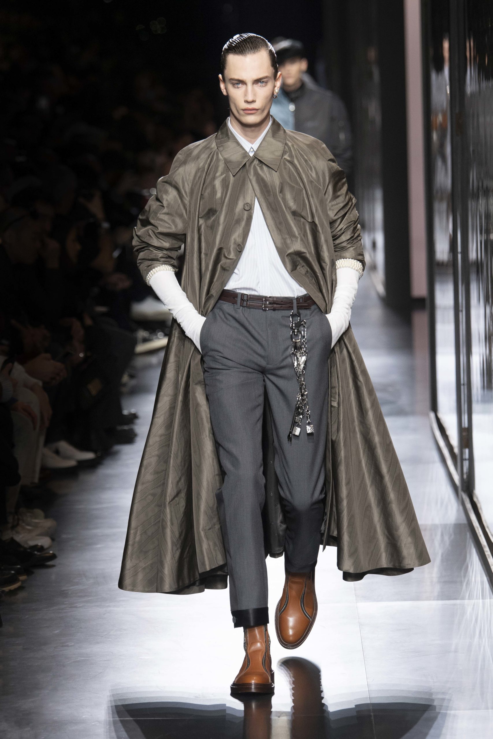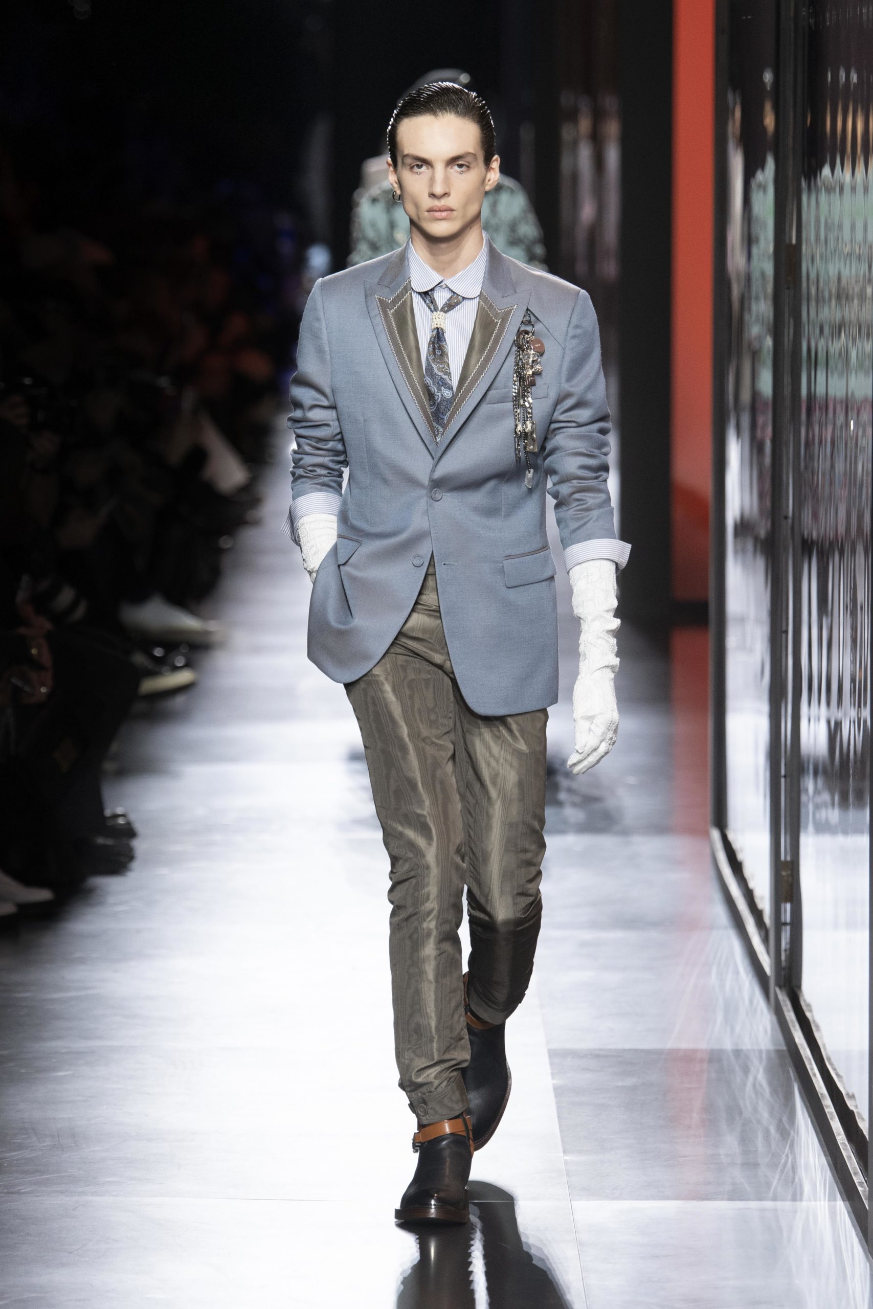 - Model wears an outfit , as part of the men s wear fall winter 2020 2021, men fashion week, Paris, France, from the house of Dior