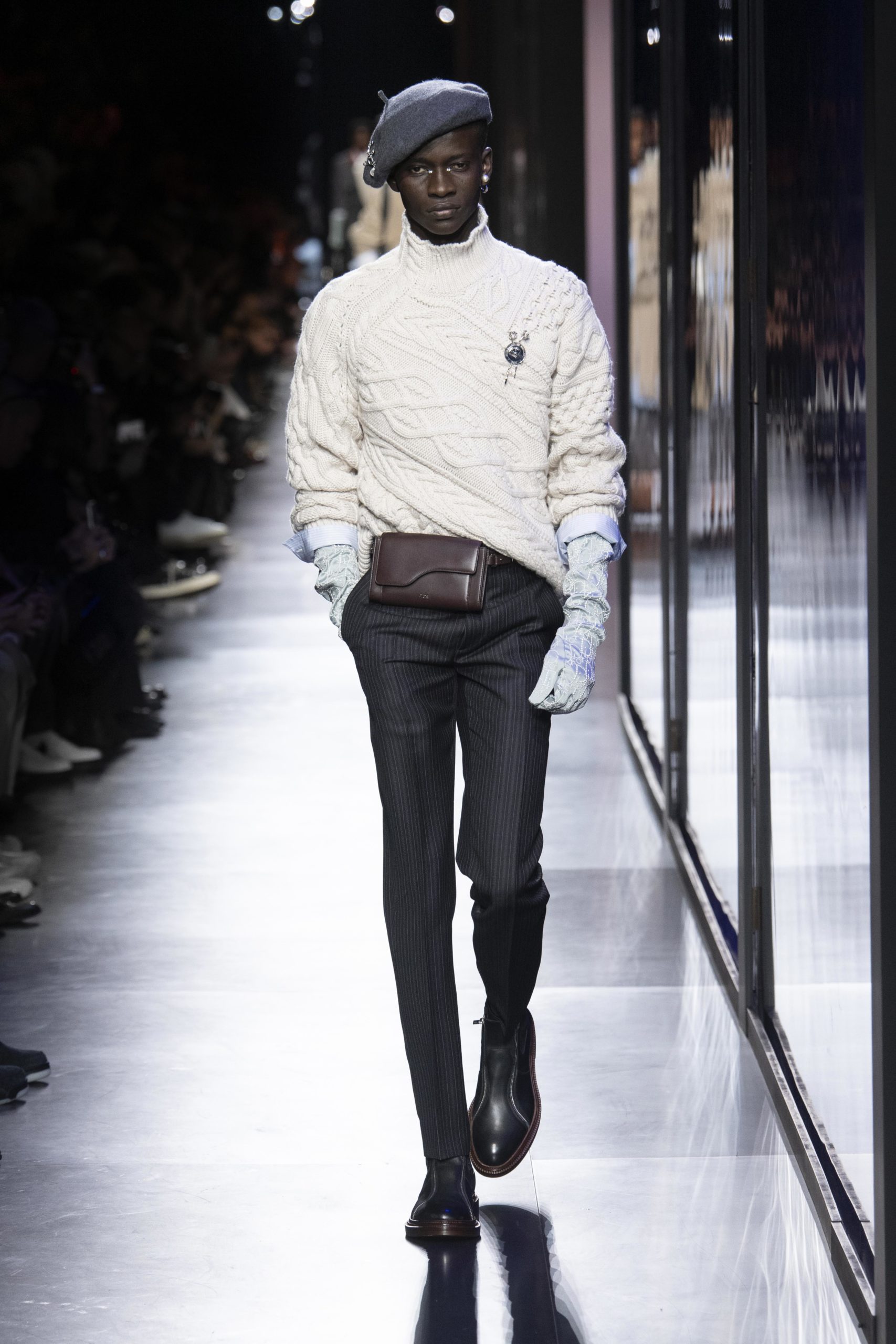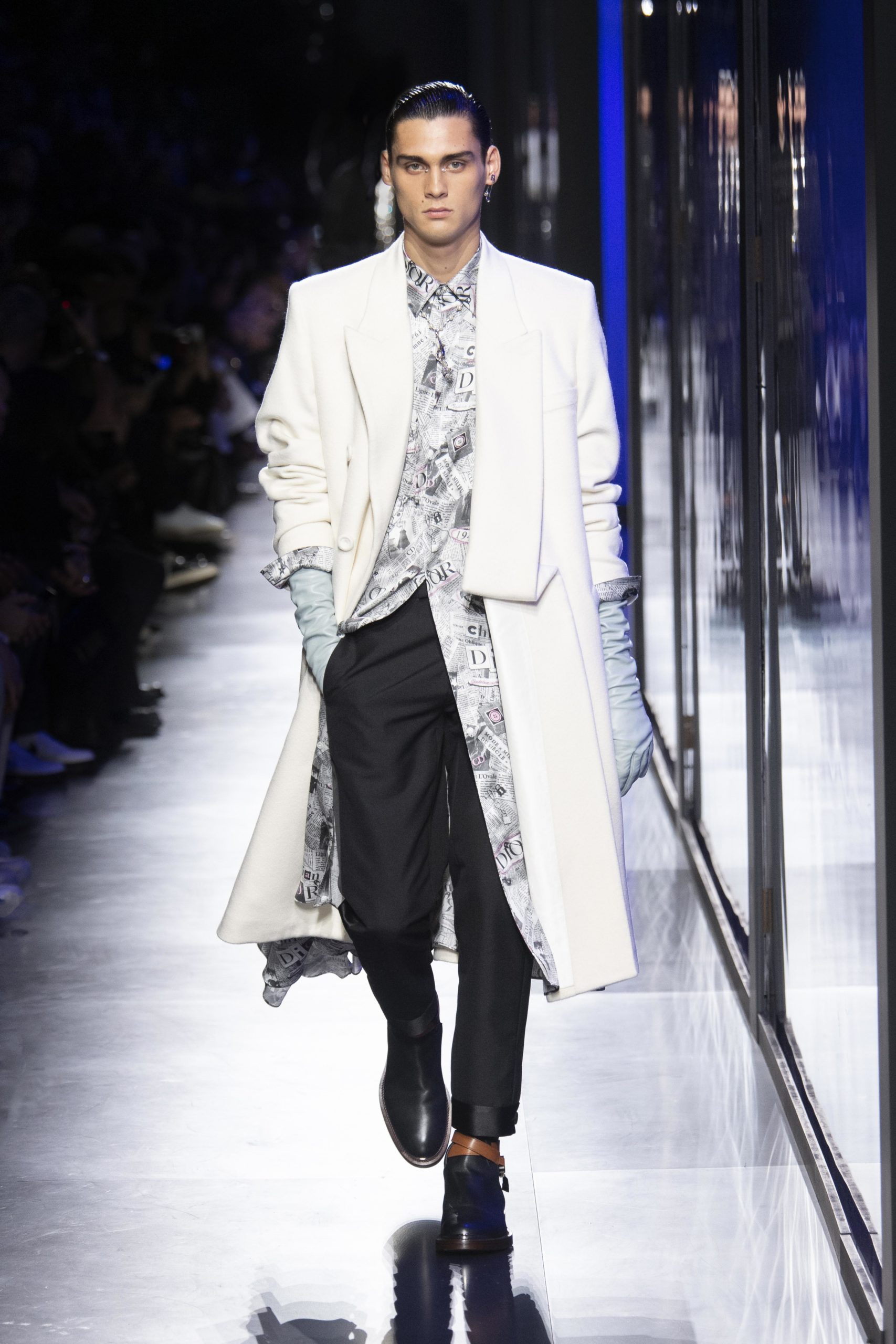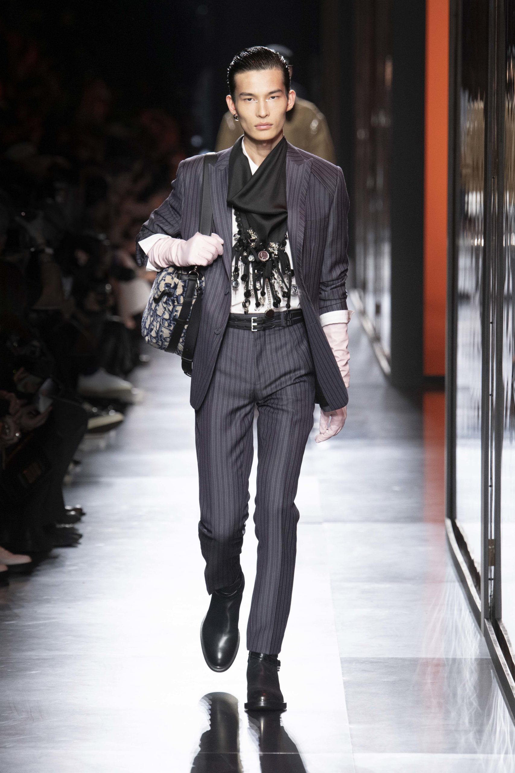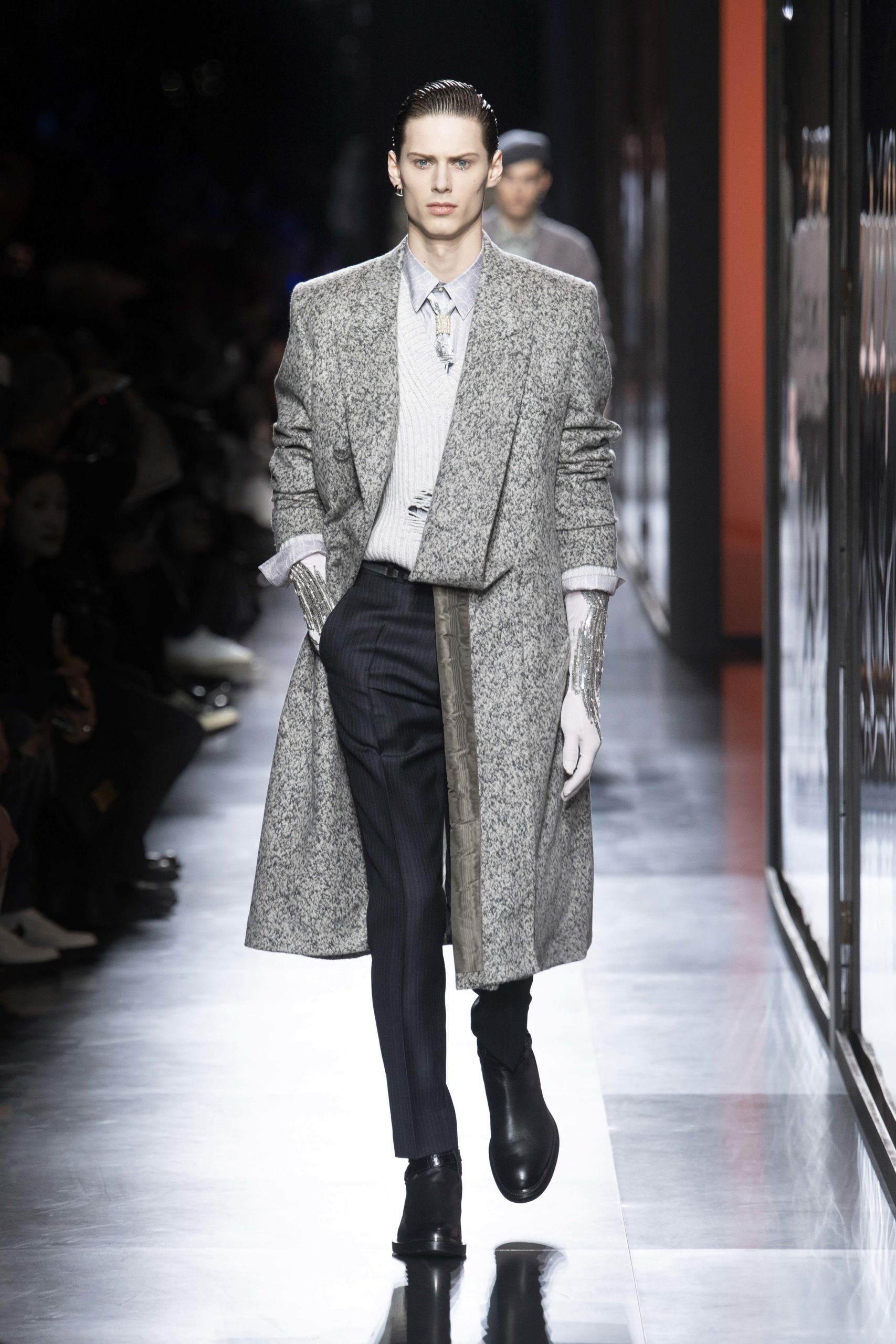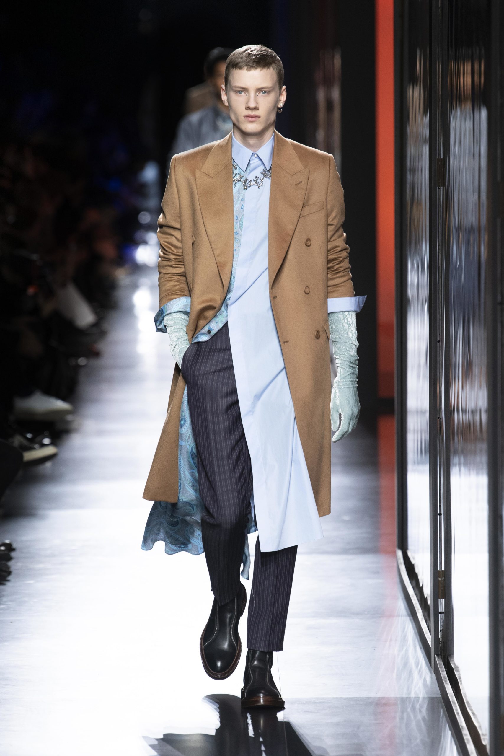 - Model wears an outfit , as part of the men s wear fall winter 2020 2021, men fashion week, Paris, France, from the house of Dior