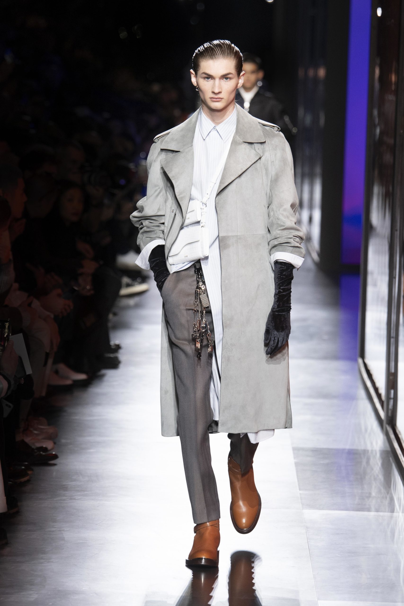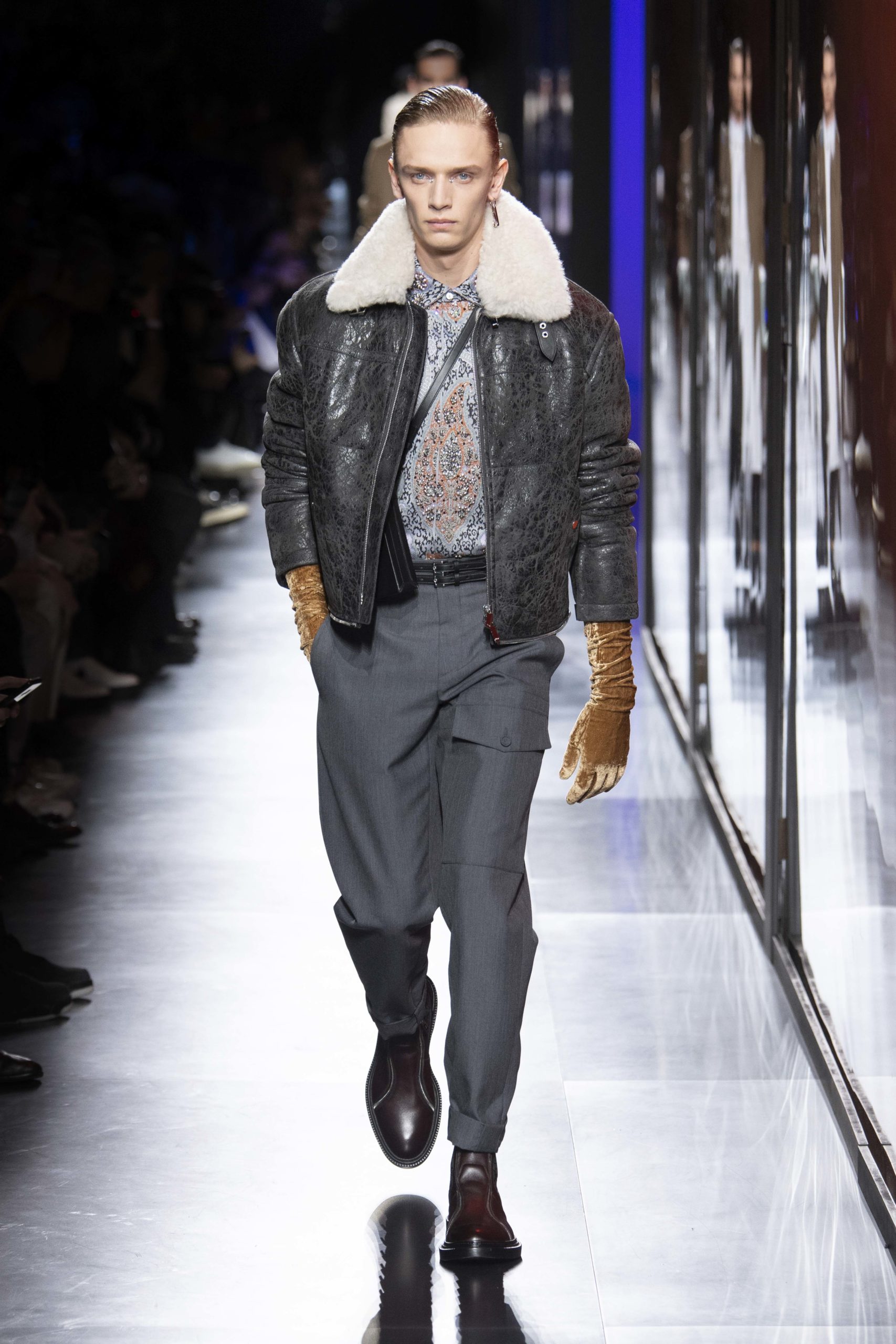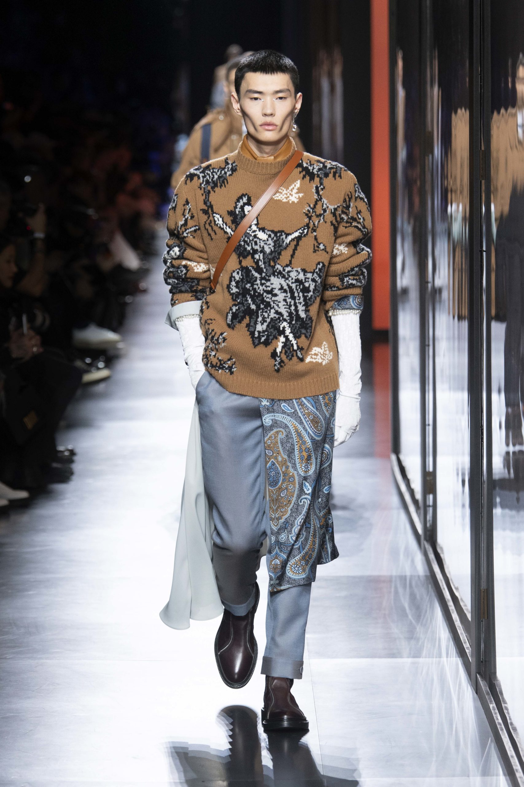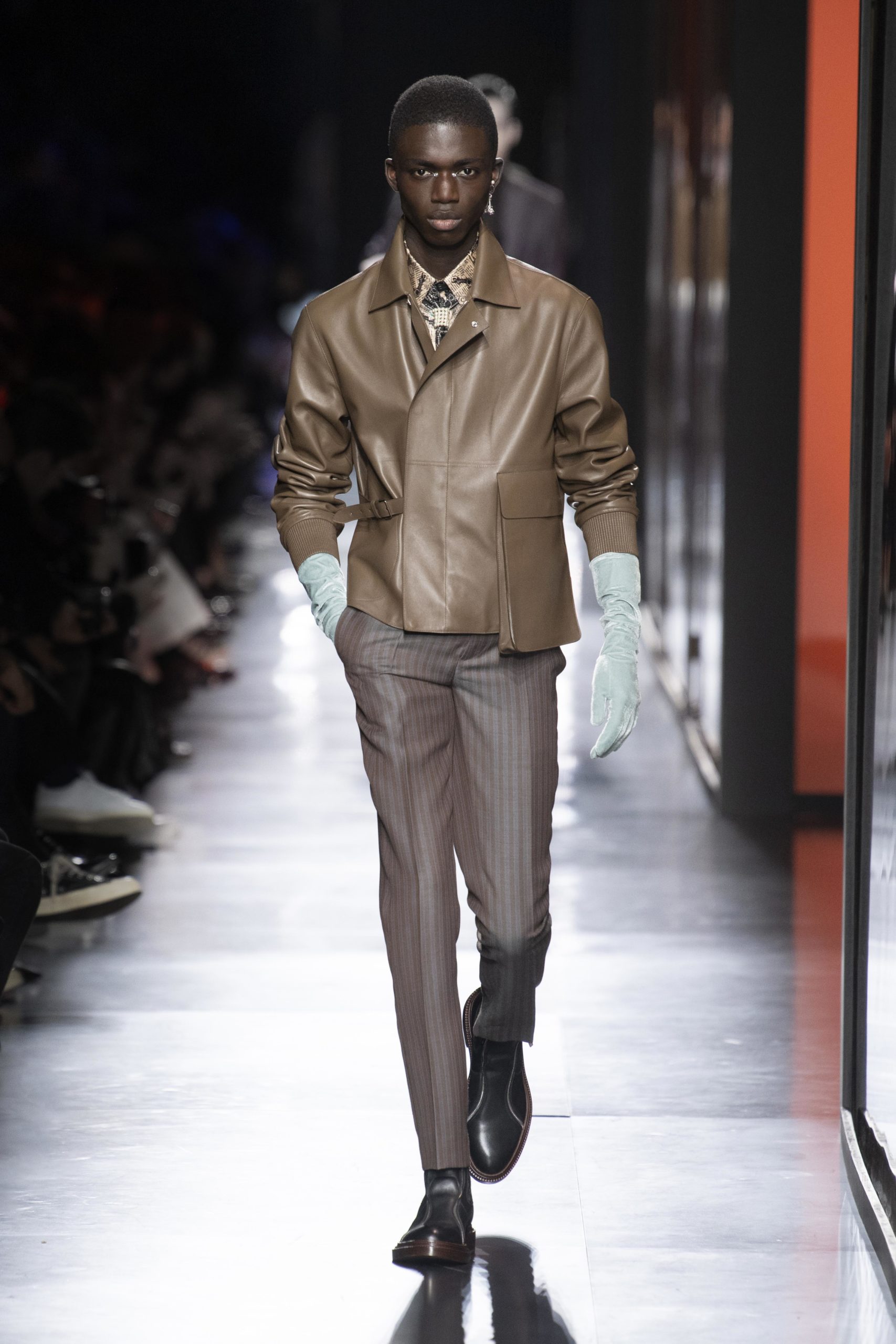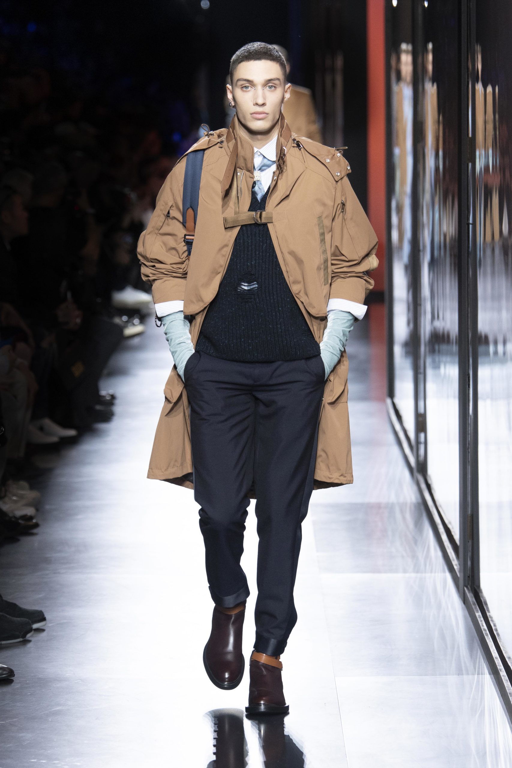 - Model wears an outfit , as part of the men s wear fall winter 2020 2021, men fashion week, Paris, France, from the house of Dior