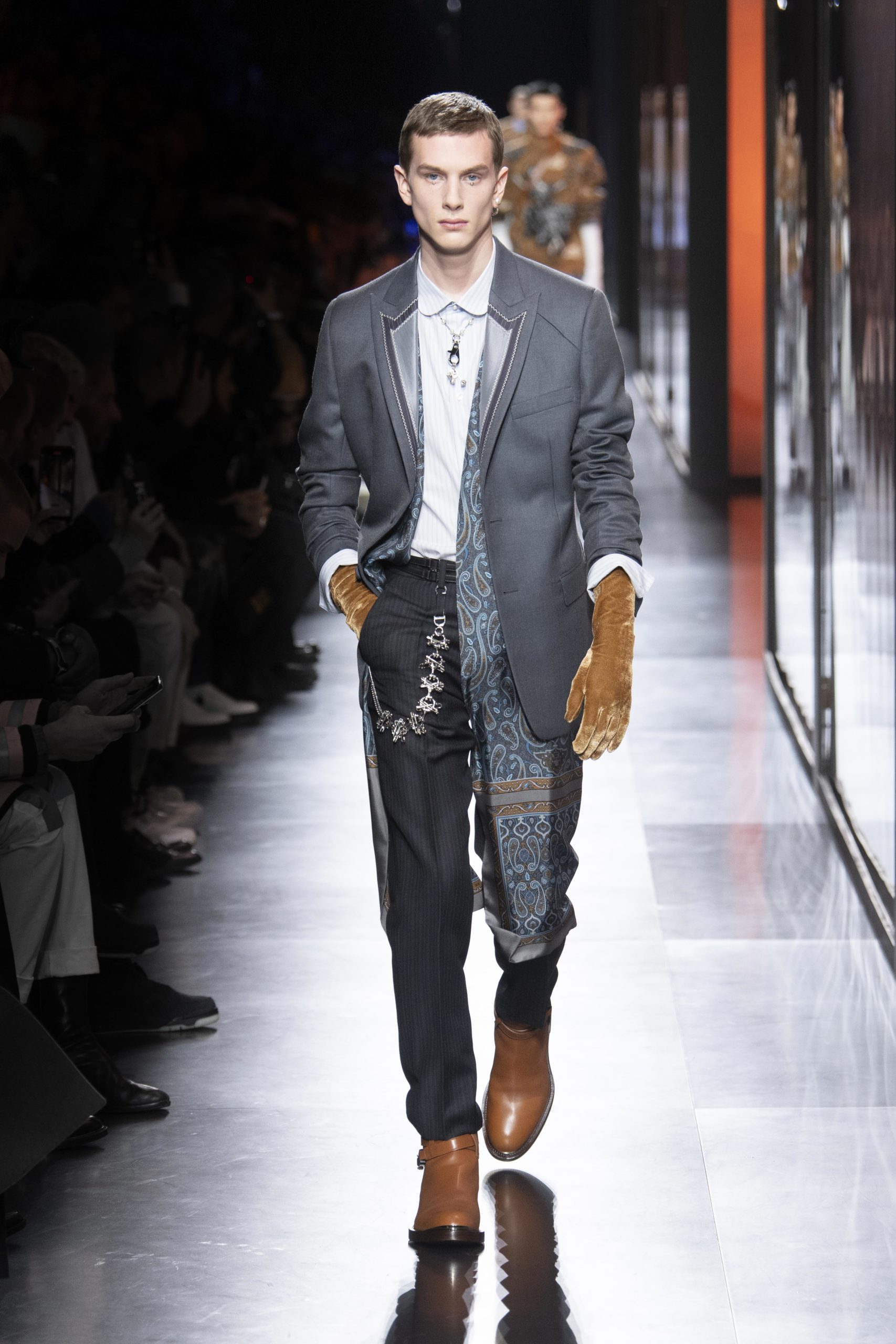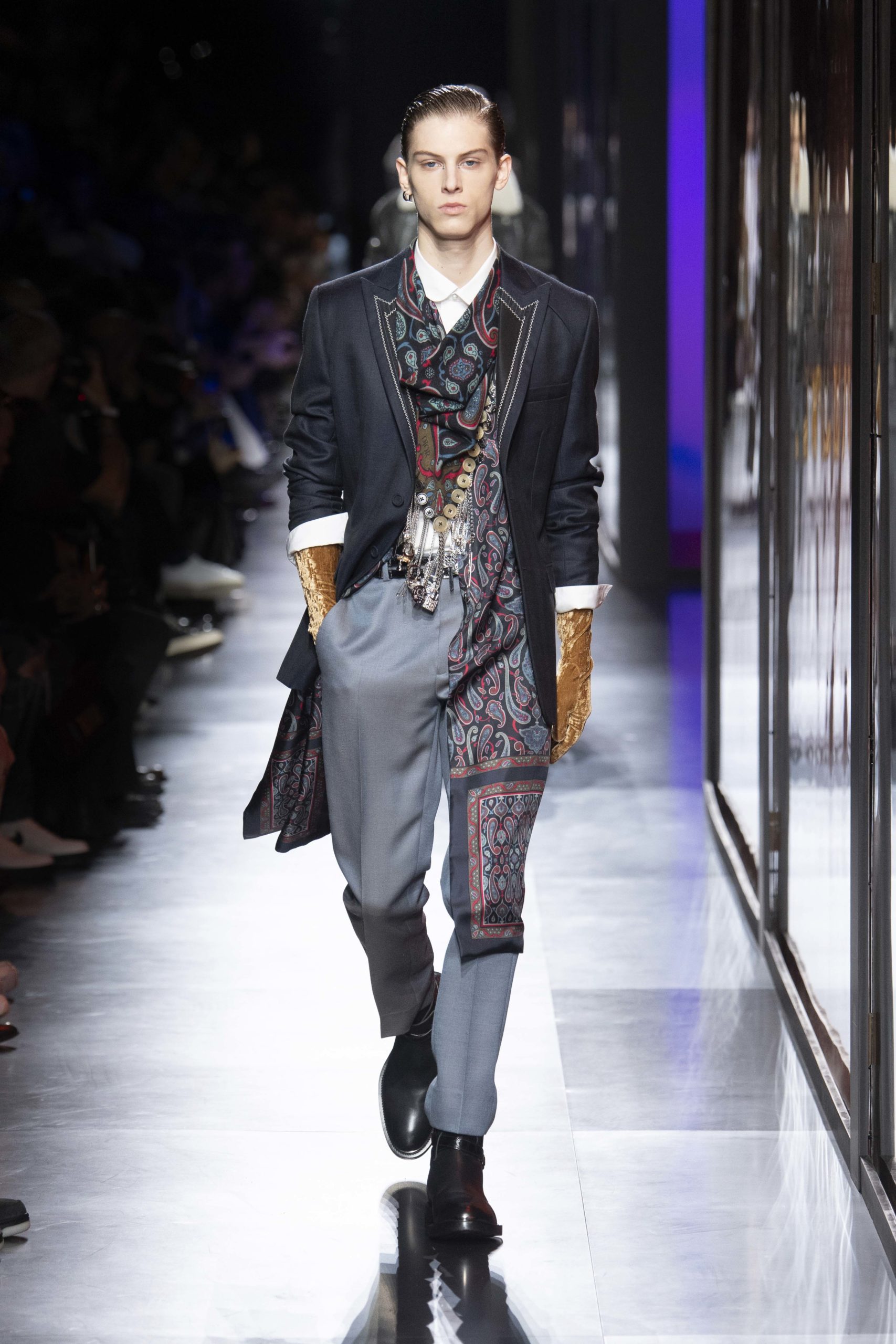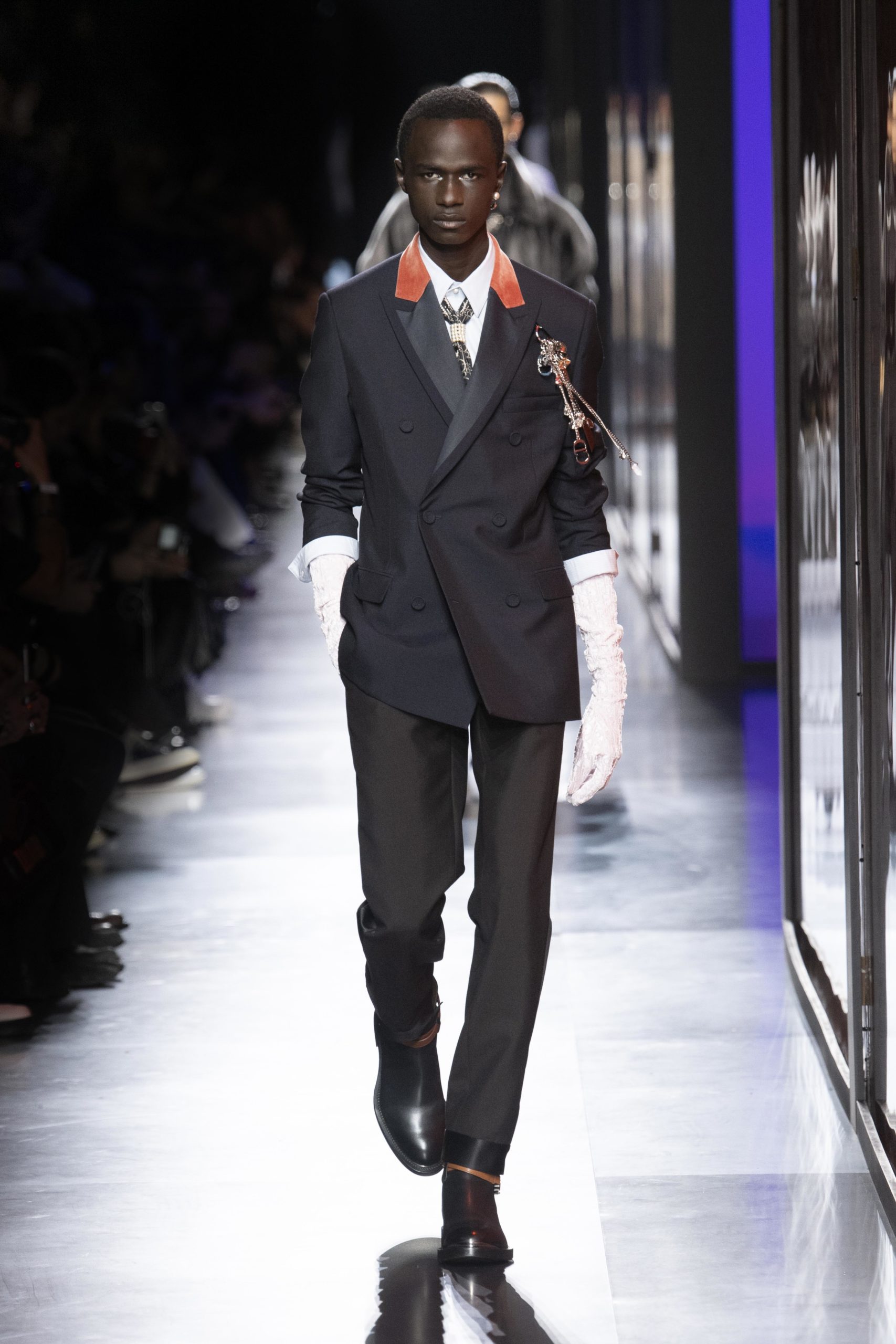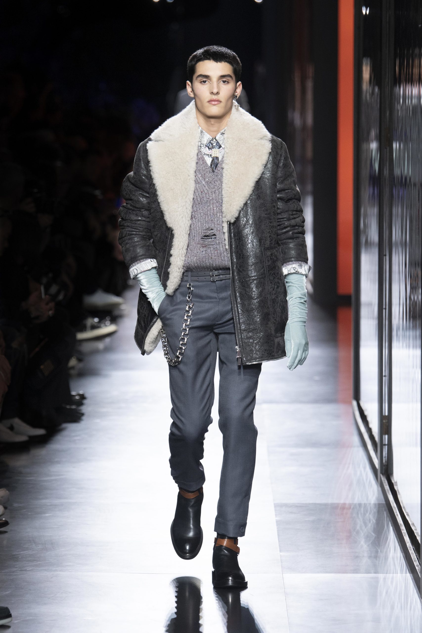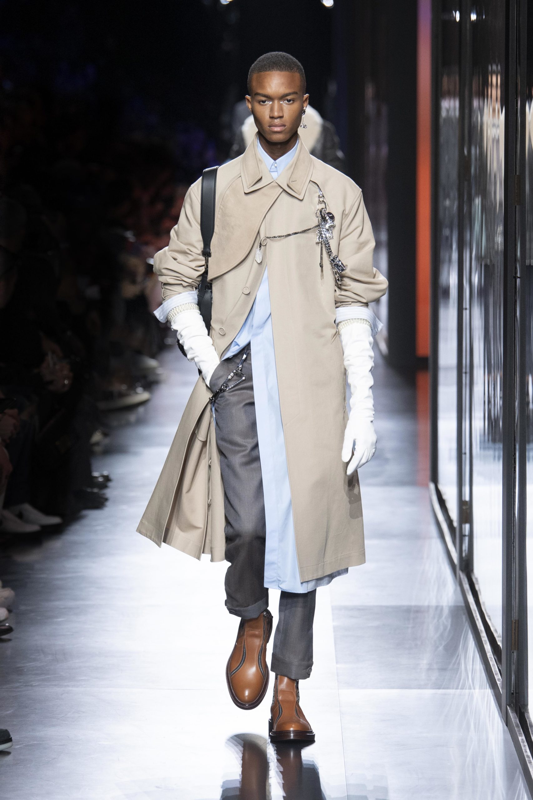 - Model wears an outfit , as part of the men s wear fall winter 2020 2021, men fashion week, Paris, France, from the house of Dior