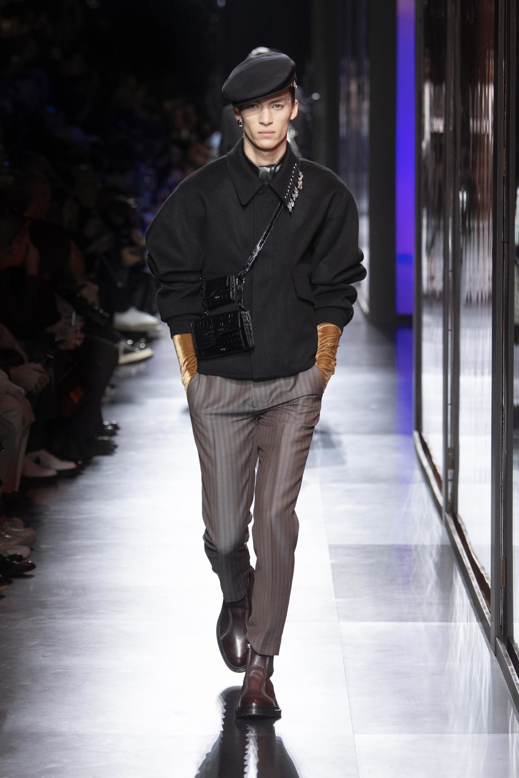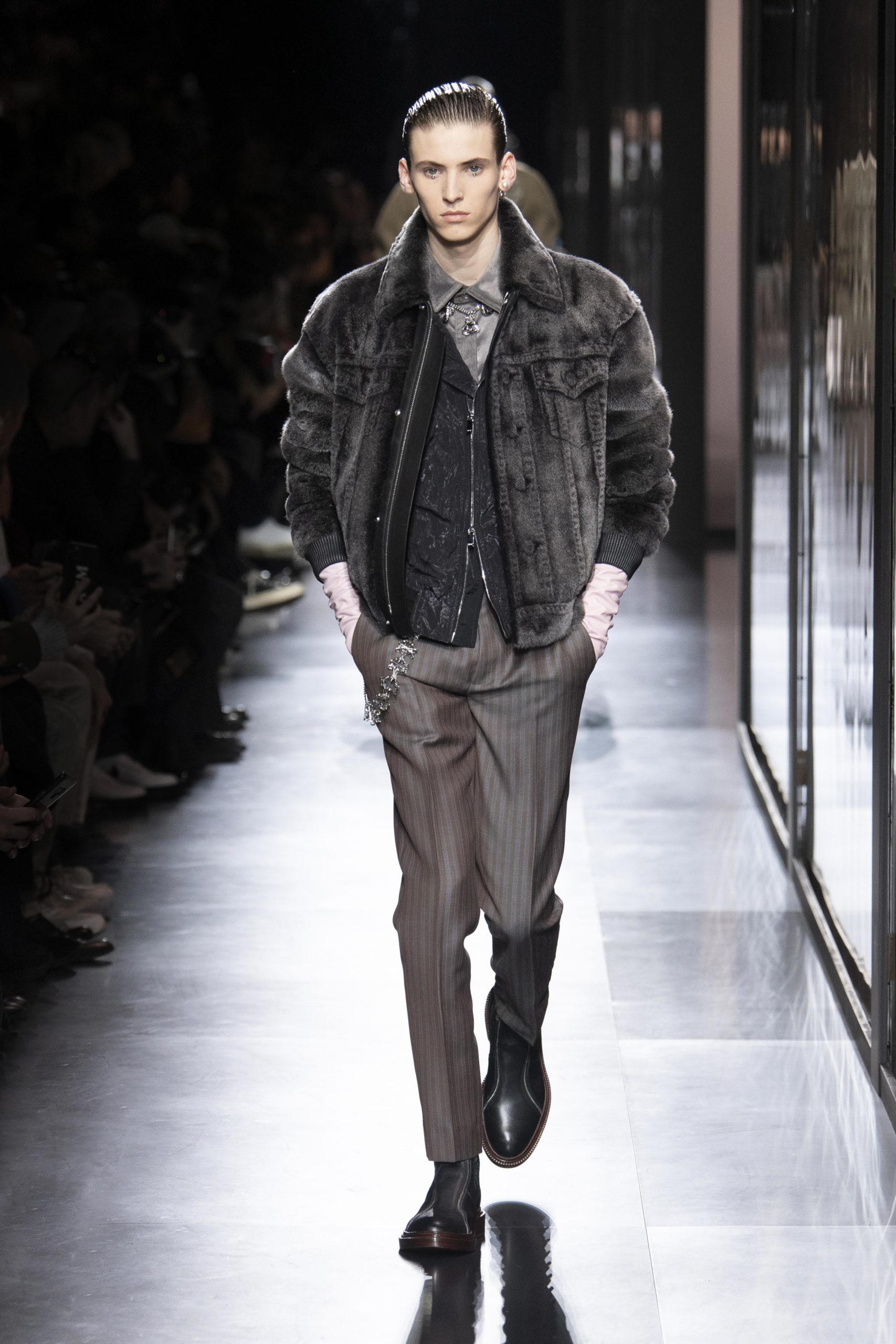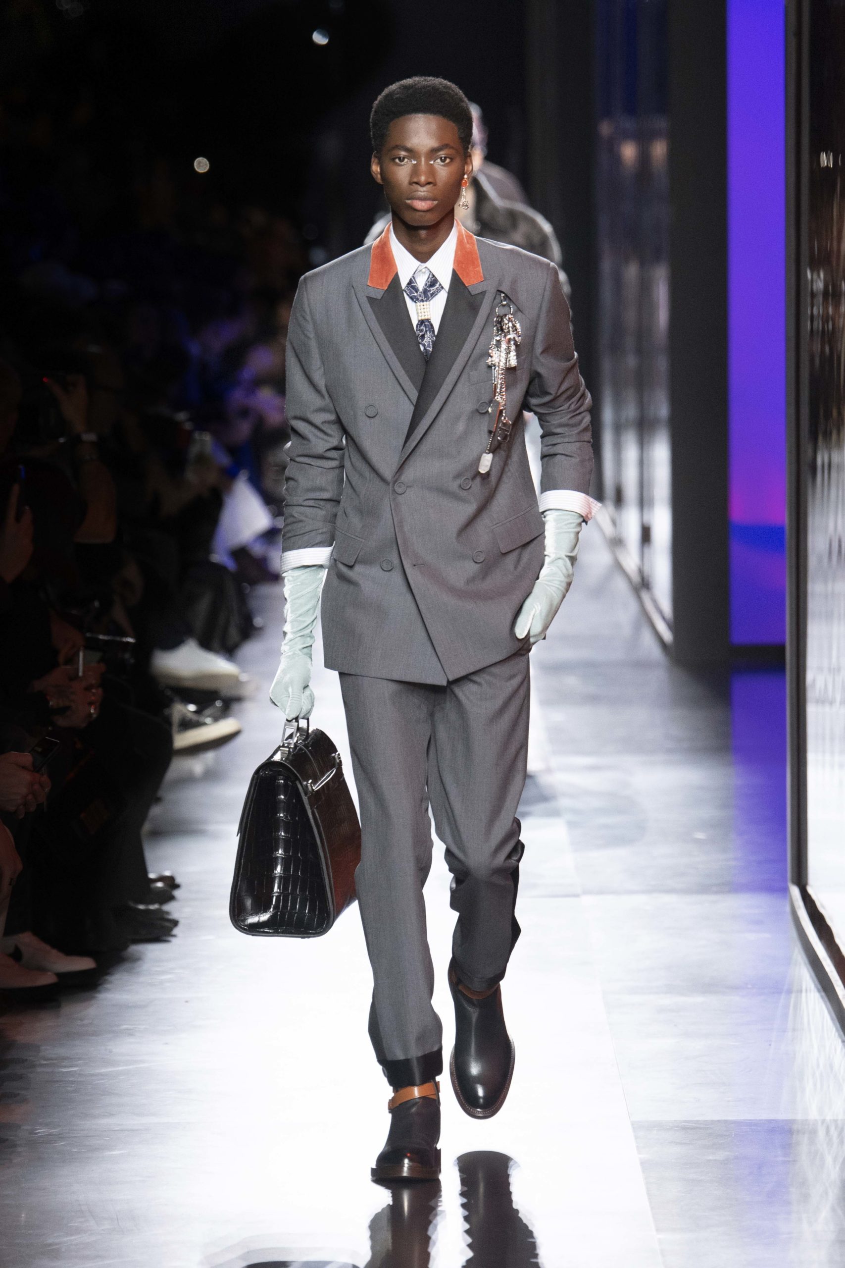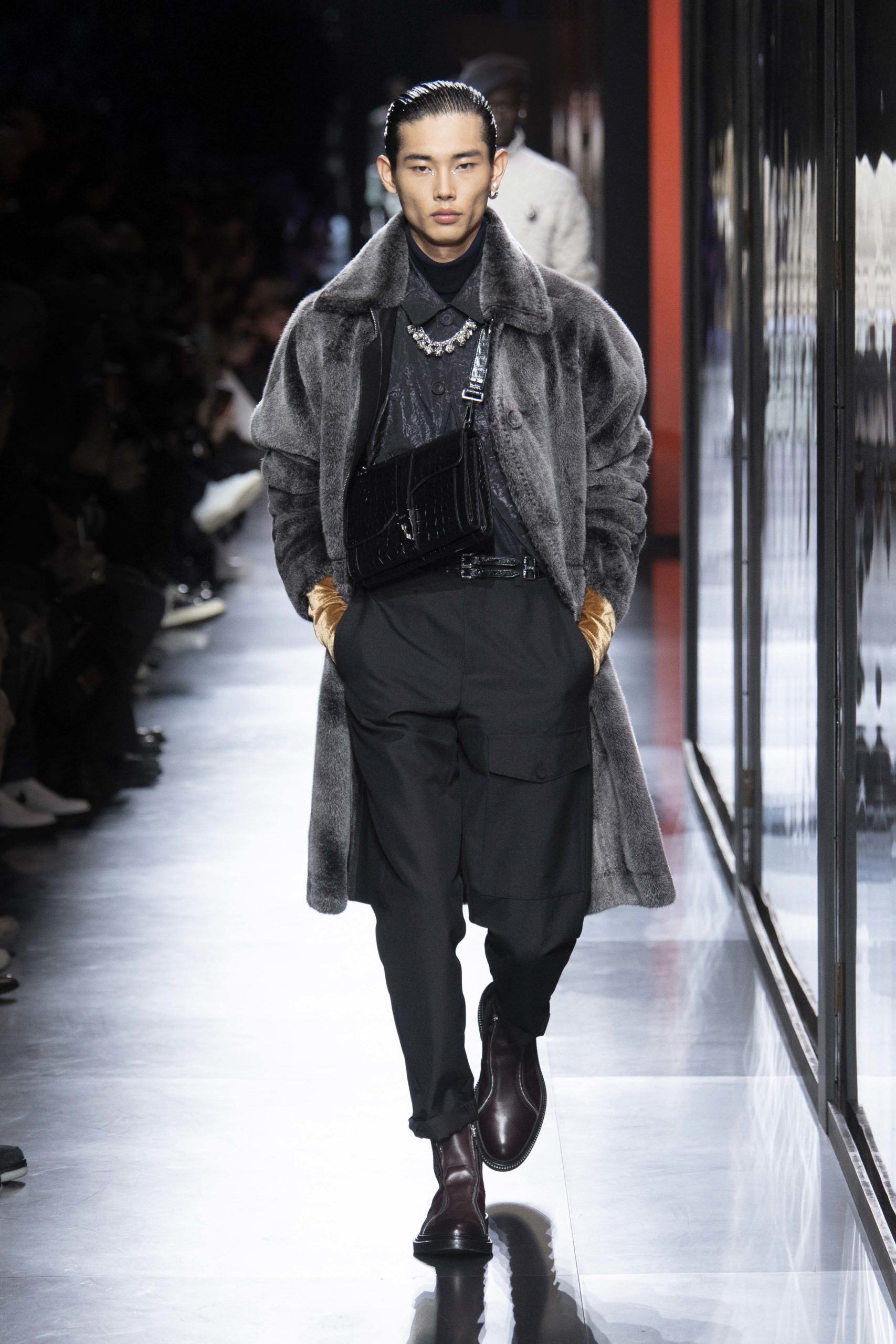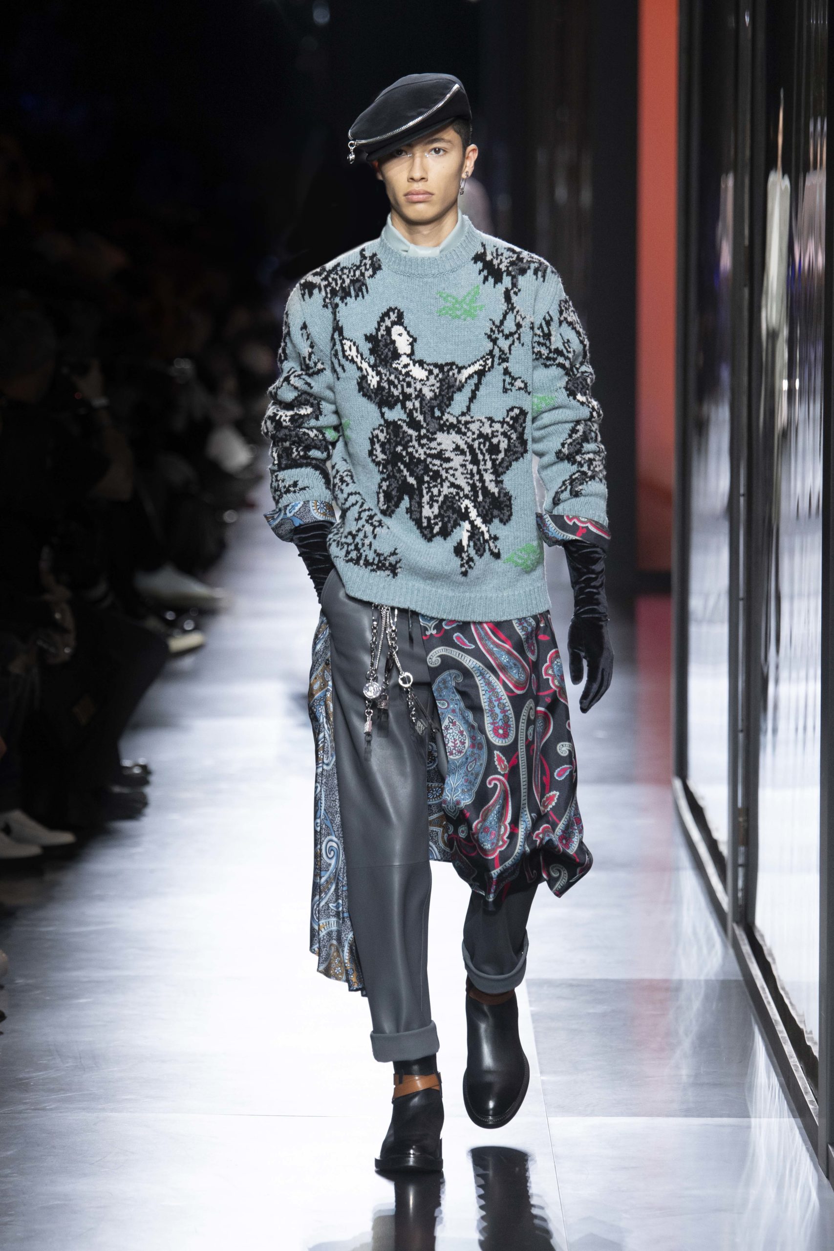 - Model wears an outfit , as part of the men s wear fall winter 2020 2021, men fashion week, Paris, France, from the house of Dior