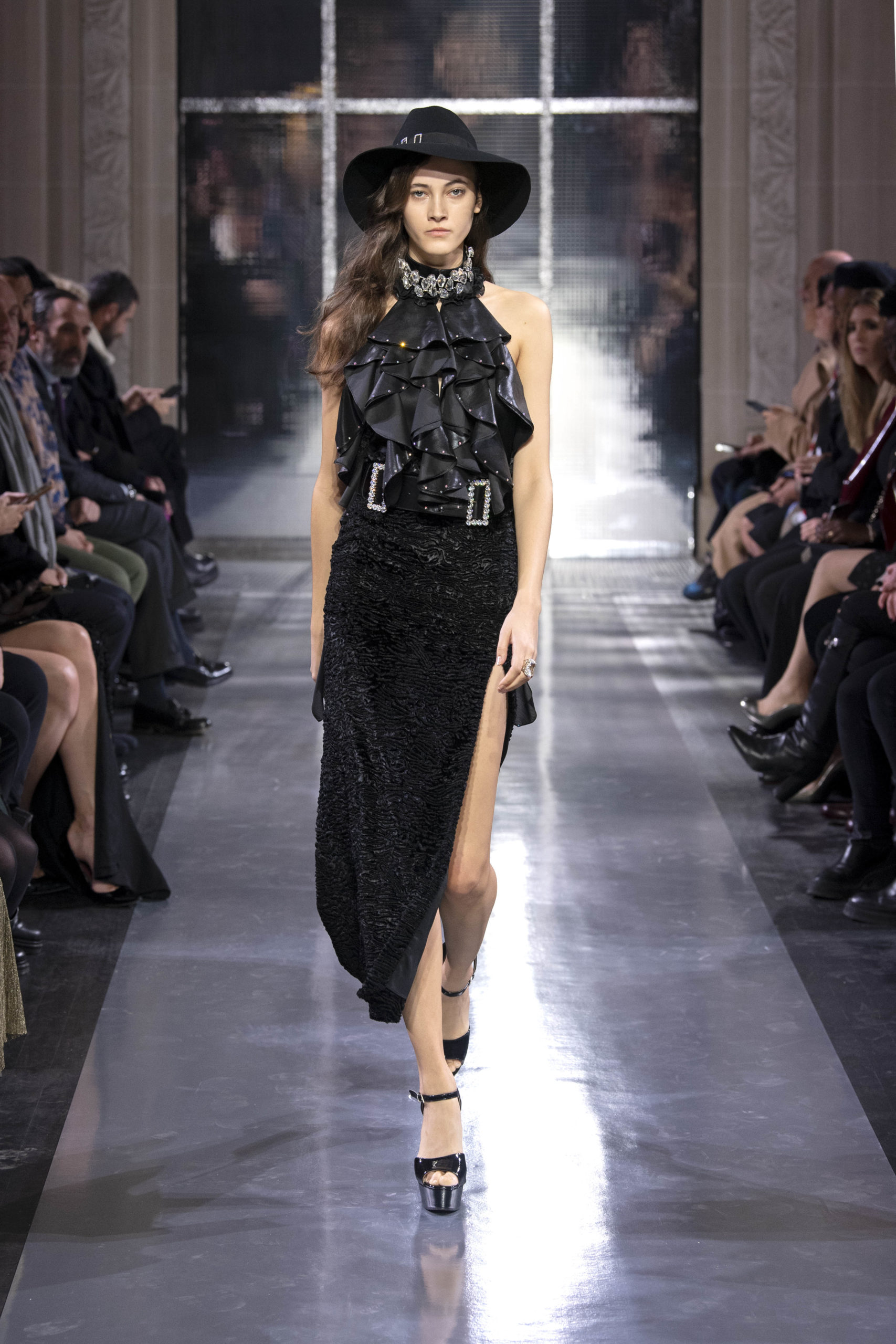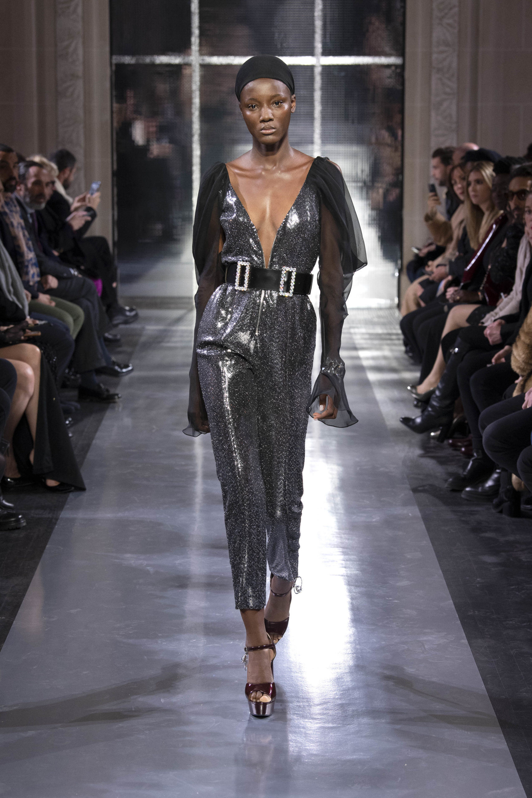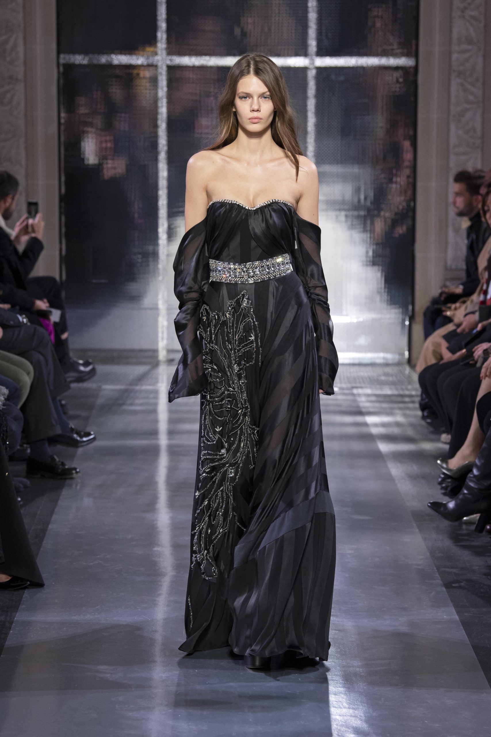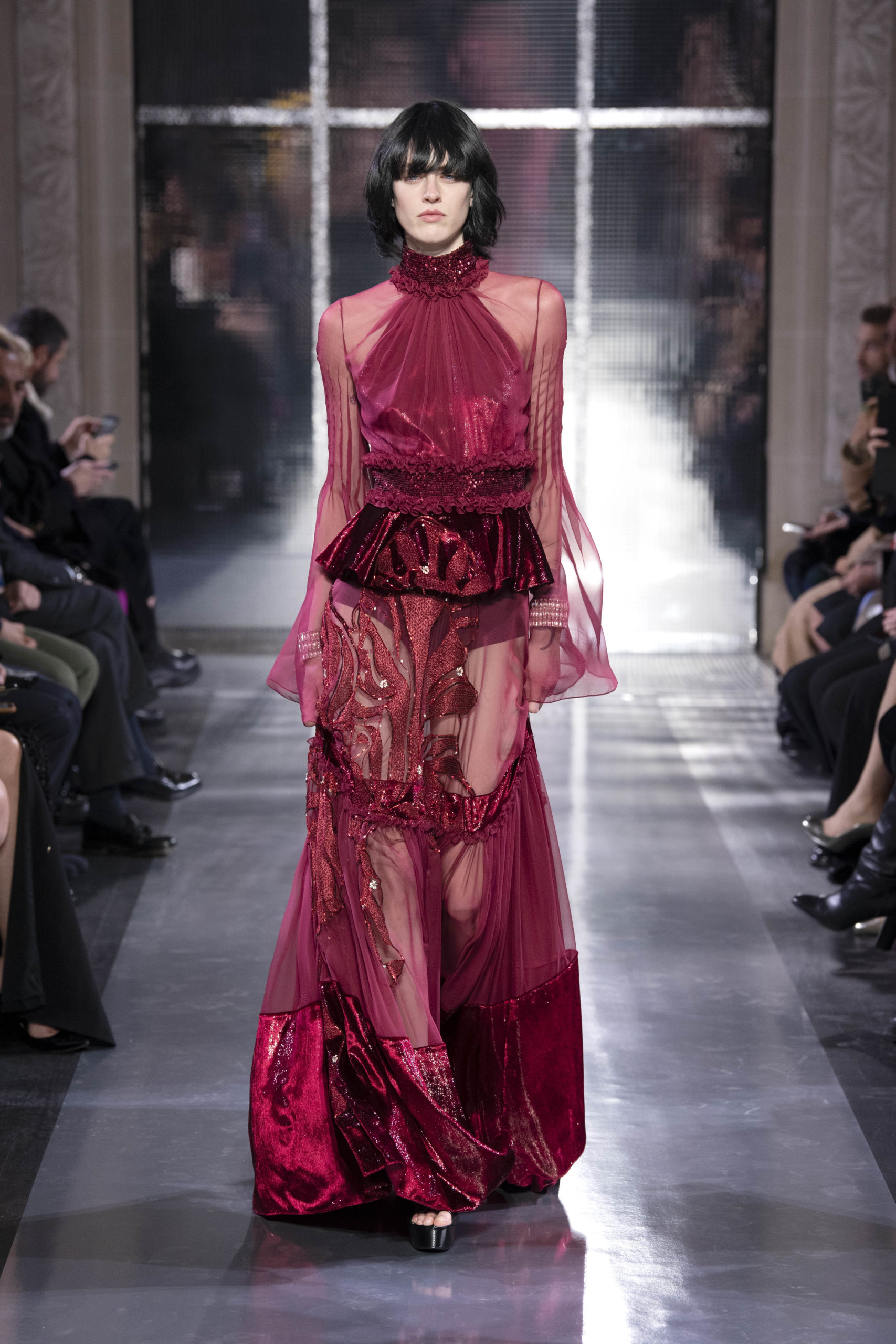 - Model wears an outfit , as part of the haute couture 2020, fashion week, Paris, France, from the house of Azzaro Couture