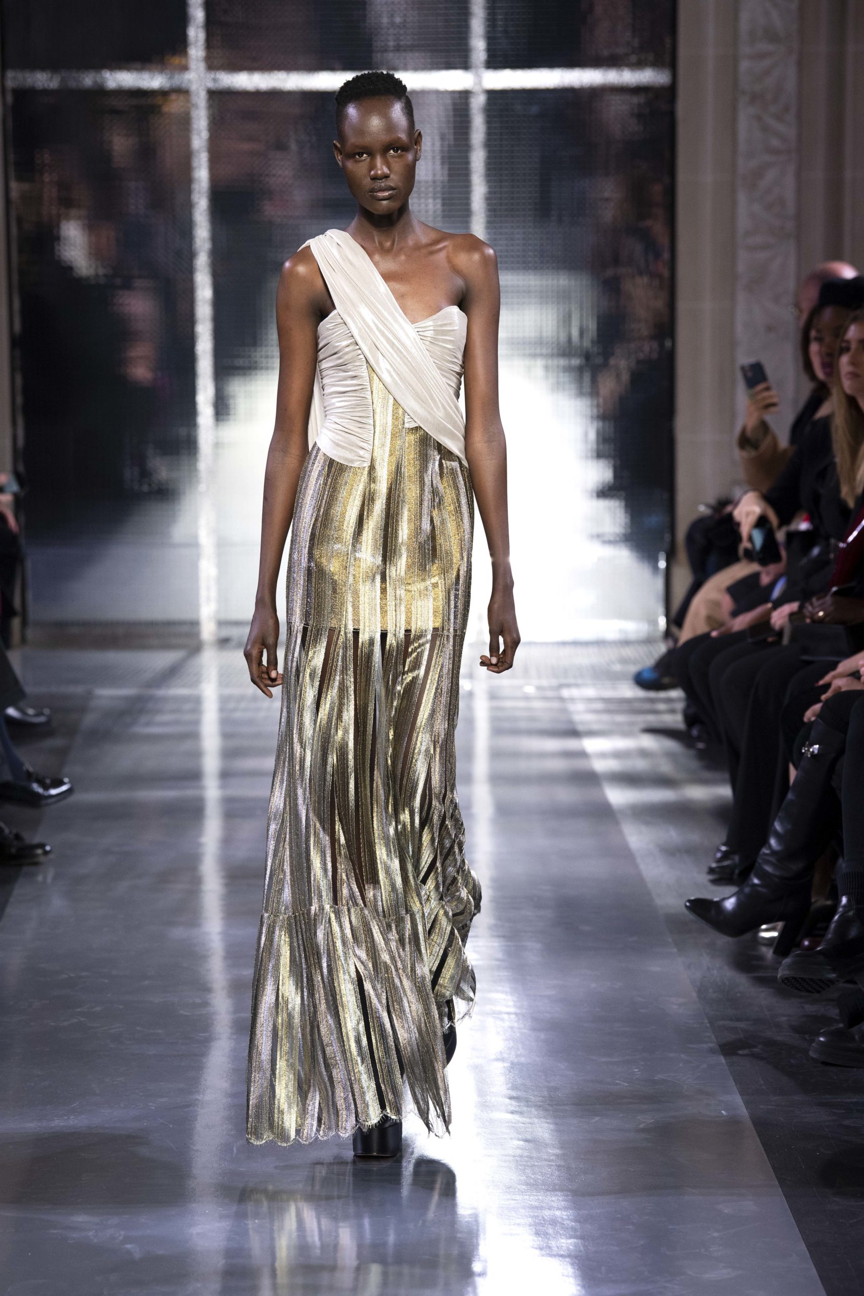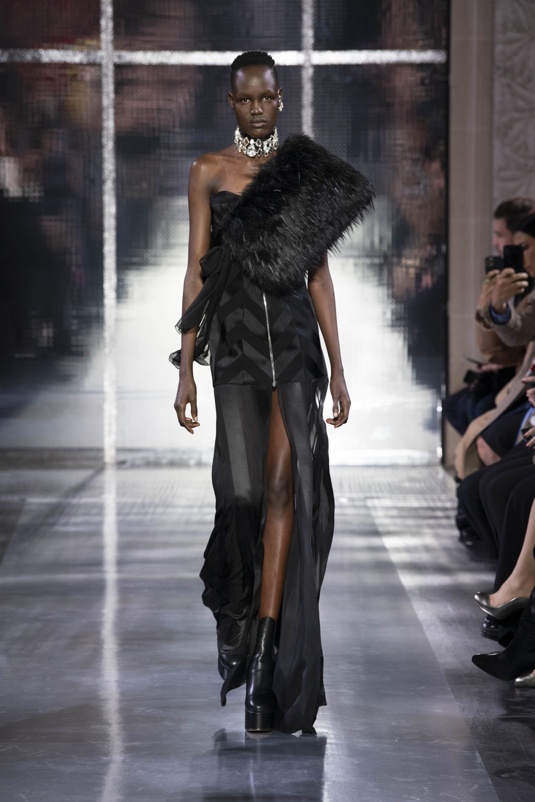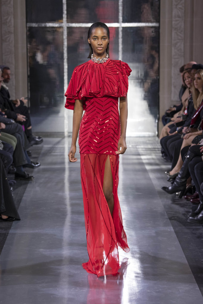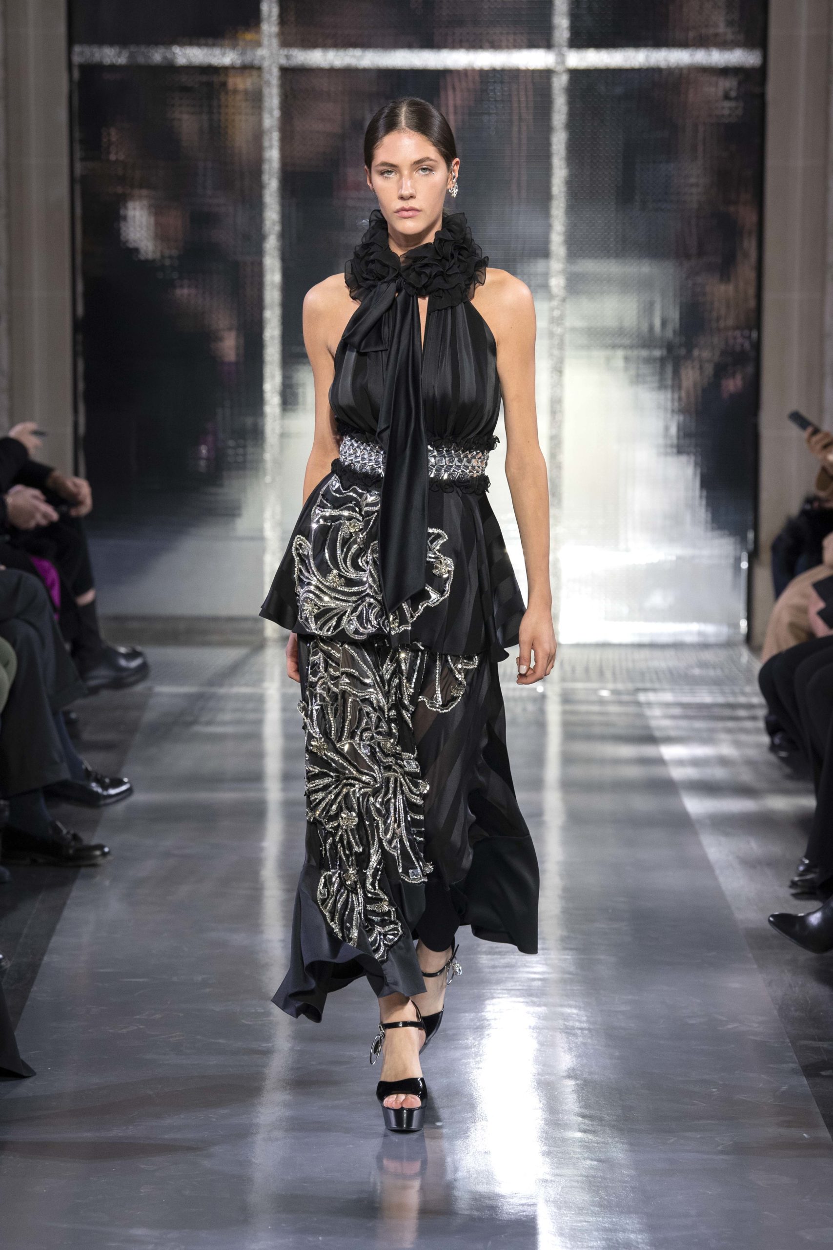 - Model wears an outfit , as part of the haute couture 2020, fashion week, Paris, France, from the house of Azzaro Couture