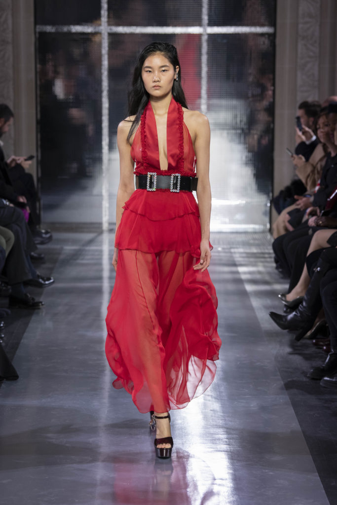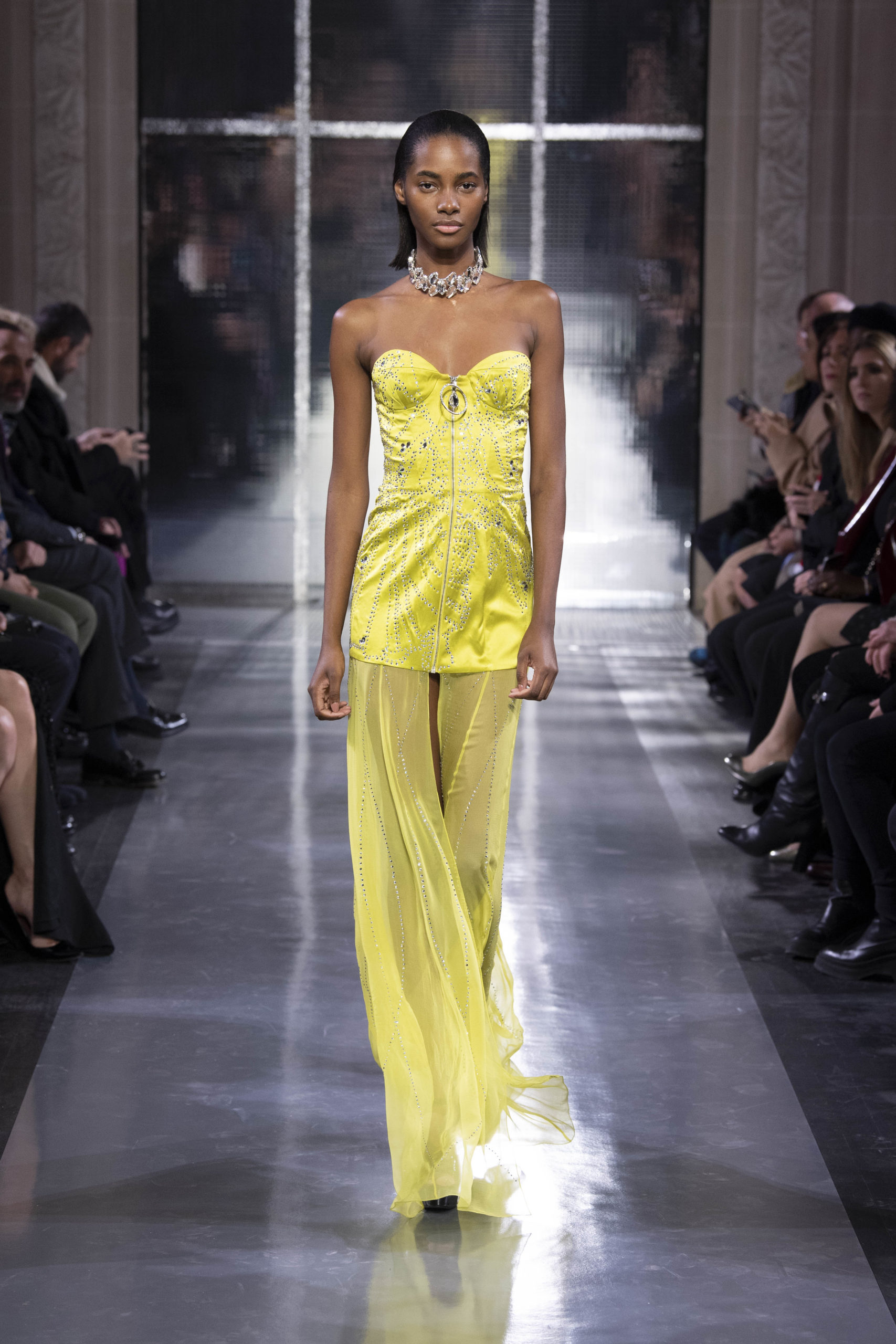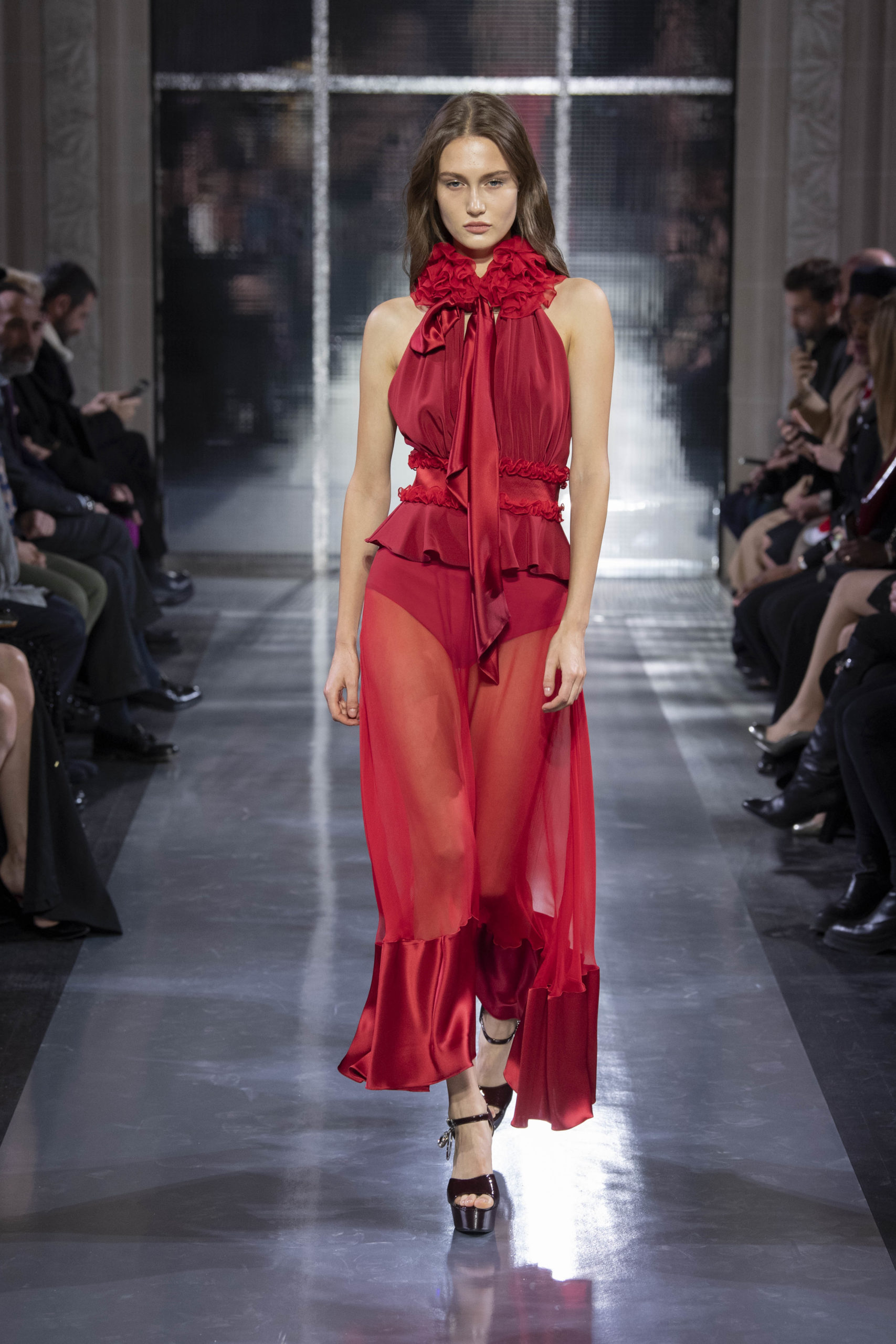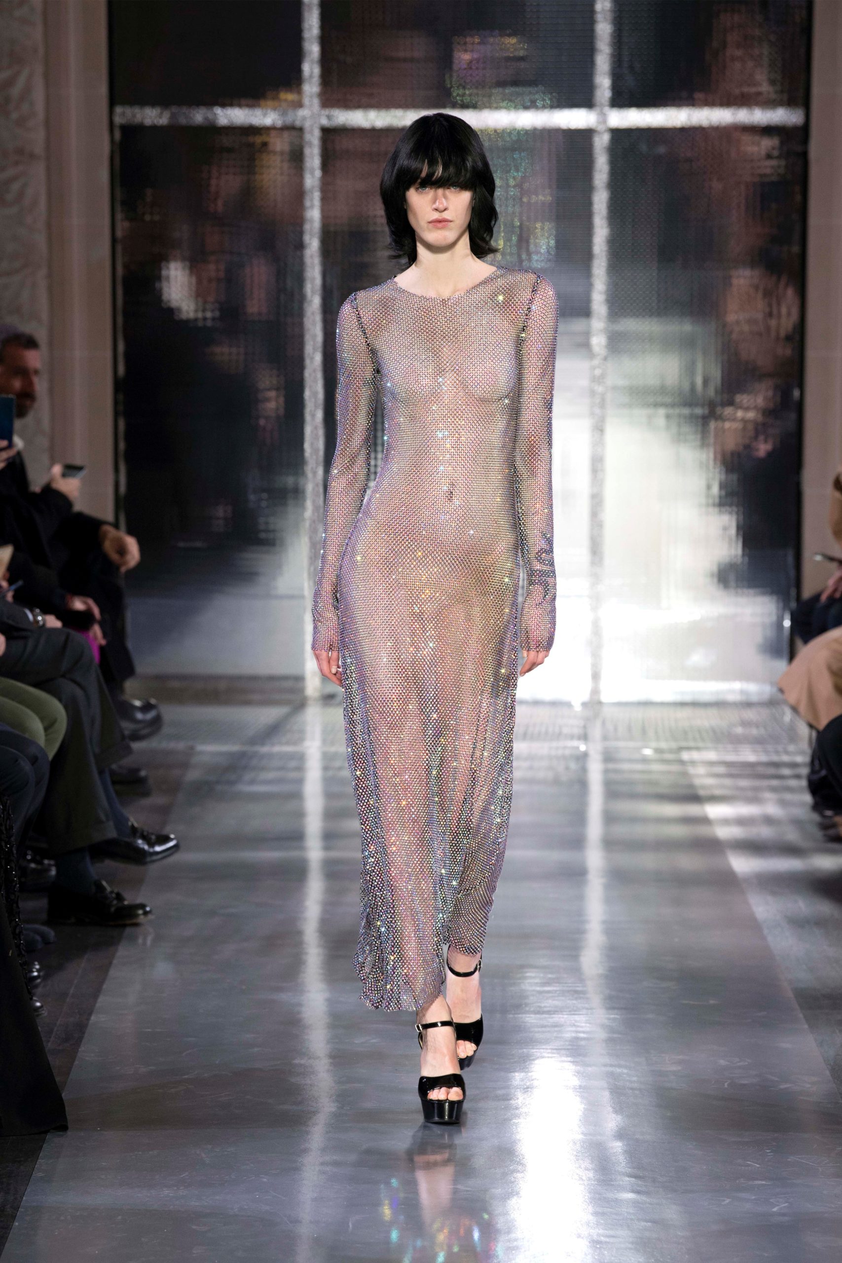- Model wears an outfit , as part of the haute couture 2020, fashion week, Paris, France, from the house of Azzaro Couture
