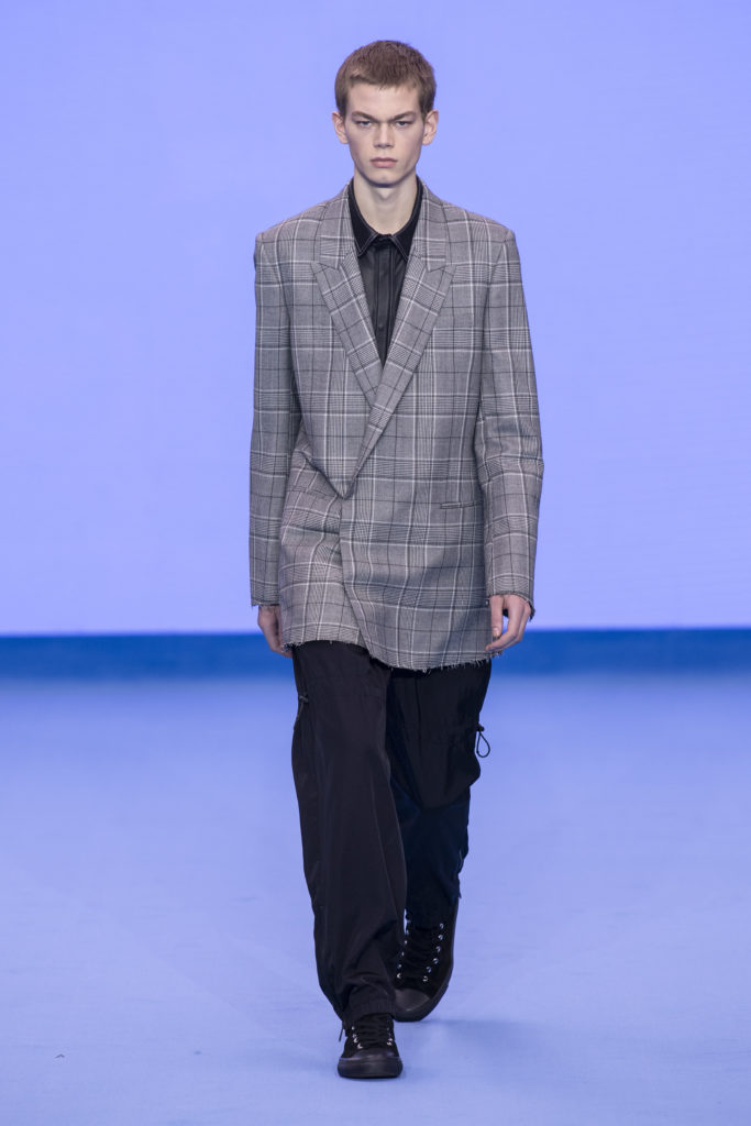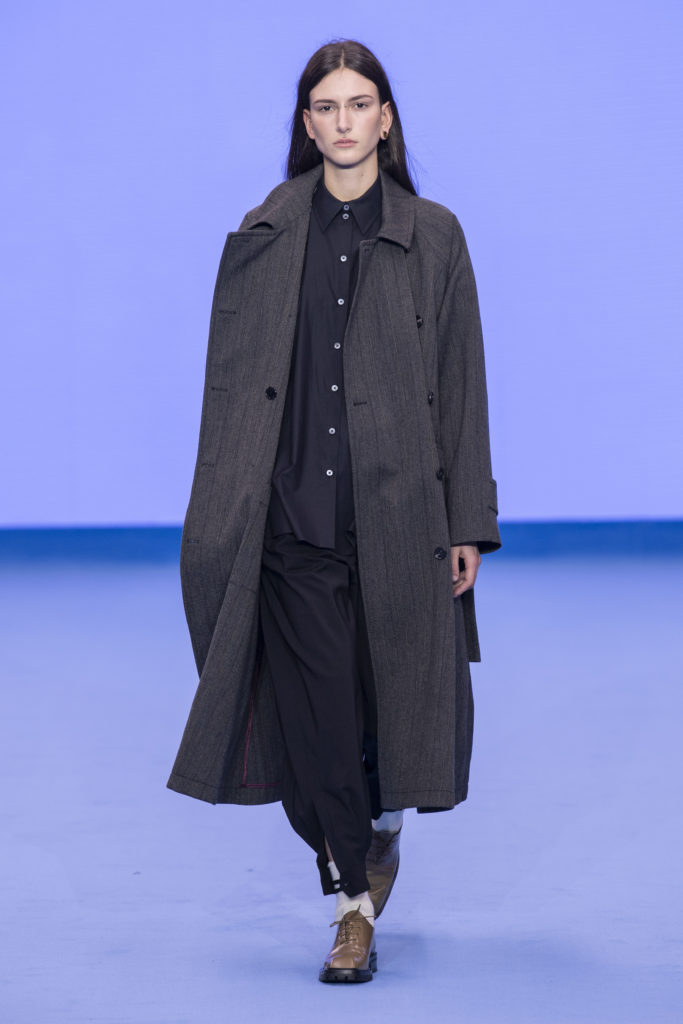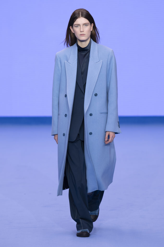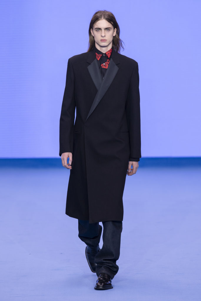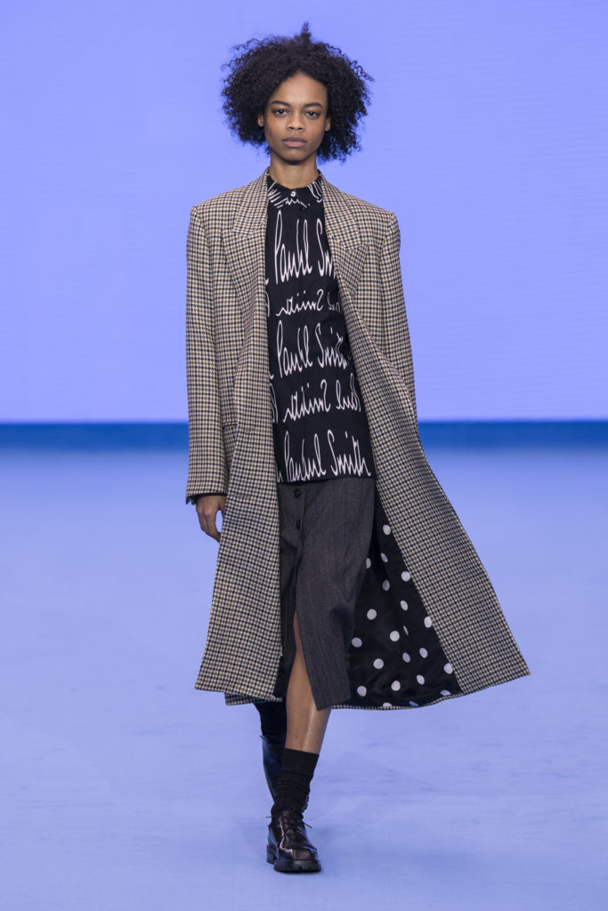 Having established a reputation for reinventing classics across his half century as a designer, Paul Smith refreshes wardrobe archetypes for Autumn/Winter ’20, his fiftieth anniversary collection. Prints and shapes from Paul’s own past are revisited, reinterpreted and celebrated once more. Classic double-breasted Melton overcoats are finished with contrast top-stitching and raw edges whilst clean, lean tailoring nods to the Seventies with added length and high-breaks but has a modern, minimal feel with fly fronts.