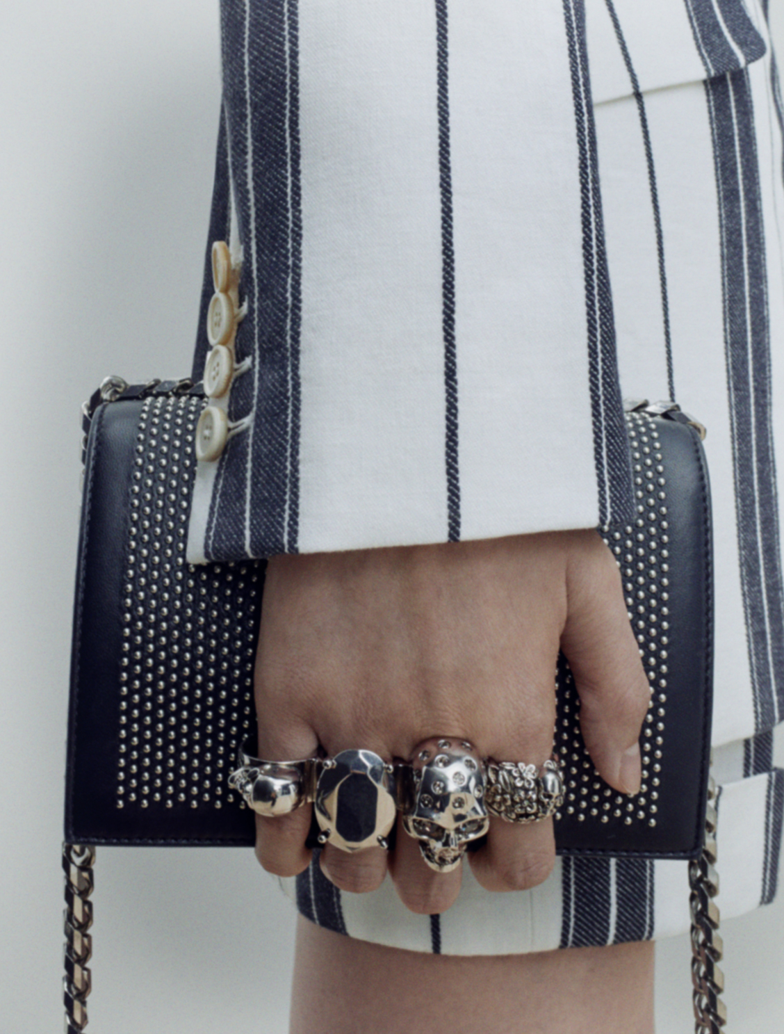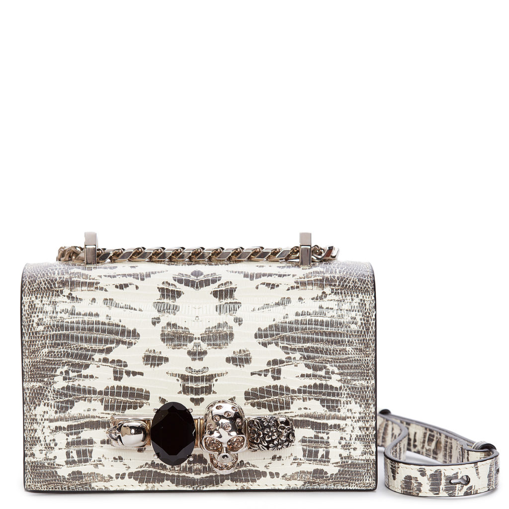 Les deux styles clés sont le sac Mini Jewelled Satchel et le sac Mini Skull Lock Bag.