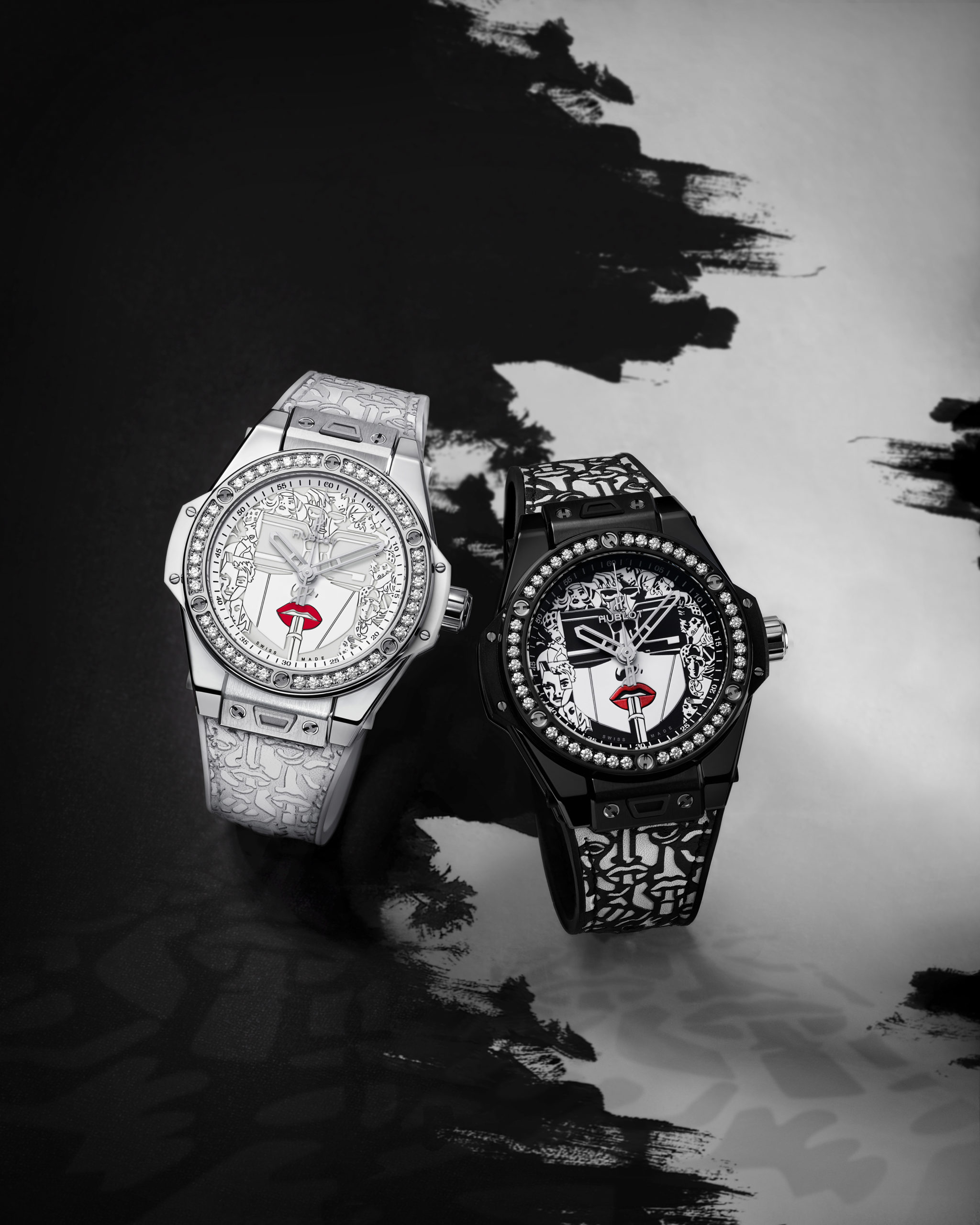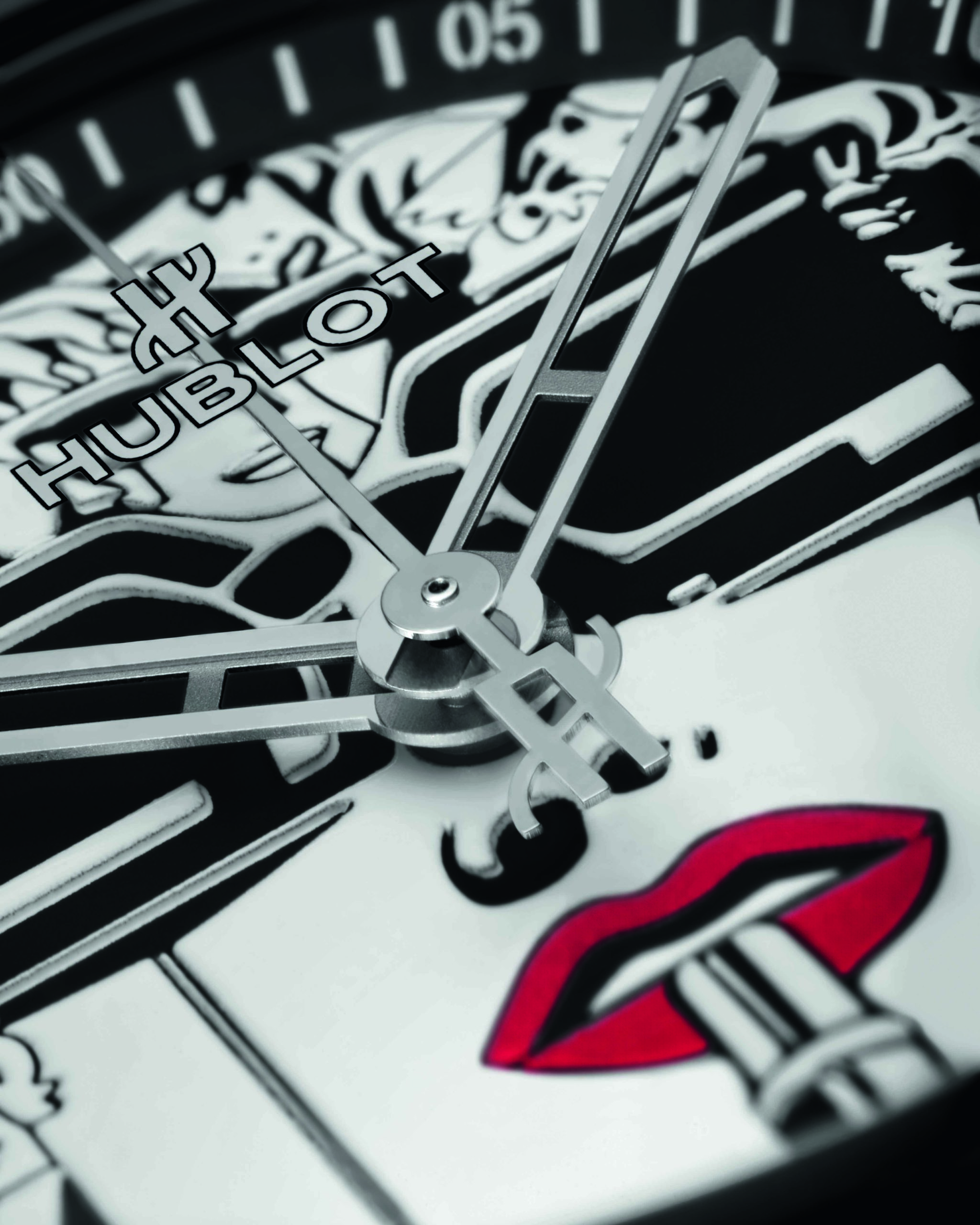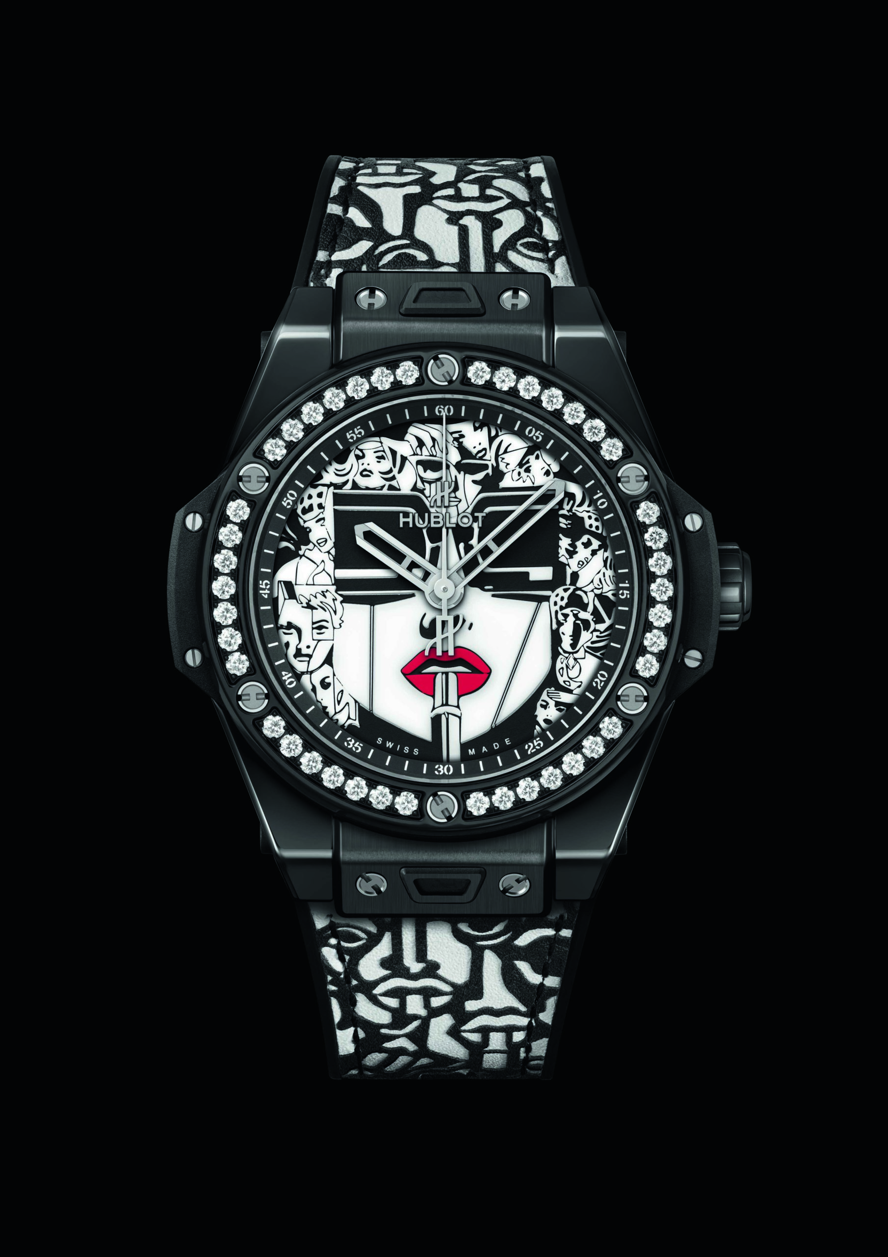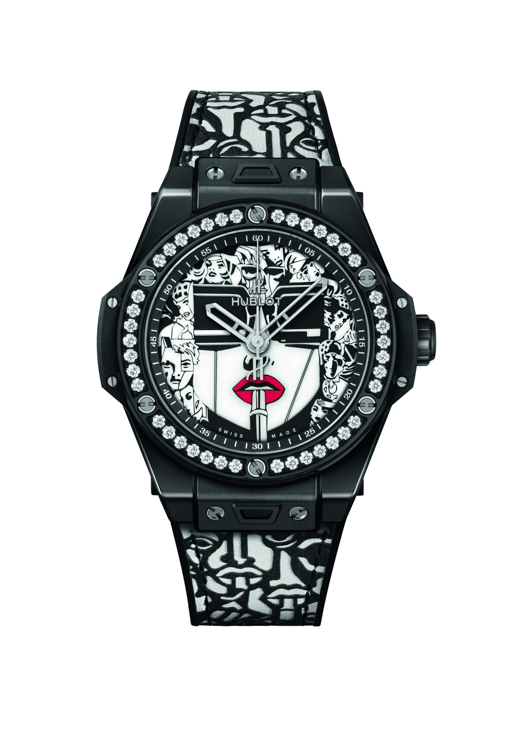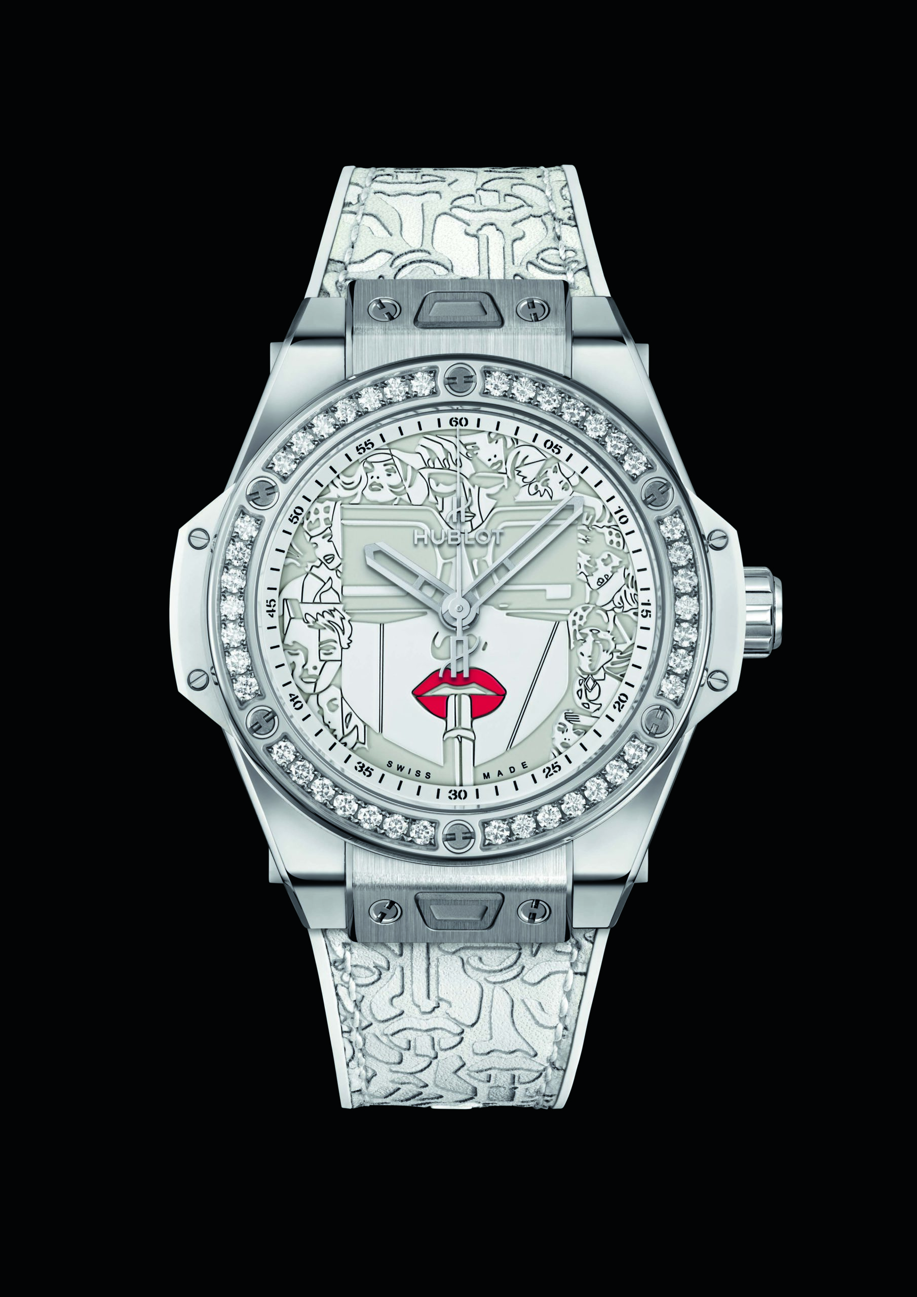 Pour sa deuxième collaboration artistique avec le maître du Storytelling Art, Hublot réinvite Lipstick, l’oeuvre la plus emblématique de Marc Ferrero, sur le cadran de sa Big Bang One Click 39mm.