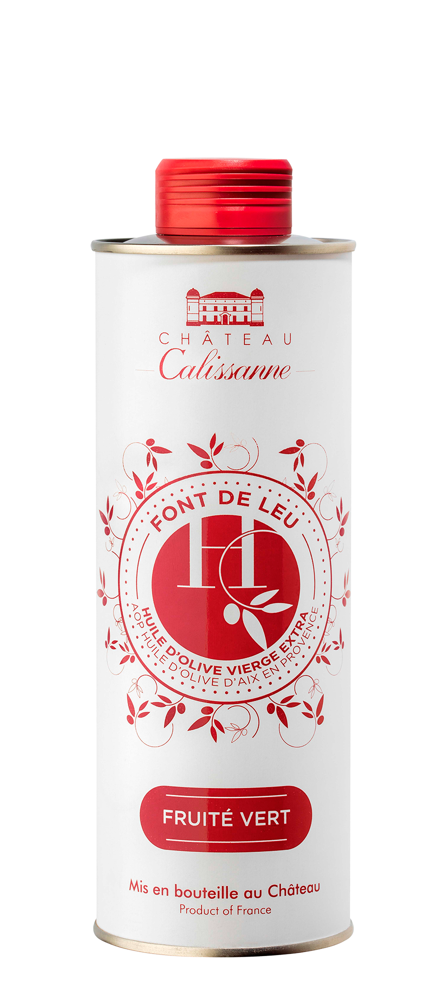 Font de Leu est un assemblage de 2 variétés d’olives vertes : Salonenque (60%) et Anglandau (40%), issues de l’oliveraie plantée sur les hauteurs et pentes sud-ouest du domaine.