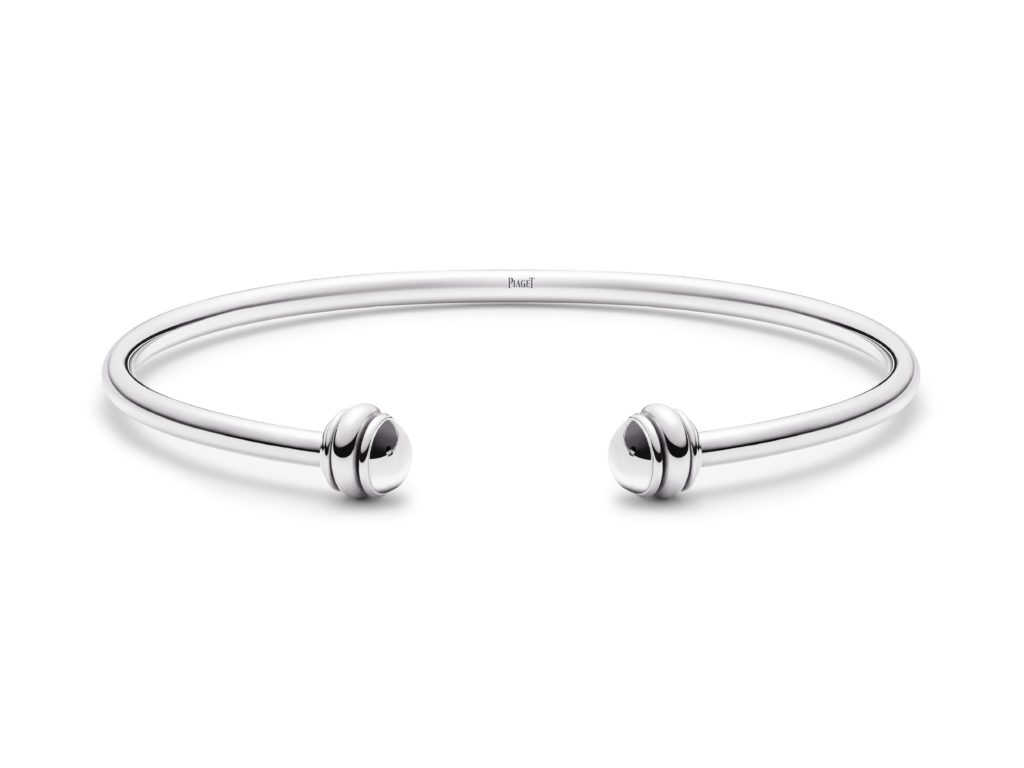 A delicate white gold bangle bracelet brings the daily ritual of the Possession ring to the wrist. Putting in motion the wheels of destiny, two turning bands rotate freely at either end of this elegant companion. A stylish precious white gold bracelet designed to be worn on its own or in combination with other gold colors from the Piaget jewelry collection, Possession is symbolic of the choices every woman makes for herself as she makes the world hers.