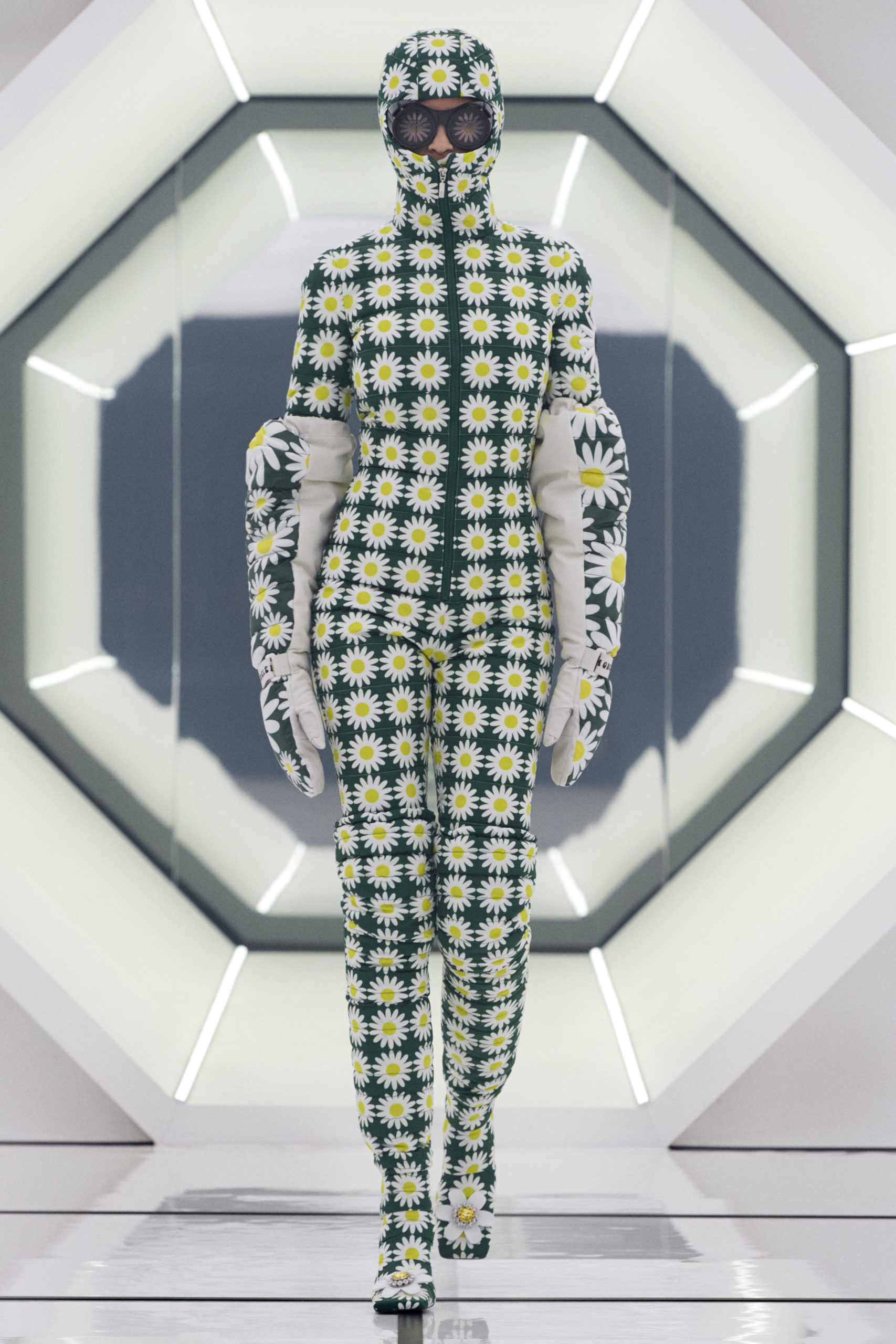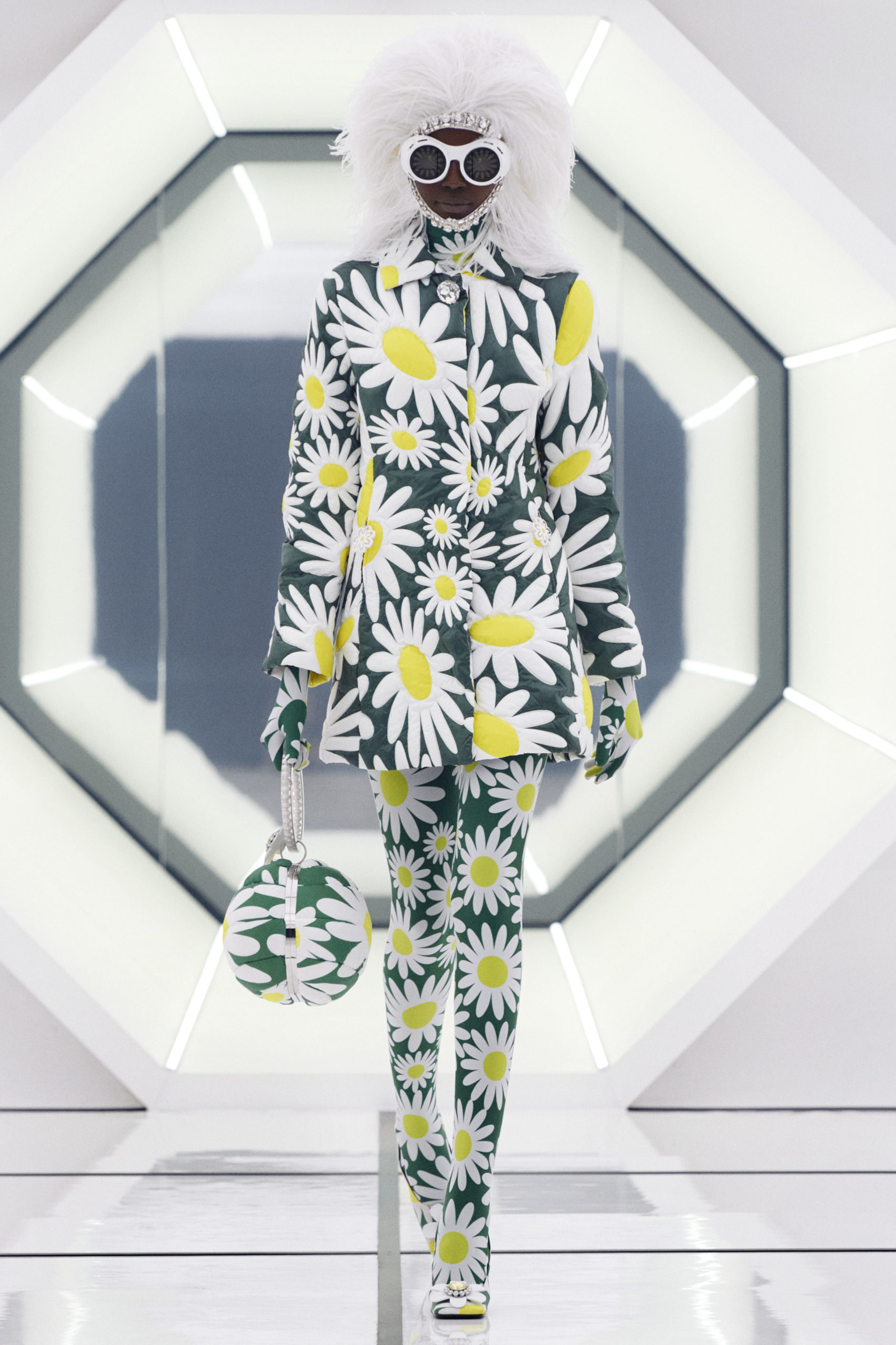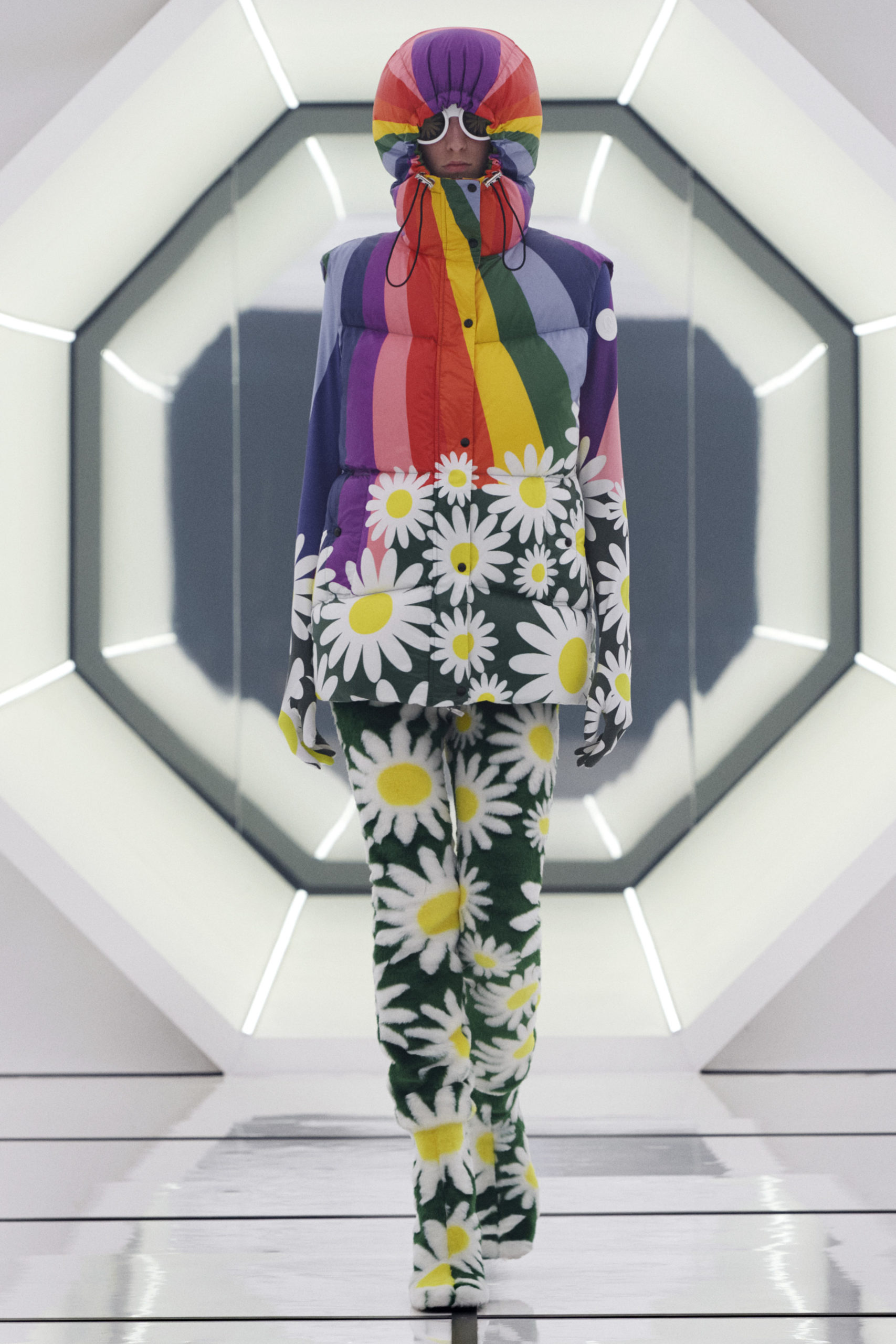 Comme toujours chez Richard Quinn les imprimés sont essentiels ; Motifs floraux, zébrés, arc-en-ciel et carreaux… Le créateur présente douze motifs uniques et exclusifs pour cette collection Moncler Genius. On les retrouve sur les robes courtes, les manteaux, les coupe-vent et les leggings, s’associent pour un effet maximal.