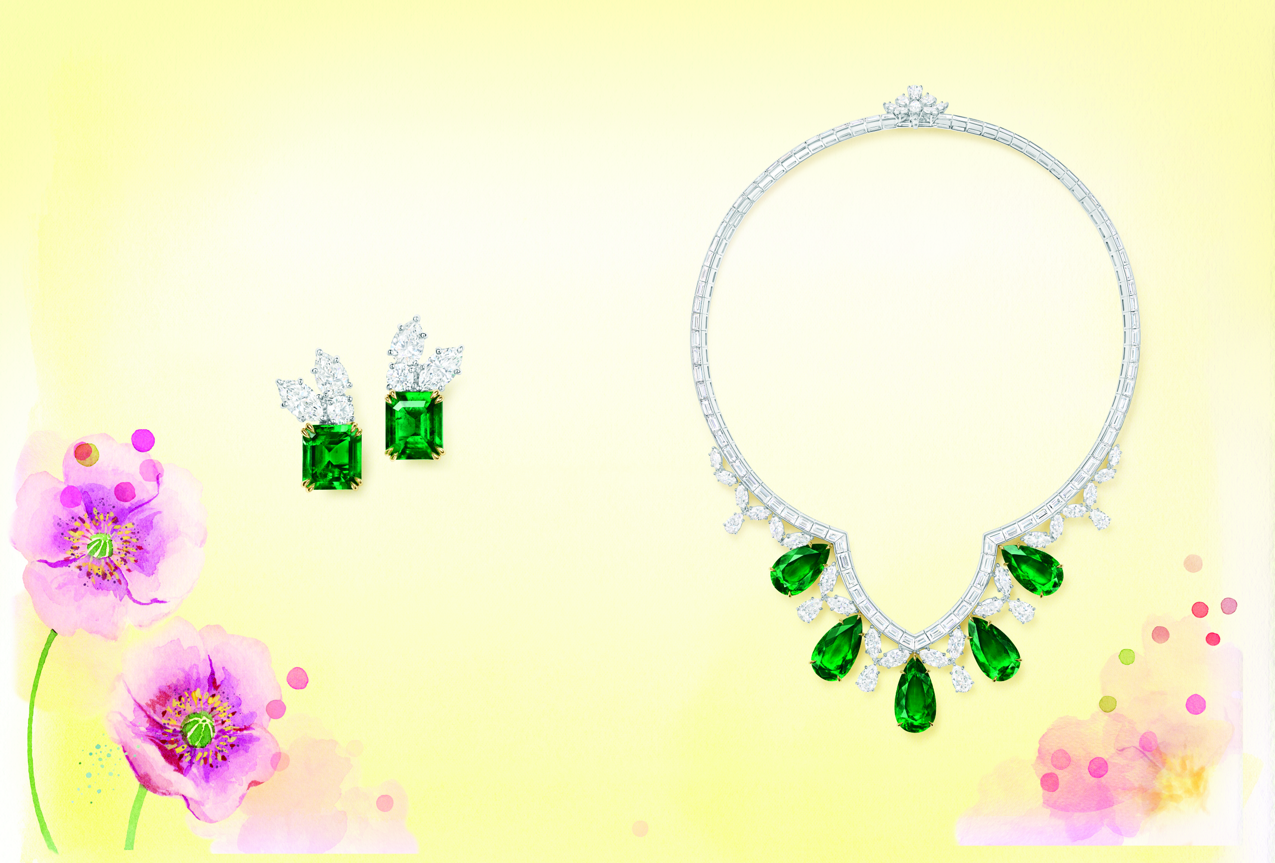 Saison propice aux nouveaux départs et au renouveau, le printemps Harry Winston éveille nos sens grâce à de nouvelles créations de haute joaillerie d’exception qui mettent en valeur le vert foncé des émeraudes et le rose vif des saphirs.
