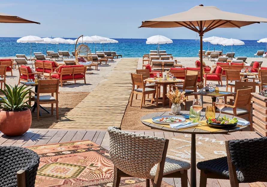 Entièrement rénovée, elle revendique une atmosphère naturelle et chaleureuse, se parant désormais de bois, de plumes, de fleurs et de raphia pour conjuguer harmonieusement élégance méditerranéenne et notes bohèmes. Elégante et apaisante, elle déploie sa personnalité et son univers unique sous le soleil comme à la lueur des étoiles, pour donner, à tous, la possibilité de s’abandonner et de se faire plaisir.
