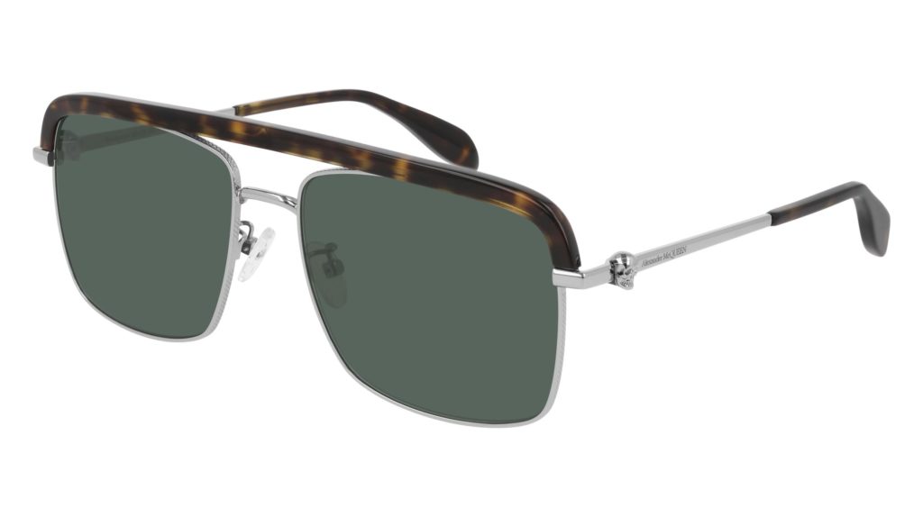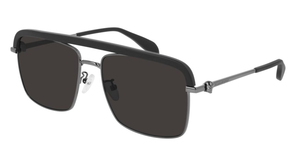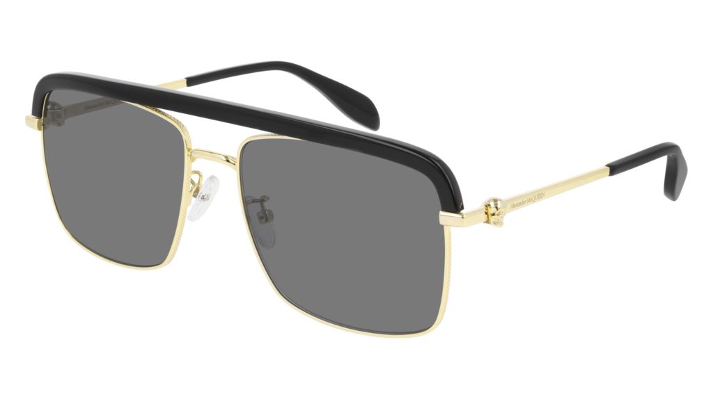 Ces lunettes de soleil en métal léger sont équipées de verres de couleur unie. Ils présentent des branches métalliques finies avec des motifs de crâne et la signature Alexander McQueen gravée ton sur ton. Les verres et les barres d’acétate sont disponibles dans une variété de couleurs et de finitions.