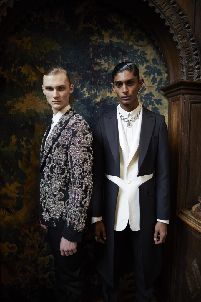 Les breloques comportent des coléoptères et des araignées piégés dans de la résine et de grands pendentifs en cristal de quartz à facettes trempés dans des pigments de couleur et sertis dans de délicates tasses en métal bordées de fleurs ornées de bijoux. Les bagues en argent antique sont serties d’insectes piégés dans de la résine ou ont des détails floraux en haut relief et des bords à facettes finis avec des microcristaux et des boules de métal écrasées.