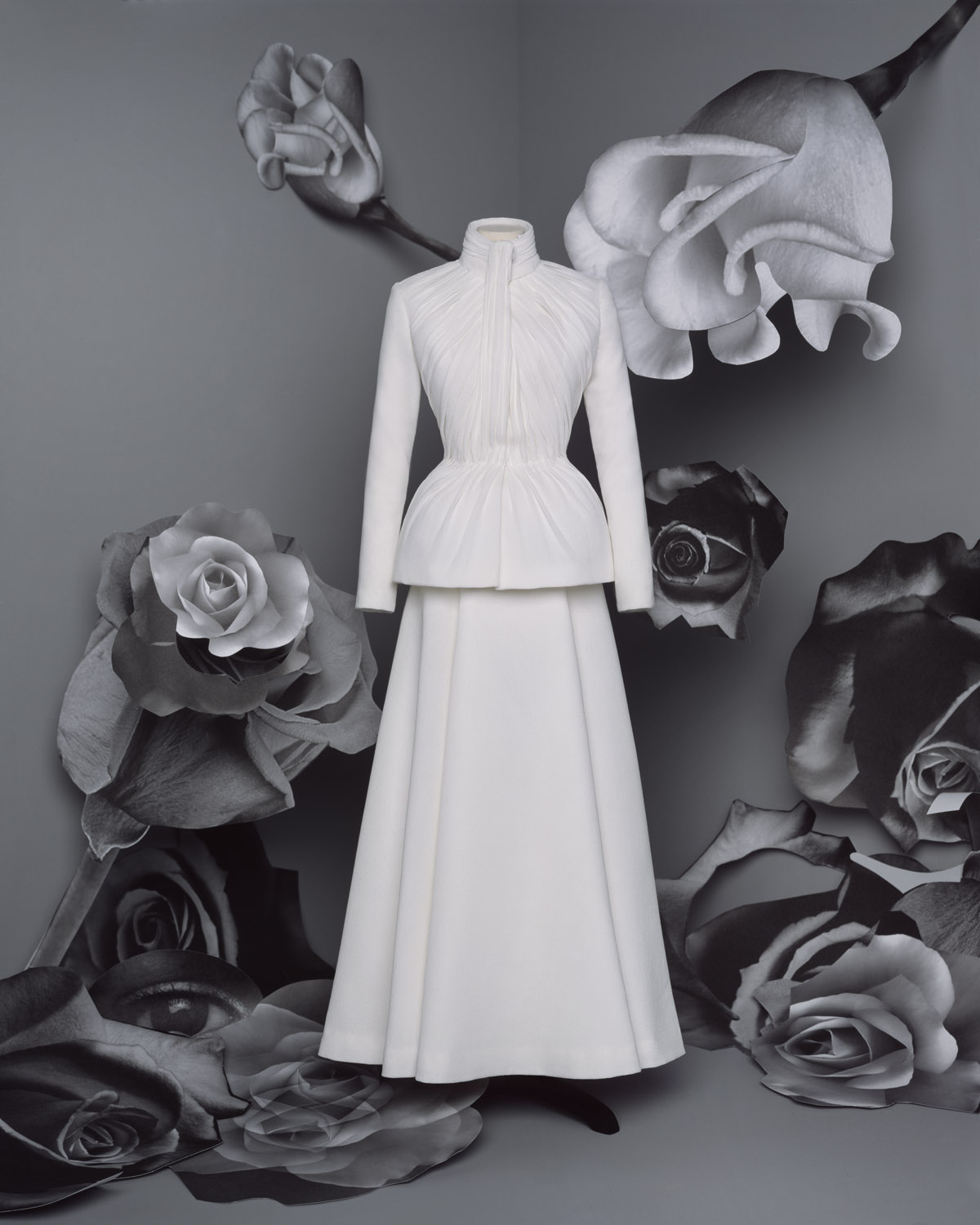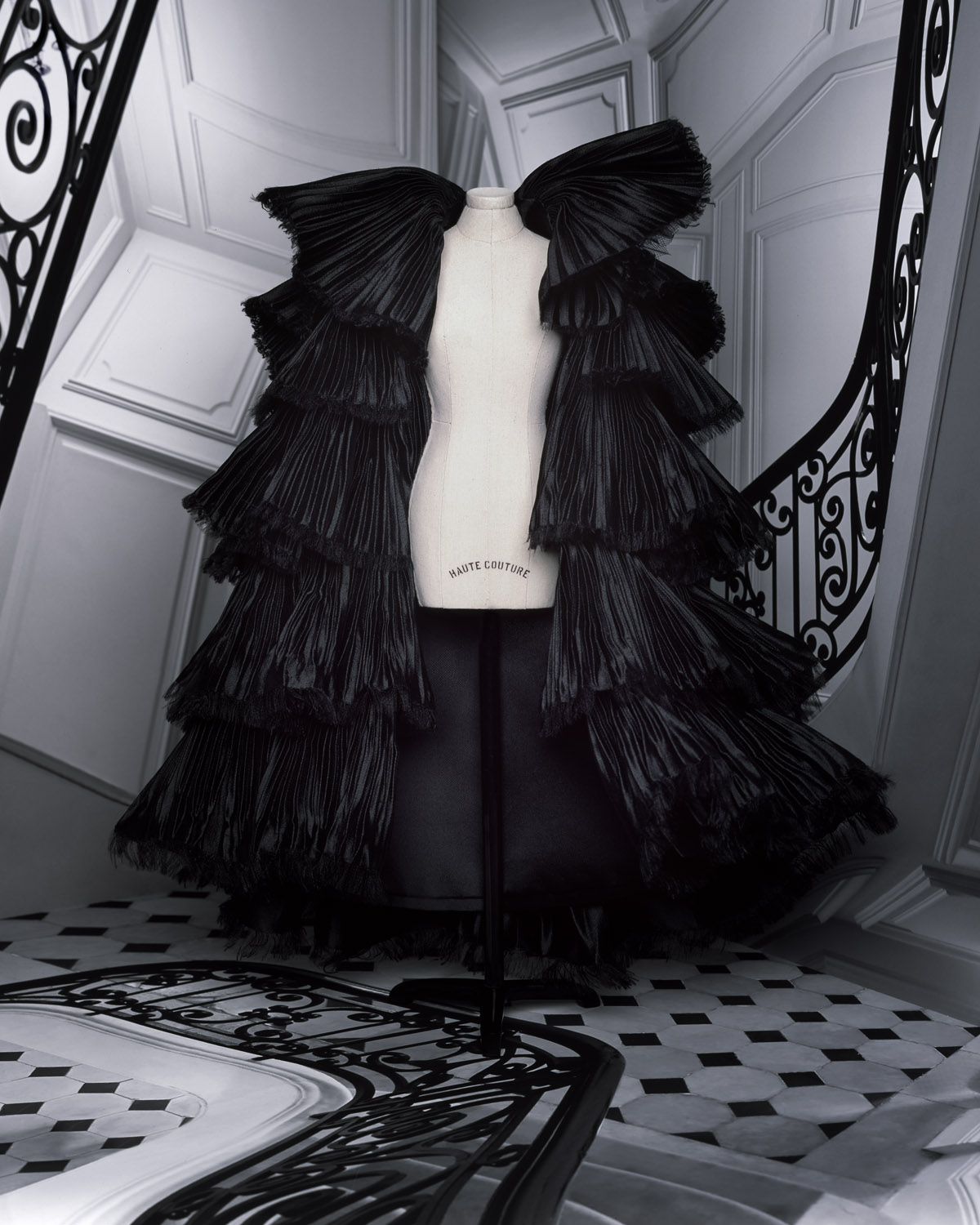 « Les images surréalistes parviennent à rendre visible ce qui est en soi invisible. Je m’intéresse au mystère et à la magie, qui sont aussi une façon d’exorciser l’incertitude quant au futur », confie Maria Grazia Chiuri au sujet de sa collection haute couture automne-hiver 2020-2021.En cette période particulière, la Directrice Artistique des collections femme de Dior a souhaité porter son regard sur le travail d’artistes telles que Lee Miller, Dora Maar et Jacqueline Lamba, qui transcendent le rôle de« muses »auquel leur beauté les avait initialement réduites, pour mettre en scène – dans leur vie et dans leurs œuvres surréalistes – une autre féminité.Cette nouvelle collection est empreinte de cette attitude : connectée, à l’écoute de la nature et de sa transformation. Des pièces arborent un dégradé de rouge spectaculaire, telle une barrière de corail ondoyant dans les lueurs de l’océan. Les couleurs des tableaux de Leonora Carrington et Dorothea Tanning habitent les créations de leurs nuances lumineuses et de leur imaginaire.Le corps féminin des surréalistes convoque également la figure réinterprétée du mannequin miniature, emblème poétique au cœur de la couture. L’artiste Cindy Sherman s’est emparée de cet objet presque magique dans l’un de ses premiers projets vidéo, qui oscille entre l’histoire de la mode et la possibilité d’une nouvelle représentation ; ces miniatures permettant aujourd’hui d’inventer un rituel différent.Ainsi dévoilée dans une malle magique incarnant le 30, avenue Montaigne, la collection haute couture entreprend son tour du monde. Telle une évocation de l’odyssée de Monsieur Dior, en écho au Théâtre de la mode, exposition itinérante, entre l’Europe et l’Amérique, des modèles des couturiers français – qui voyageaient tout juste après la guerre.Les Ateliers Dior ont aussi accompli cette exploration. À commencer par la haute couture« de jour »,avec ses tailleurs en tissu masculin dont l’architecture d’exception relève d’un défi virtuose, celui d’une création parfaitement réalisée à l’échelle miniature. Le manteau dévoile des épaisseurs plissées. Les tombés évoquent les statues antiques.Des luminescences subliment les tons gris et jaune doré, offrant un éclat éblouissant.Réalisés entièrement à la main, les plis habillant ces miniatures célèbrent la beauté du geste créatif qu’est l’essence de la couture. Jusqu’à l’ultime surprise : une robe de mariée, comme l’exigeaient les traditions, symbole oublié au fil du temps.Ainsi est-il naturel de raconter les silhouettes haute couture extraordinaires en réinterprétant le corps féminin par ce prisme singulier qu’est la poupée de mode.