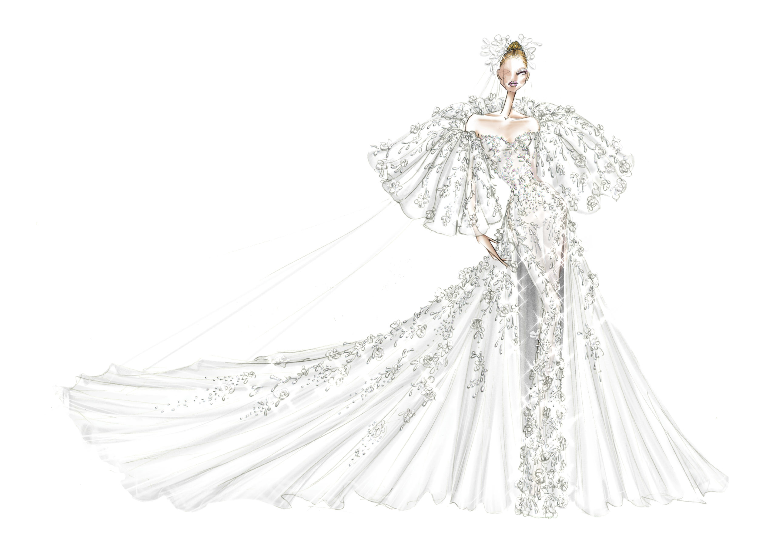 With the global coronavirus pandemic presenting unprecedented changes to the industry and the safety of all brand supporters at heart, Ralph & Russo, in partnership with the Fédération de la Haute Couture et de la Mode, bring their Autumn-Winter 2020/2021 couture collection to the global stage in the form of a unique digital experience. Illustrating the journey behind this season, the experience showcases the way in which this collection was brought to life, through a number of digitised looks on our custom brand avatar, several pieces made in our atelier, and the balance of the offering created in sketch form.