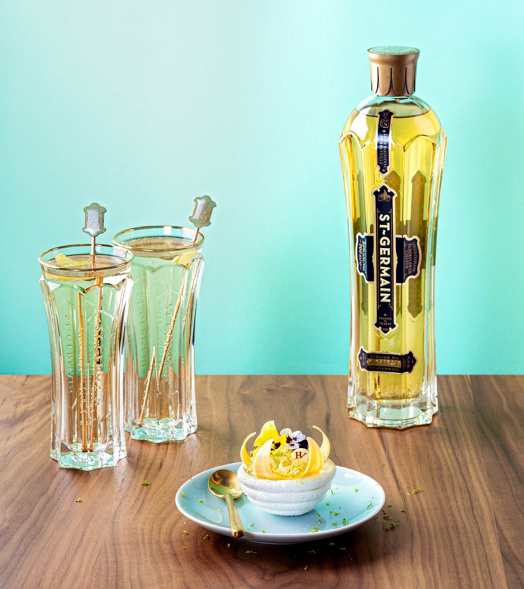 Symbole de l’art de vivre « à la française », la liqueur ST-GERMAIN® devenue un élément clé des cocktails les plus fins et parfumés, vient aujourd’hui marier sa délicatesse à la scène pâtissière. Acteur engagé dans la recherche de naturalité, le Chef Hugues Pouget de la Maison Hugo & Victor dévoile chaque année des créations plus originales à partir de produits frais. Fleur de la saison, c’est tout naturellement que le Chef s’est inspiré de la fleur de sureau qui compose la liqueur française ST-GERMAIN® pour proposer deux desserts aux étonnantes saveurs.