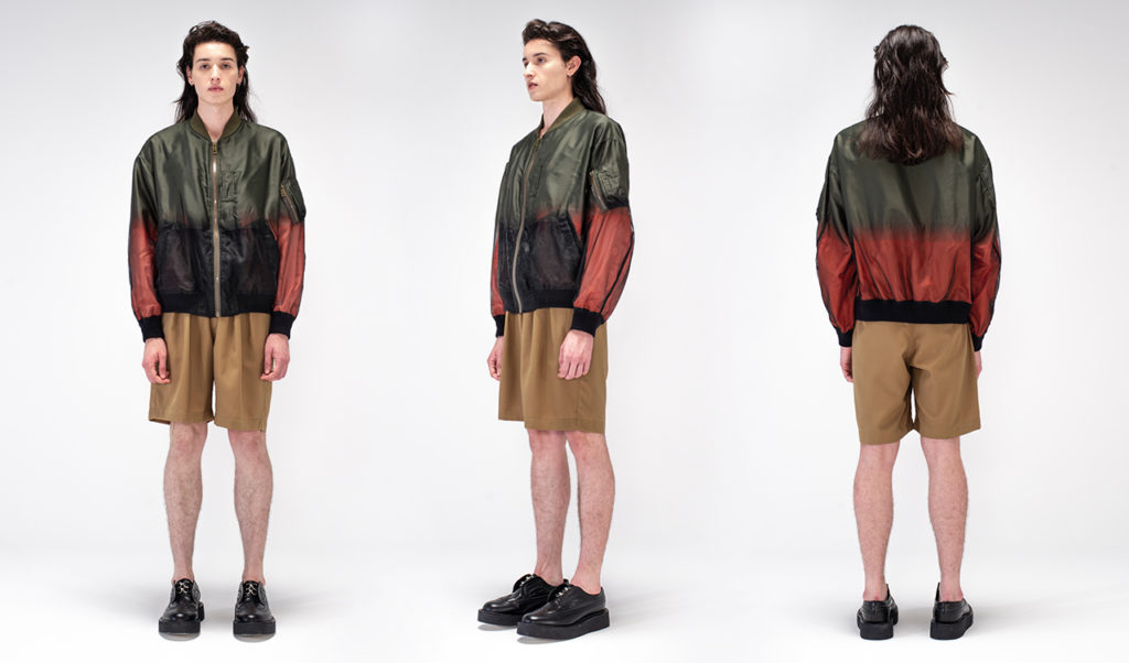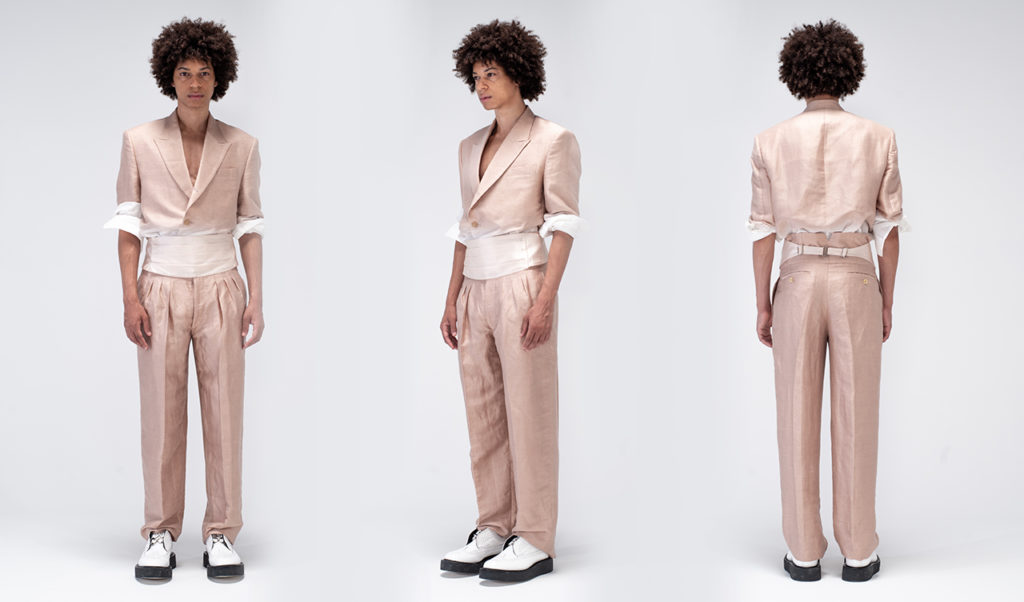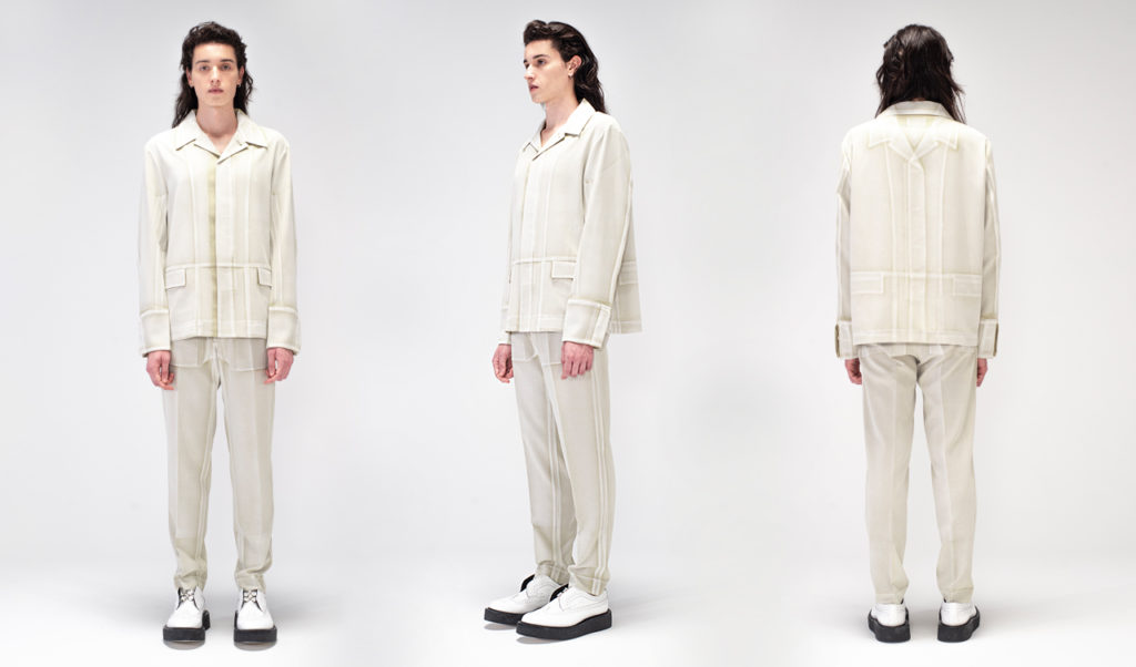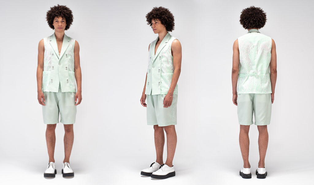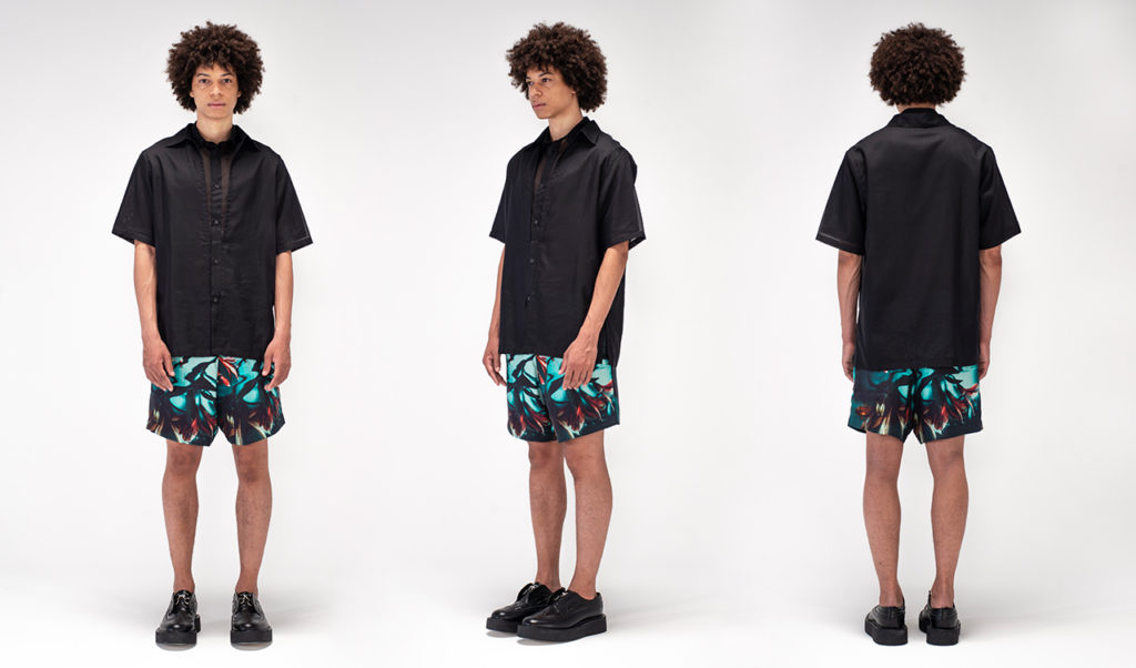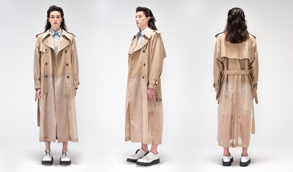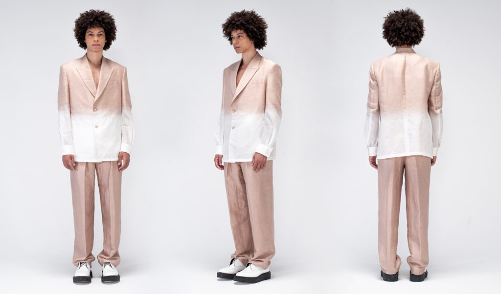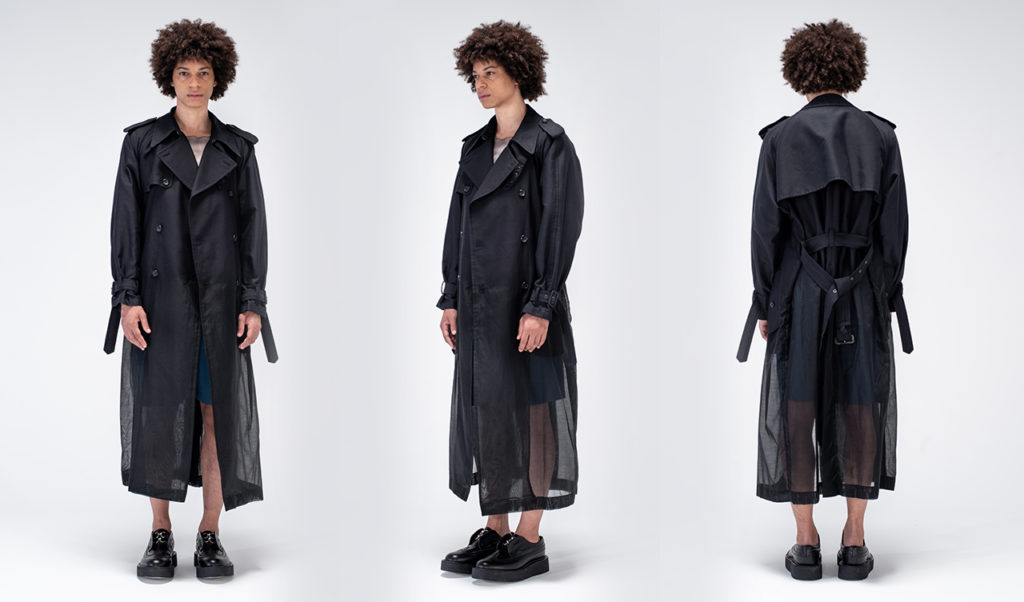 Les tissus clefs sont utilisés tout allons de la collection parmi laquelle nous découvrons des blazers en lin se transformant en chemises en coton, des vestes en nylon brillant qui progressivement se fondent en un organdi transparent. Cette dualité inattendu permet de créer une narrative jamais envisagée auparavant.