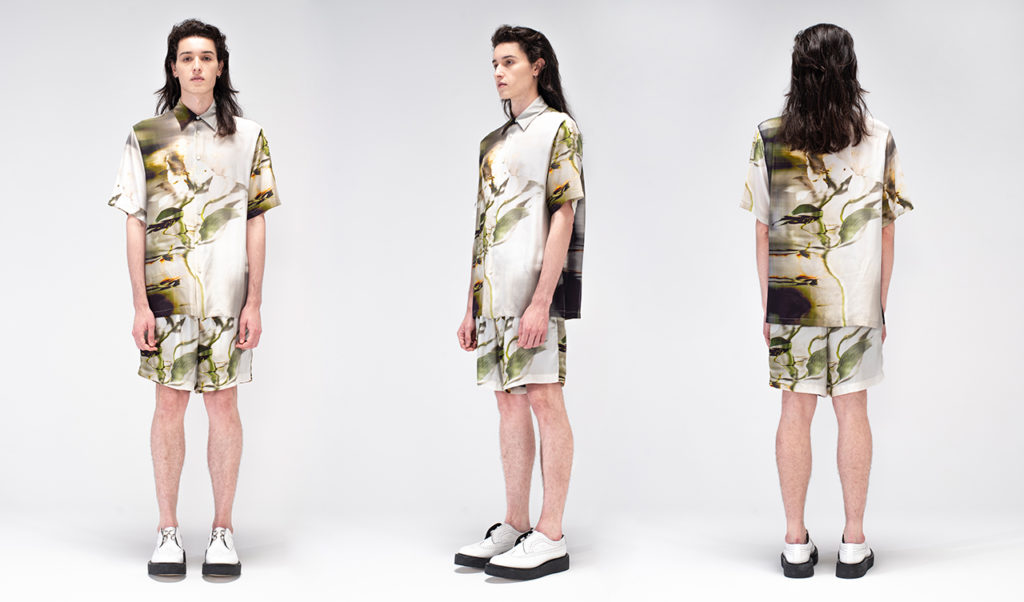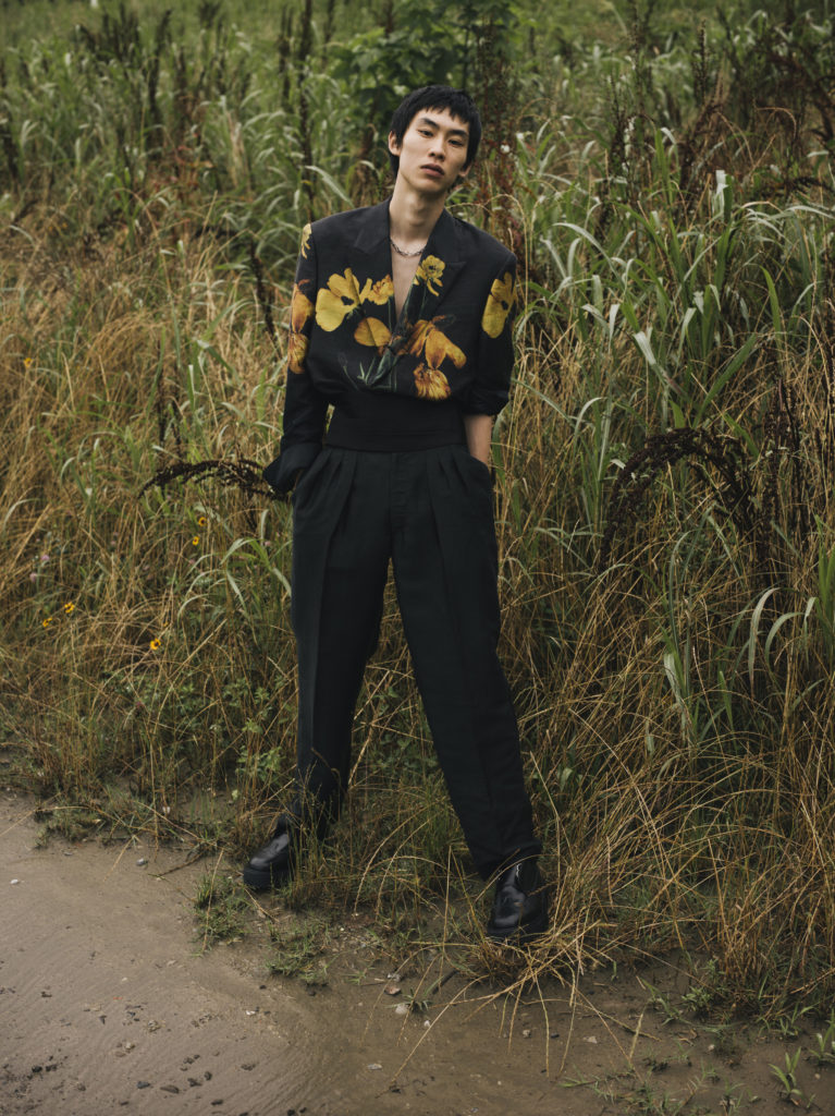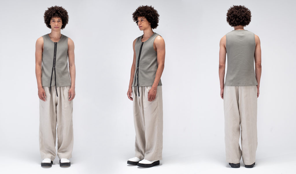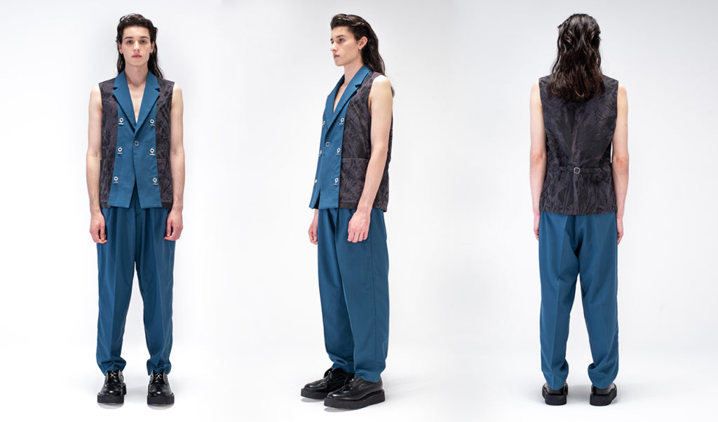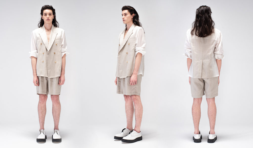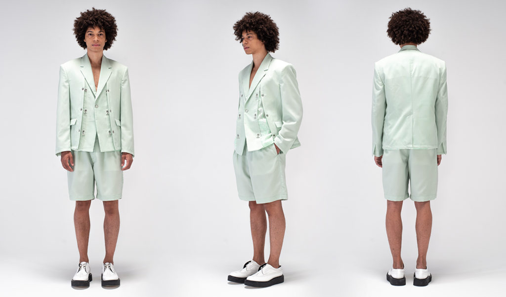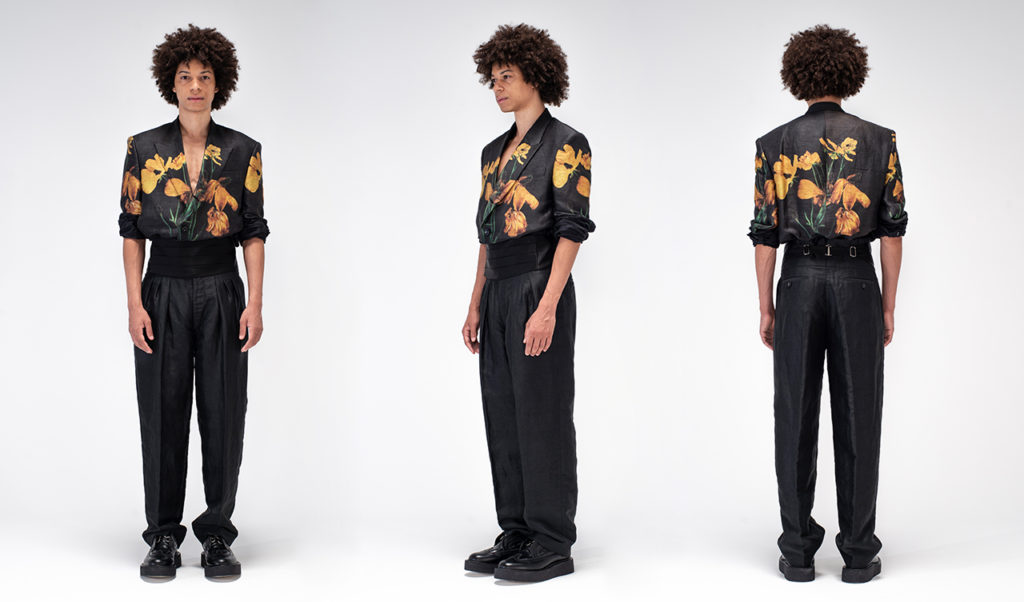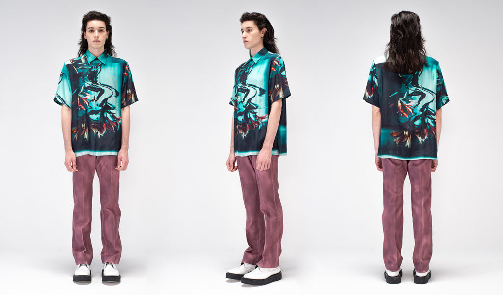 Les tissus clefs sont utilisés tout allons de la collection parmi laquelle nous découvrons des blazers en lin se transformant en chemises en coton, des vestes en nylon brillant qui progressivement se fondent en un organdi transparent. Cette dualité inattendu permet de créer une narrative jamais envisagée auparavant.