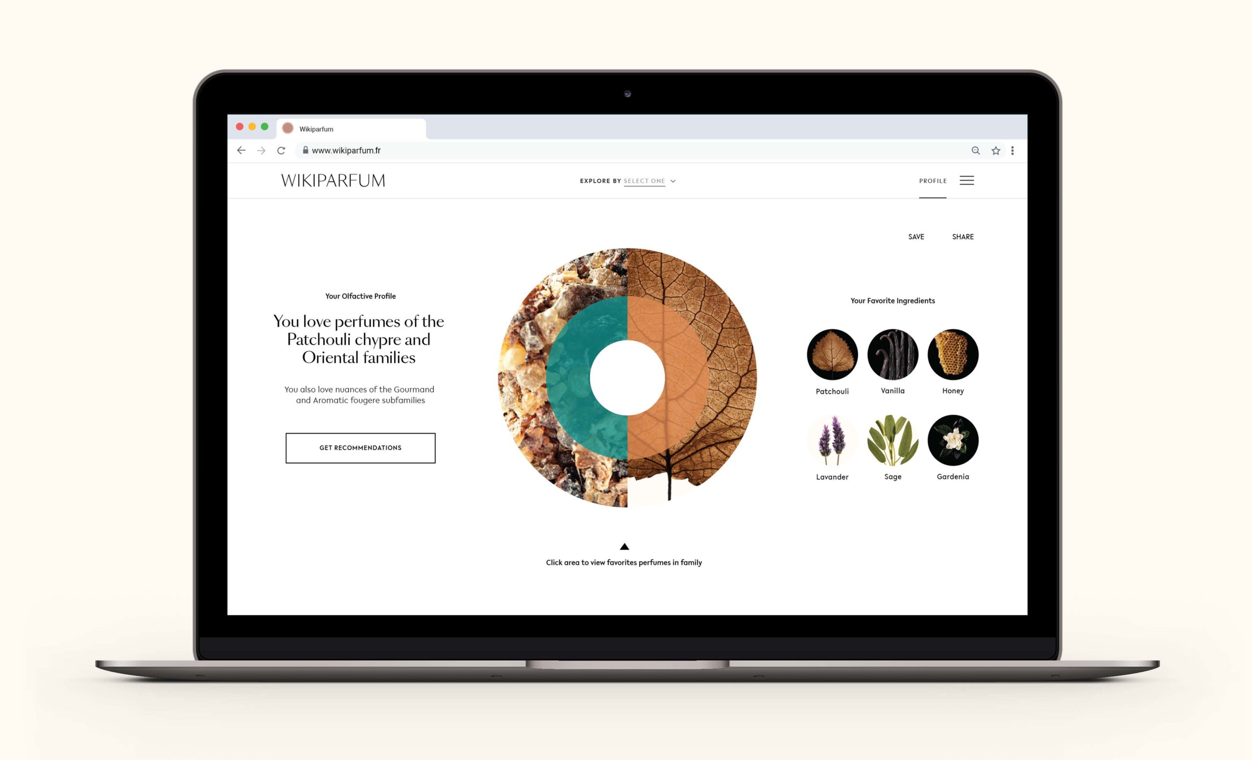 possibilité de rechercher parmi les multiples ingrédients utilisés en parfumerie (agrumes, fleurs, fruits, bois, plantes aromatiques, épices…) et de les combiner entre eux ou séparément. Une fois la recherche terminée, l’utilisateur pourra découvrir, à travers un résultat impartial et objectif, une liste de parfums disponibles sur le marché dont la composition correspond à ses préférences.