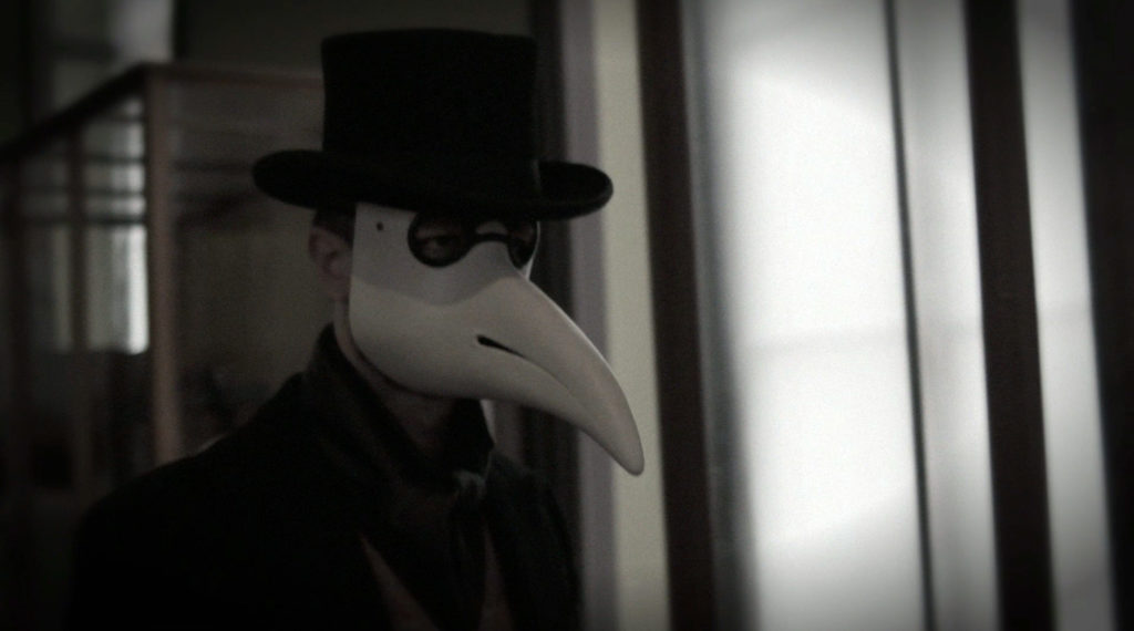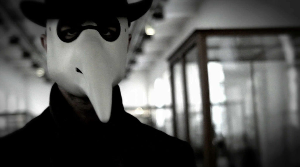 En effet, à l’époque de la peste noire, la ville de Venise payait les médecins pour soigner les malades riches et pauvres. Si ce masque au long bec peut faire penser à un oiseau, il n’est autre qu’un filtre garni d’herbes odorantes, d’épices, de citron, de feuilles de menthe, de camphre, de laudanum, de myrrhe et de pétales de roses. Un filtre capable de protéger de