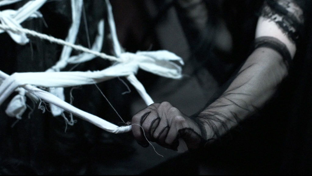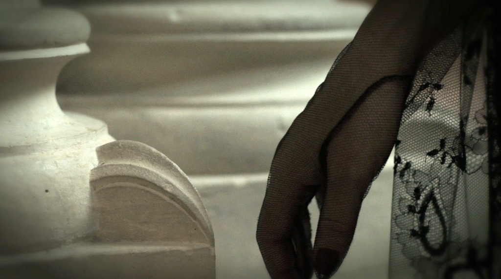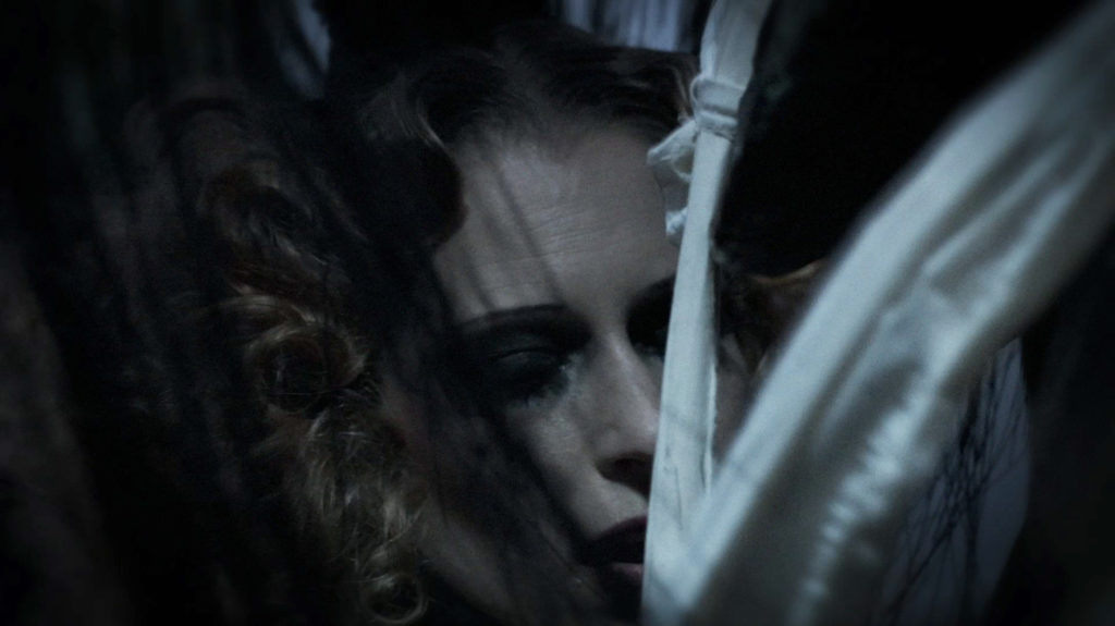 Les dentelles sont majoritaires mais aussi le velours froissé, le taffetas et tulle brodé ornementé de petits ex-voto mexicains, en argent (Ah Maria Felix, quand tu nous tiens !). Nous l’avons nommé « les sortilèges du noir ».