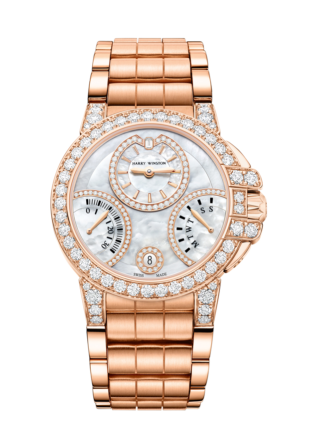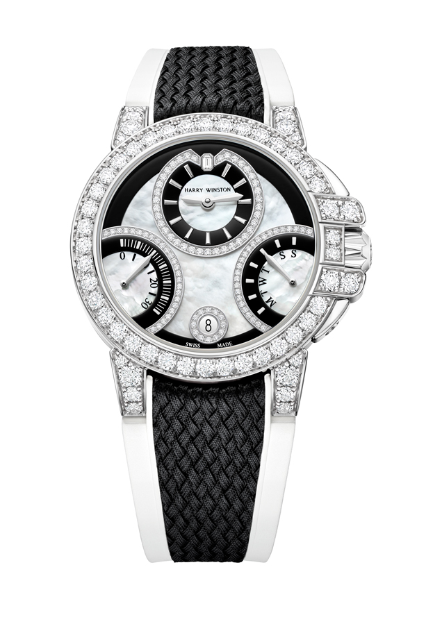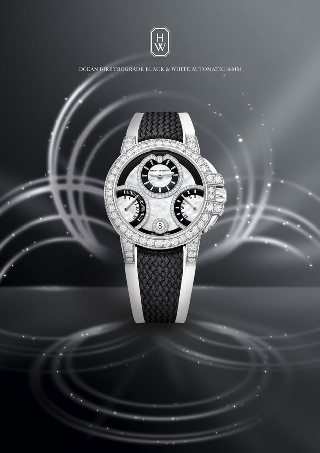 La collection Ocean d’Harry Winston est dédiée aux garde-temps sportifs. Conçus pour être portés au quotidien et étanches à 100 mètres, les modèles Ocean Biretrograde renferment une mécanique d’une fascinante complexité, avec deux complications rétrogrades et des heures et minutes excentrées. Pour la première fois, deux modèles avec un style affirmé en noir et blanc rejoignent la famille Ocean. Ce thème chromatique audacieux crée des contrastes prononcés et contribue à améliorer la lisibilité des compteurs. Alliant diamants, nacre blanche et laque tendue noire, les Ocean Biretrograde Black & White sont dotées d’une boîte en or blanc 18 carats, sertie de 199 diamants étincelants. A ces deux Ocean, deux autres modèles Biretrograde avec des cadrans en nacre blanche iridescente, rehaussés d’un soupçon de diamants blancs étincelants viennent rejoindre cette somptueuse collection. Disponibles en version avec boîte en or blanc ou or rose 18 carats, ces deux modèles sont des plus versatiles.
