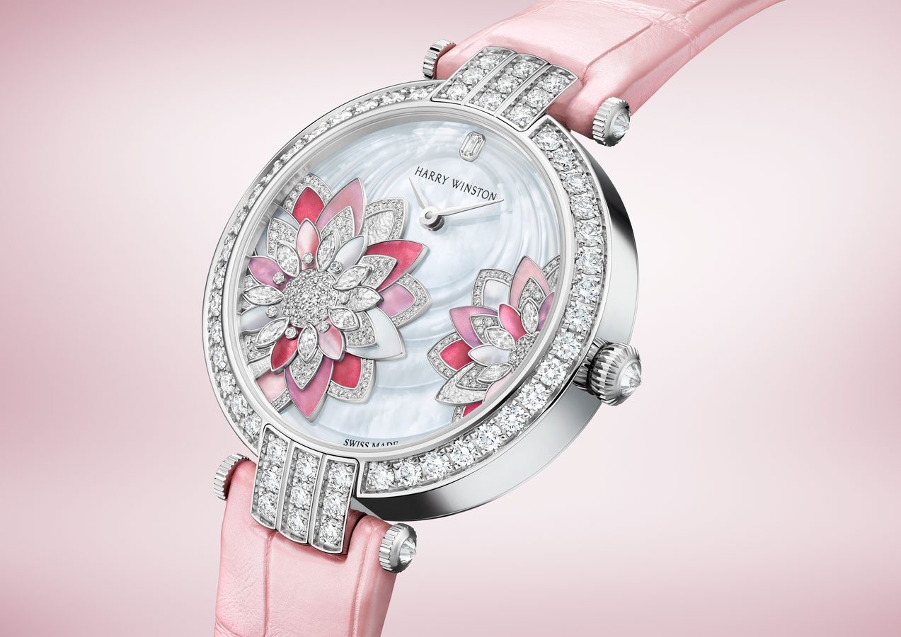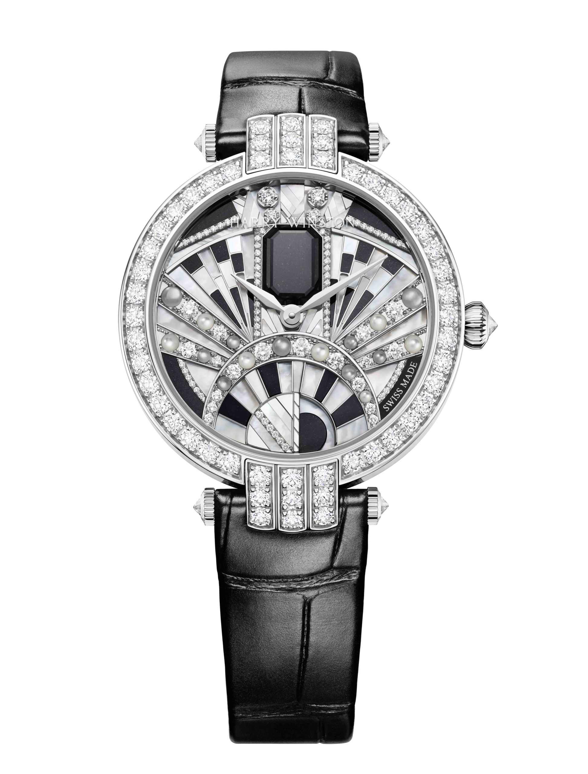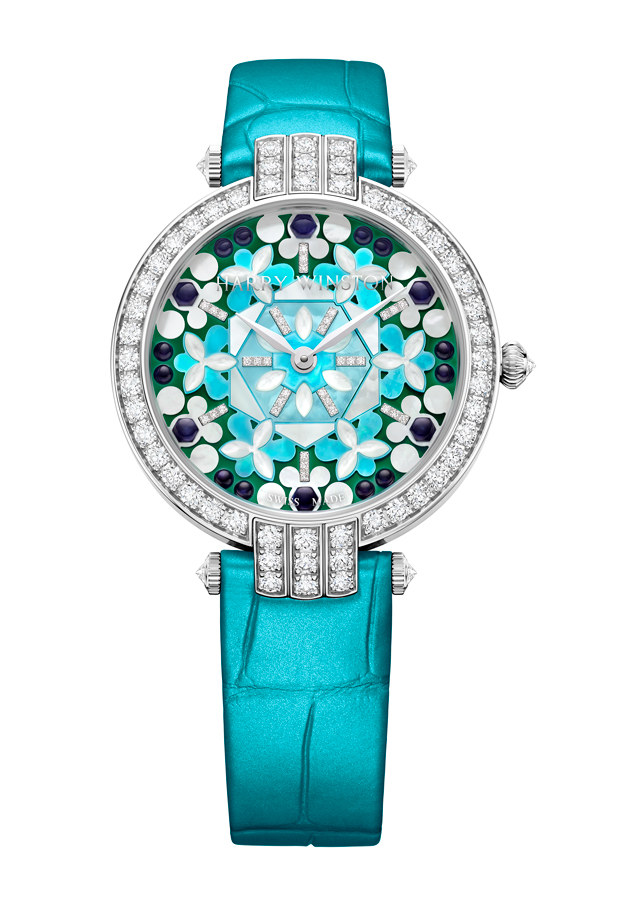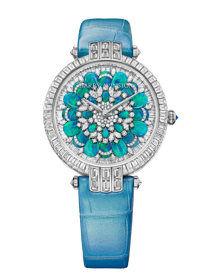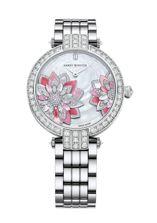 Lancée en 1989, la collection Premier est comme son nom l’indique, la première collection horlogère de la Maison Harry Winston. C’est année, c’est elle qui accueille le plus grand nombre de nouveautés avec des modèles parés de nacres et de pierres précieuses colorées, à l’exception d’un modèle au style épuré noir et blanc. La Premier Lotus est revisitée dans une version avec une boîte en or blanc plus grande et une palette de couleurs pastel des plus romantiques. Inspirées de la technique révolutionnaire de sertissage inventée par M. Winston, les fleurs de lotus aux pétales en nacre rose et blanche semblent flotter à la surface ondulée et irisée de l’eau. Le cadran du modèle Premier Hypnotic Chrysanthemum joue quant à lui sur les différentes tailles de diamants et sur le charme envoûtant des opales. Ces pierres bleues et vertes aux reflets changeants sont mises en valeur par de flamboyants diamants blancs. Suite au succès rencontré par les premiers modèles Kaleidoscope en 2019, ce thème fait son grand retour avec six modèles Premier qui mêlent de façon unique les pierres précieuses et semi-précieuses. À l’inverse, la Premier Majestic Art Deco rend hommage à l’esthétique glamour du noir et blanc ainsi qu’aux designs géométriques caractéristiques de cette période. Avec son cadran réalisé en marqueterie, c’est un décor jazzy qui prend vie au travers d’une brillante jade noire entremêlée à de la nacre précieuse. L’ensemble des nouveautés 2020 de la collection Premier est doté d’une somptueuse boîte en or 18 carats de 36 mm de diamètre. La boîte Premier et ses arches serties évoquent la façade de l’emblématique Salon Harry Winston sur la 5e Avenue alors que les pierres précieuses ornant les différents cadrans célèbrent la légitimité de M. Winston, reconnu comme « Roi des Diamants ».