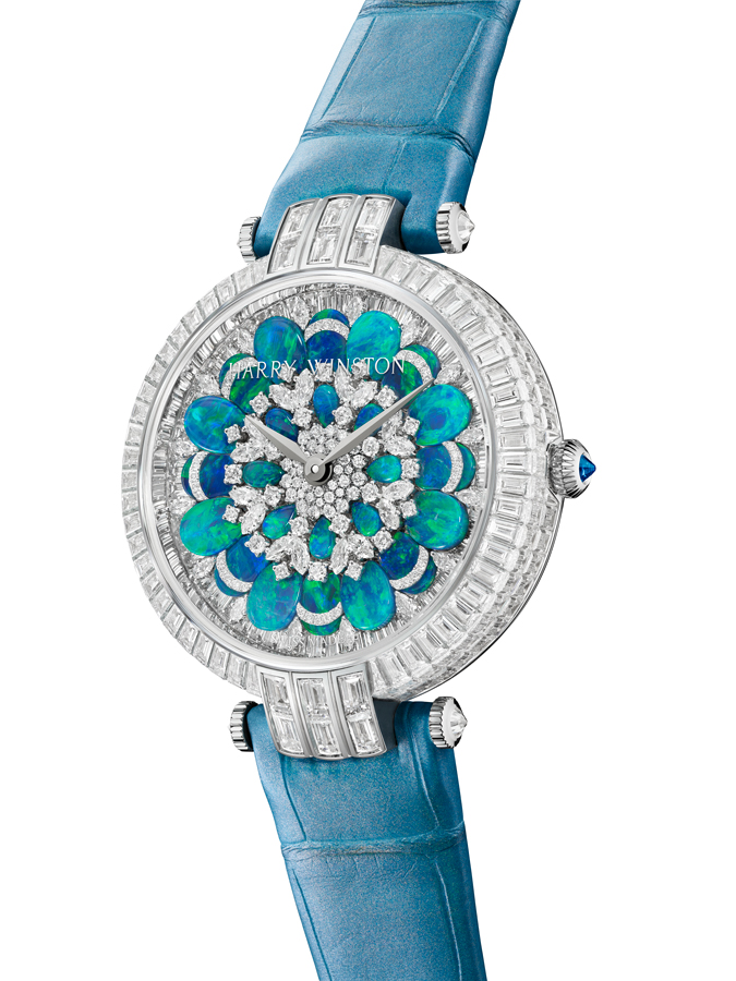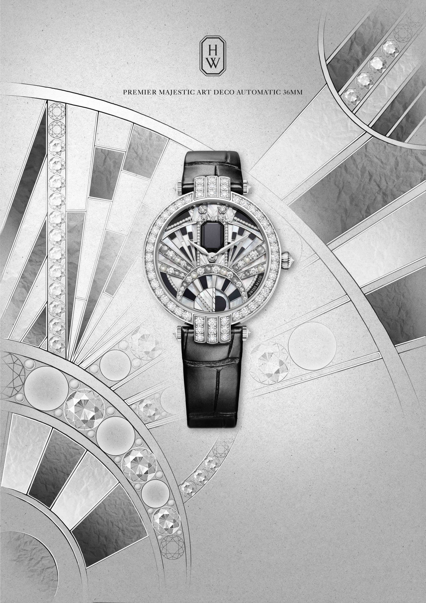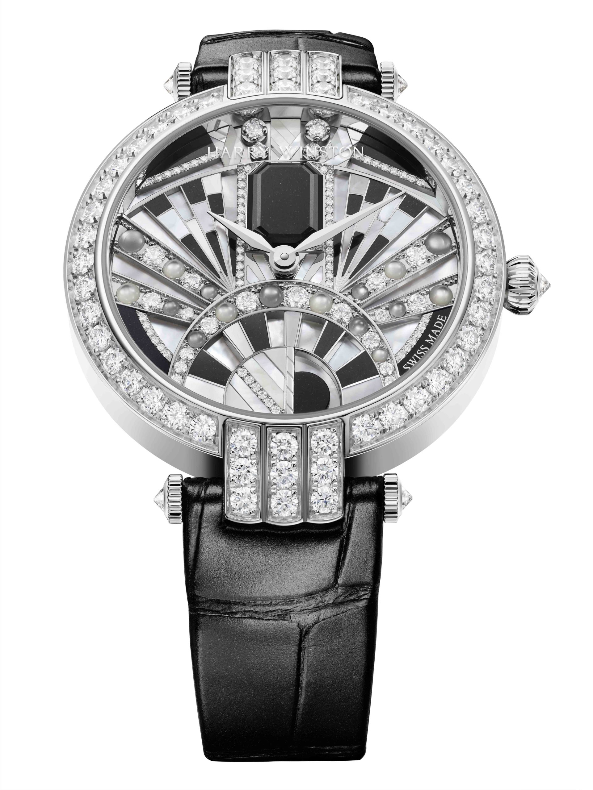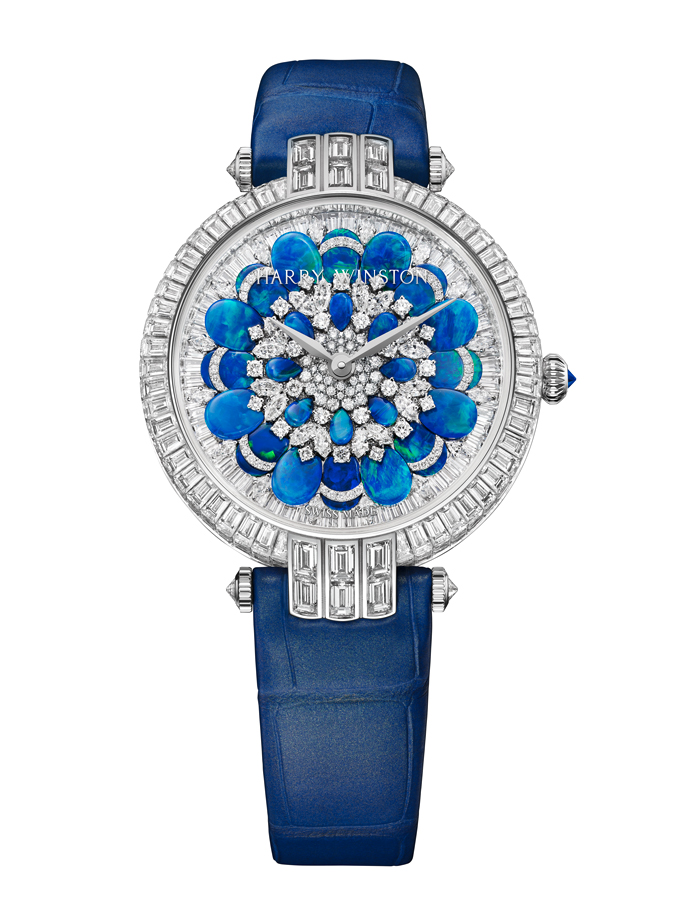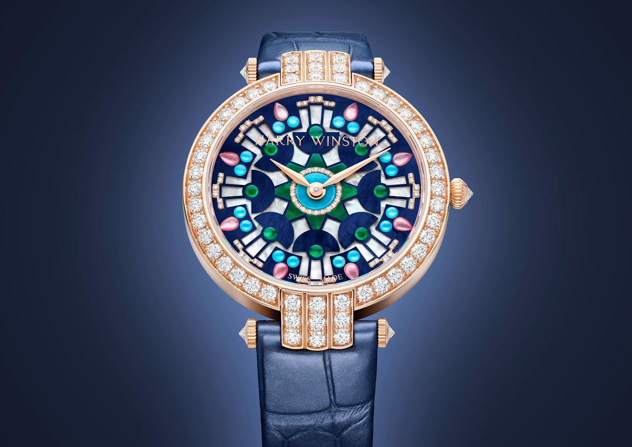 Lancée en 1989, la collection Premier est comme son nom l’indique, la première collection horlogère de la Maison Harry Winston. C’est année, c’est elle qui accueille le plus grand nombre de nouveautés avec des modèles parés de nacres et de pierres précieuses colorées, à l’exception d’un modèle au style épuré noir et blanc. La Premier Lotus est revisitée dans une version avec une boîte en or blanc plus grande et une palette de couleurs pastel des plus romantiques. Inspirées de la technique révolutionnaire de sertissage inventée par M. Winston, les fleurs de lotus aux pétales en nacre rose et blanche semblent flotter à la surface ondulée et irisée de l’eau. Le cadran du modèle Premier Hypnotic Chrysanthemum joue quant à lui sur les différentes tailles de diamants et sur le charme envoûtant des opales. Ces pierres bleues et vertes aux reflets changeants sont mises en valeur par de flamboyants diamants blancs. Suite au succès rencontré par les premiers modèles Kaleidoscope en 2019, ce thème fait son grand retour avec six modèles Premier qui mêlent de façon unique les pierres précieuses et semi-précieuses. À l’inverse, la Premier Majestic Art Deco rend hommage à l’esthétique glamour du noir et blanc ainsi qu’aux designs géométriques caractéristiques de cette période. Avec son cadran réalisé en marqueterie, c’est un décor jazzy qui prend vie au travers d’une brillante jade noire entremêlée à de la nacre précieuse. L’ensemble des nouveautés 2020 de la collection Premier est doté d’une somptueuse boîte en or 18 carats de 36 mm de diamètre. La boîte Premier et ses arches serties évoquent la façade de l’emblématique Salon Harry Winston sur la 5e Avenue alors que les pierres précieuses ornant les différents cadrans célèbrent la légitimité de M. Winston, reconnu comme « Roi des Diamants ».