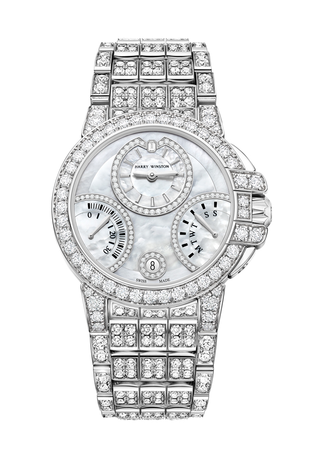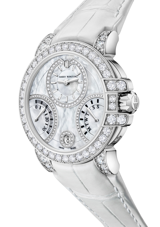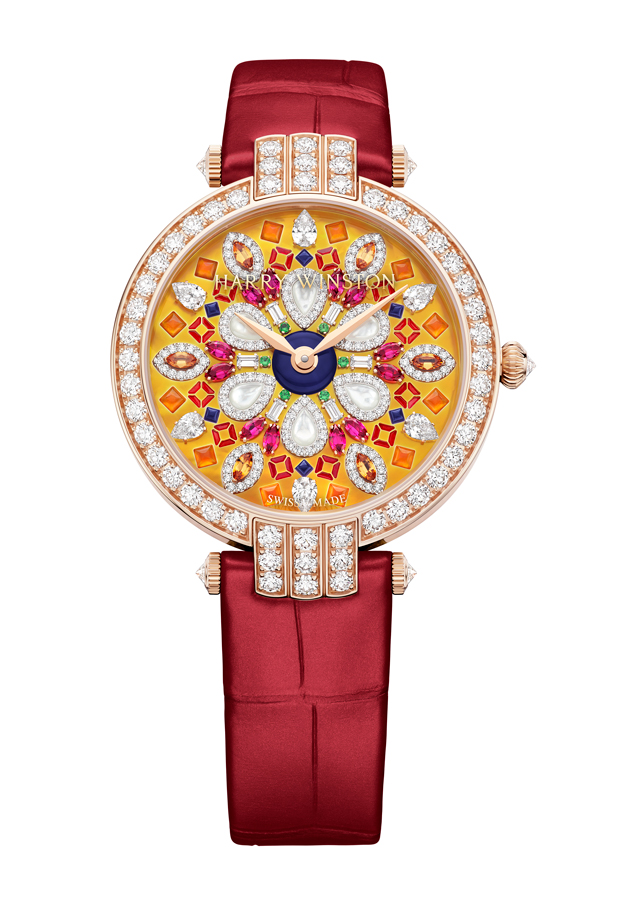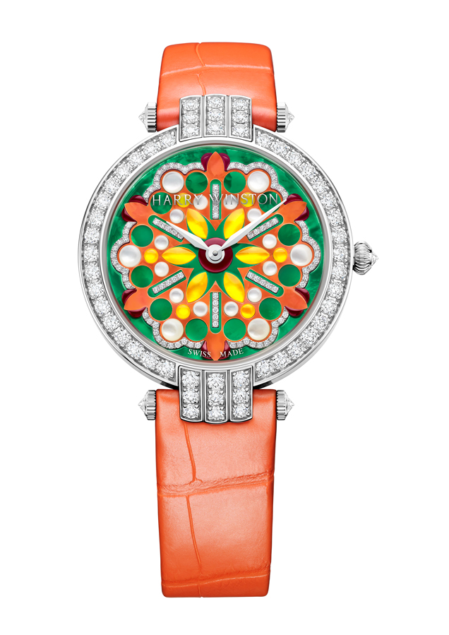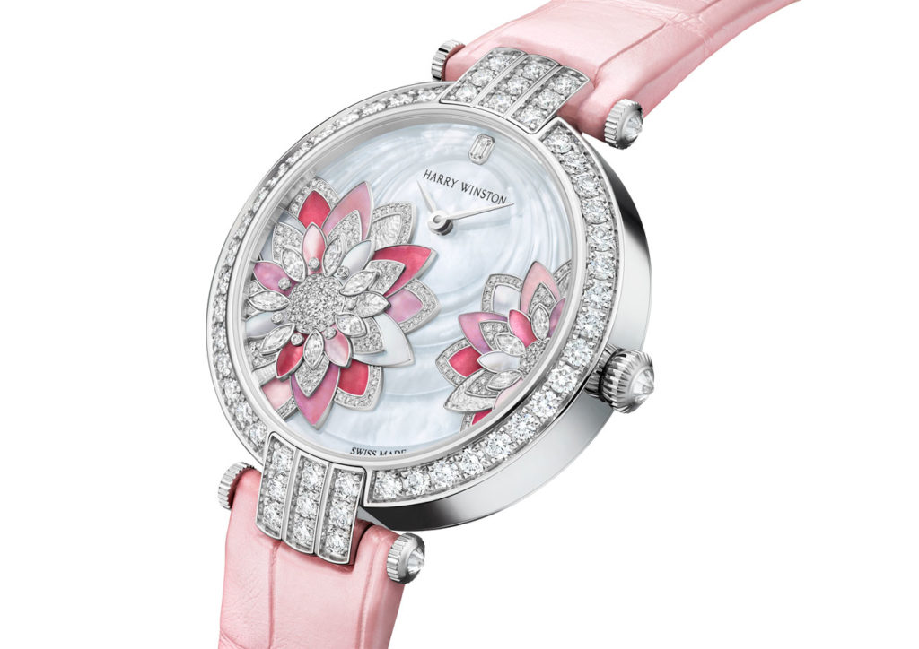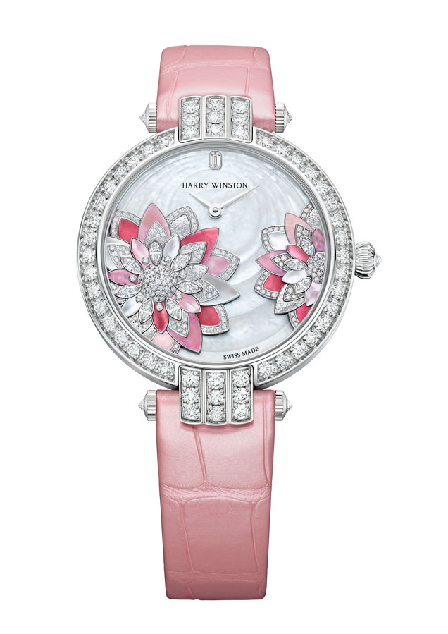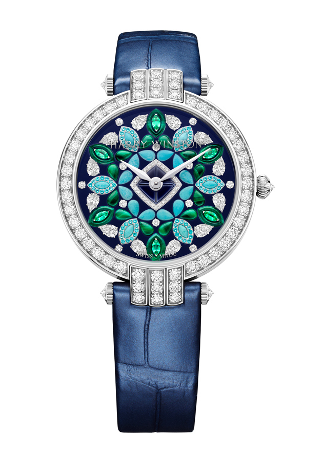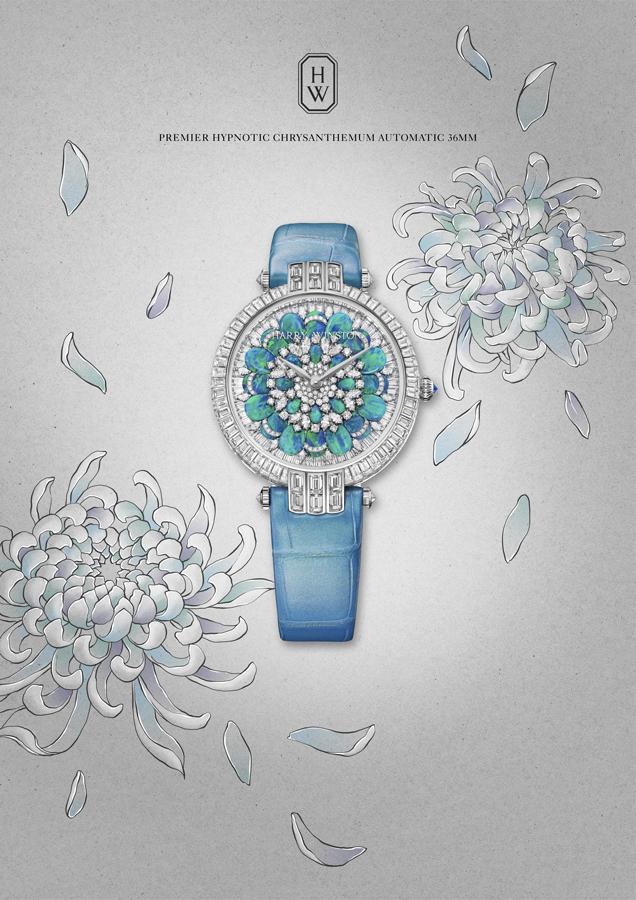 Lancée en 1989, la collection Premier est comme son nom l’indique, la première collection horlogère de la Maison Harry Winston. C’est année, c’est elle qui accueille le plus grand nombre de nouveautés avec des modèles parés de nacres et de pierres précieuses colorées, à l’exception d’un modèle au style épuré noir et blanc. La Premier Lotus est revisitée dans une version avec une boîte en or blanc plus grande et une palette de couleurs pastel des plus romantiques. Inspirées de la technique révolutionnaire de sertissage inventée par M. Winston, les fleurs de lotus aux pétales en nacre rose et blanche semblent flotter à la surface ondulée et irisée de l’eau. Le cadran du modèle Premier Hypnotic Chrysanthemum joue quant à lui sur les différentes tailles de diamants et sur le charme envoûtant des opales. Ces pierres bleues et vertes aux reflets changeants sont mises en valeur par de flamboyants diamants blancs. Suite au succès rencontré par les premiers modèles Kaleidoscope en 2019, ce thème fait son grand retour avec six modèles Premier qui mêlent de façon unique les pierres précieuses et semi-précieuses. À l’inverse, la Premier Majestic Art Deco rend hommage à l’esthétique glamour du noir et blanc ainsi qu’aux designs géométriques caractéristiques de cette période. Avec son cadran réalisé en marqueterie, c’est un décor jazzy qui prend vie au travers d’une brillante jade noire entremêlée à de la nacre précieuse. L’ensemble des nouveautés 2020 de la collection Premier est doté d’une somptueuse boîte en or 18 carats de 36 mm de diamètre. La boîte Premier et ses arches serties évoquent la façade de l’emblématique Salon Harry Winston sur la 5e Avenue alors que les pierres précieuses ornant les différents cadrans célèbrent la légitimité de M. Winston, reconnu comme « Roi des Diamants ».