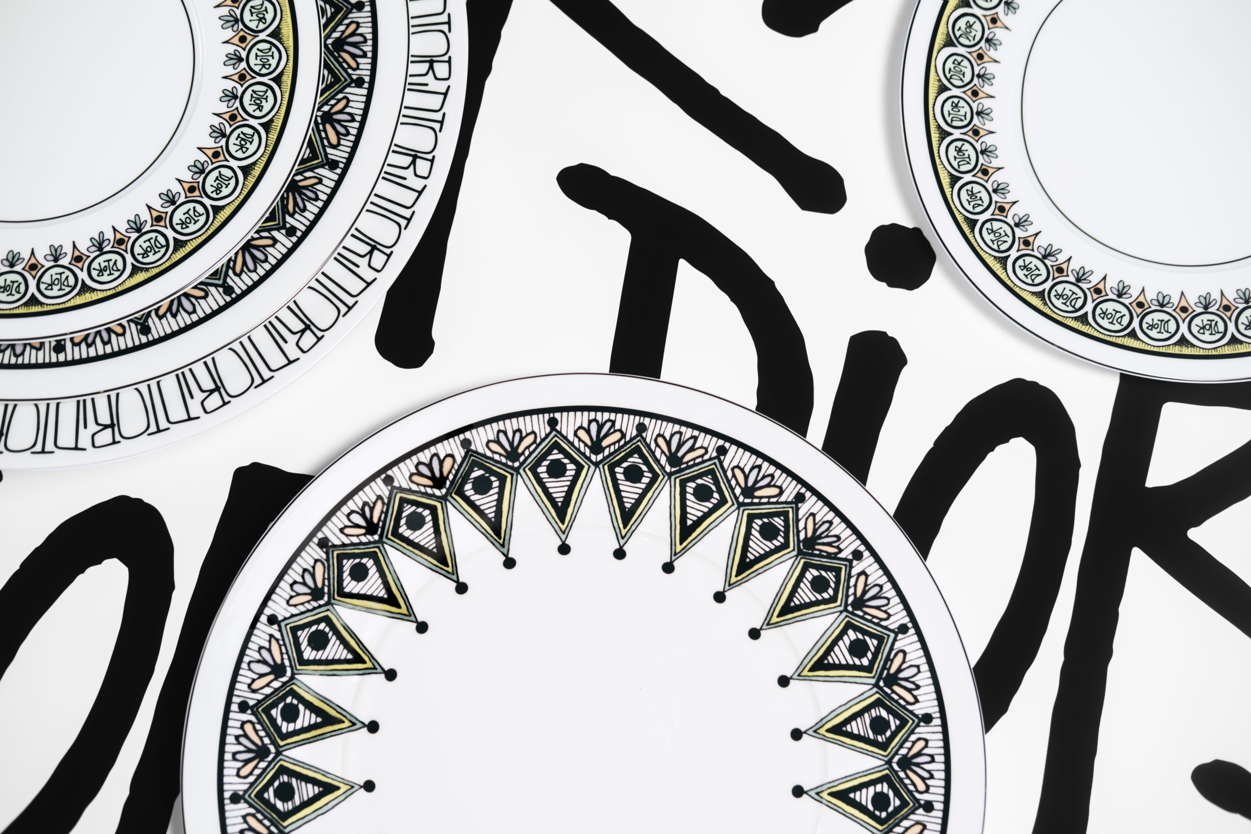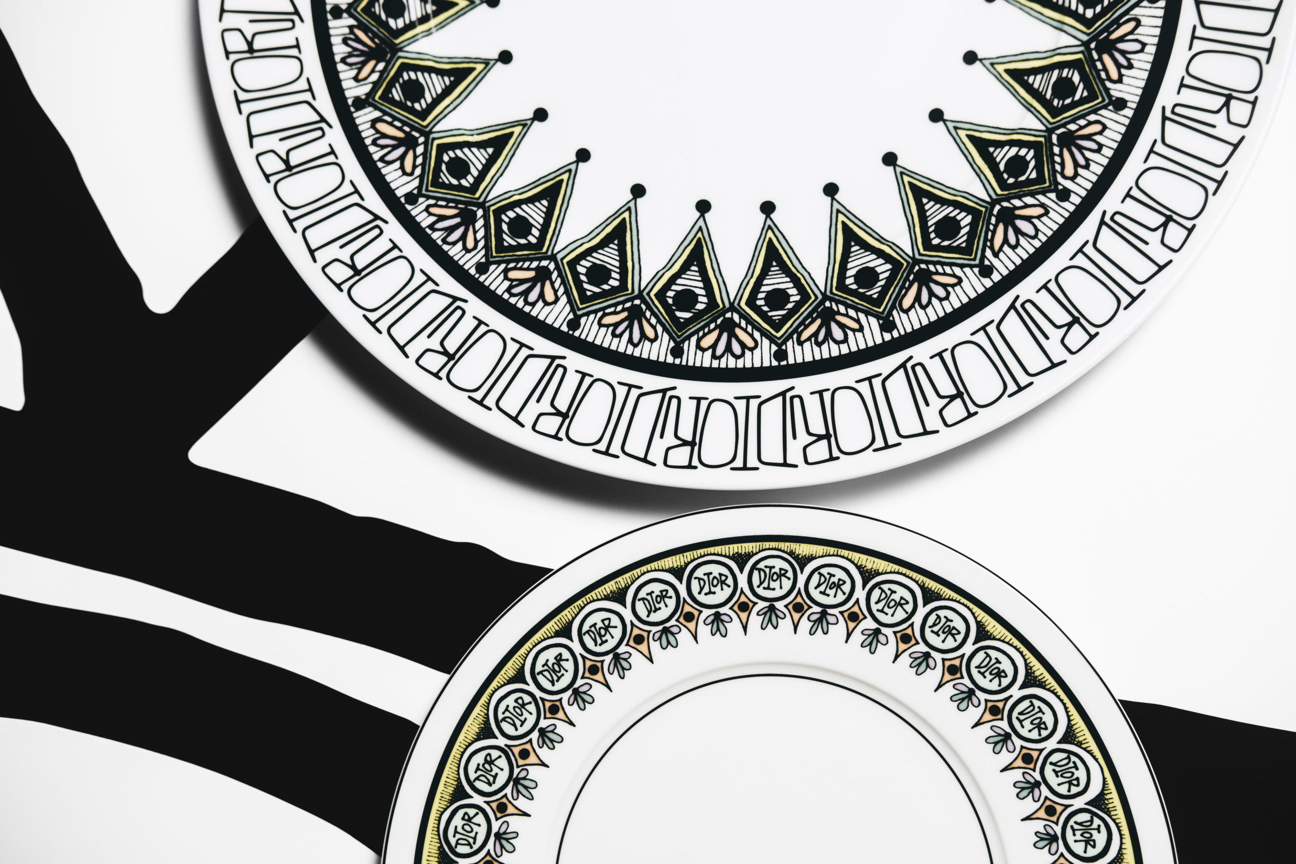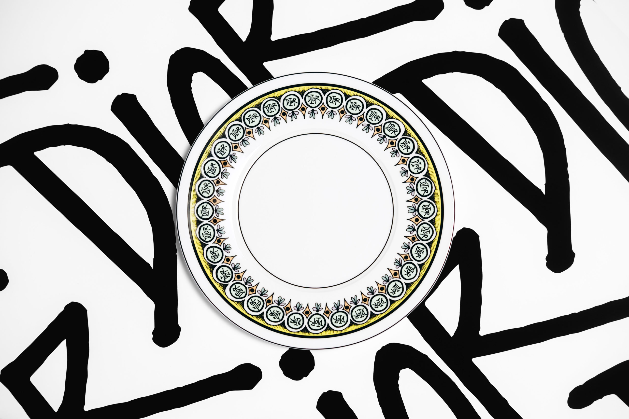 Echo à la collection masculine Automne 2020 de Kim Jones, Cordelia de Castellane a imaginé une ligne dédiée aux arts de la table constellée des motifs réalisés par le designer Shawn Stussy*. Cette personnalité incontournable et multifacette, à la croisée des contre-cultures et de l’univers créatif du surf, a réinventé le logo Dior à la manière d’un graffiti et a dessiné des imprimés graphiques qui se transposent aujourd’hui sur une série d’assiettes et de mugs. Un hommage aux dialogues artistiques, chers à Christian Dior.