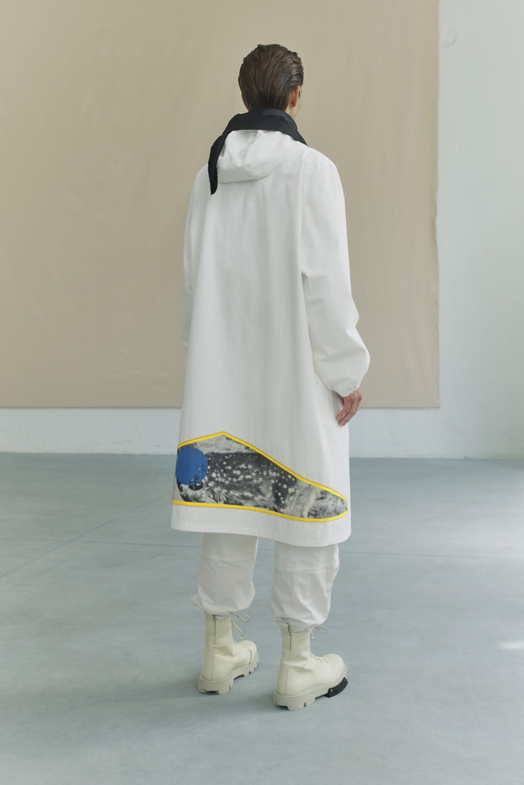 Initially the feeling of the collection was one of strength: military inspired shapes and pure, angular tailoring in robust fabrics. Japanese wool gabardine cover and crisp, raw cotton canvas a orded strong, geometric forms. Sleeveless topcoats paired with slim tailored trousers and shorts, parkas layered over billowed trousers tucked into boots. The feeling of real and honest materials was important. Pure cotton and wool, silk, viscose; all in unblended forms. The idea of strength and protection, as the spring progressed, seemed an apt direction.