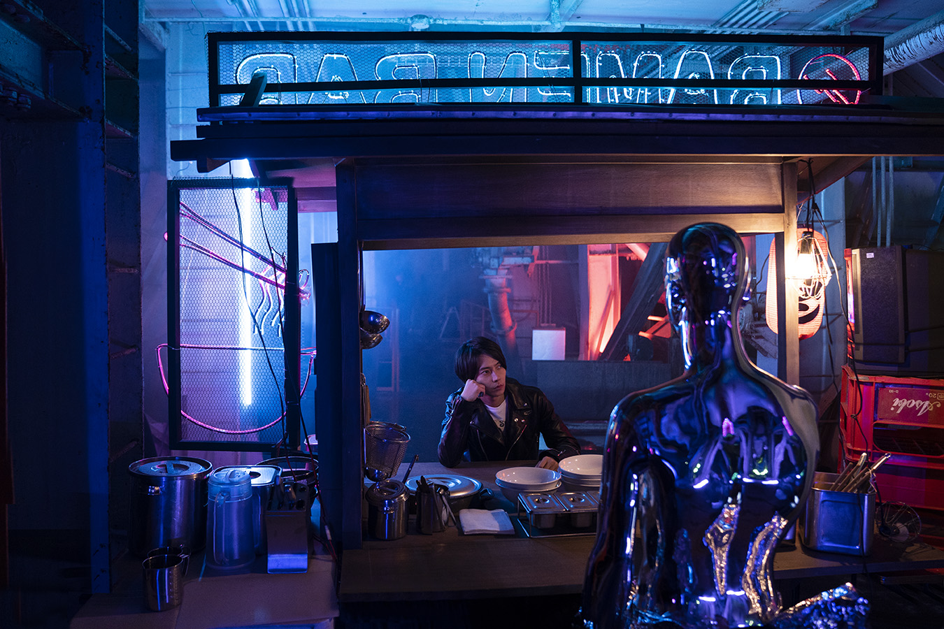 Hiroshi Fujiwara a imaginé de nouvelles versions de leur emblématique blouson de moto, dont une en nylon laqué. Les bombers sont brodés de la couverture de l’album Spirit of the Boogie de Kool & the Gang, tandis que les pulls affichent les coordonnées GPS du restaurant parisien préféré de Hiroshi Fujiwara.